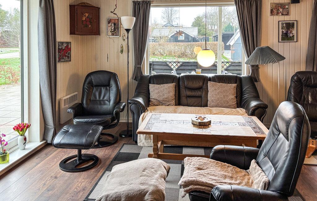 Velkommen til en skøn del af Danmark! Her ligger dette hus med nem adgang til områdets seværdigheder og smukke natur. Sæt jer til rette i den indbydende stue med komfortable lænestole og sofa og nyd afslappende timer foran brændeovnen. Tilbring aftenerne sammen omkring det store spisebord, hvor I kan dække op til feriens måltider og senere samles til brætspil. I det praktiske køkken er der godt med plads, så her kan alle være med til at kreere en dejlig middag. Efter en aktiv dag kan I læne jer tilbage i stuen med en god bog og en kop kaffe.