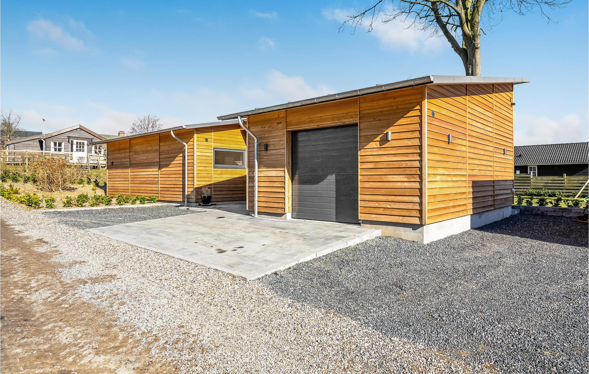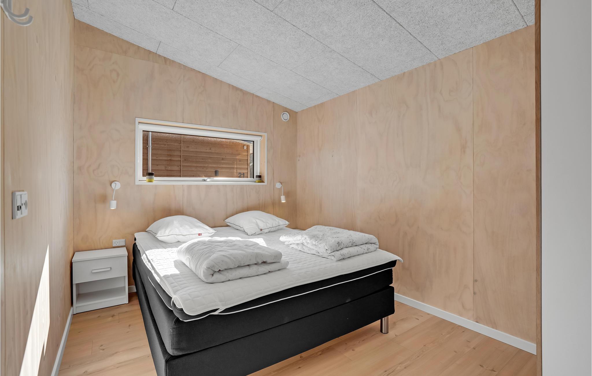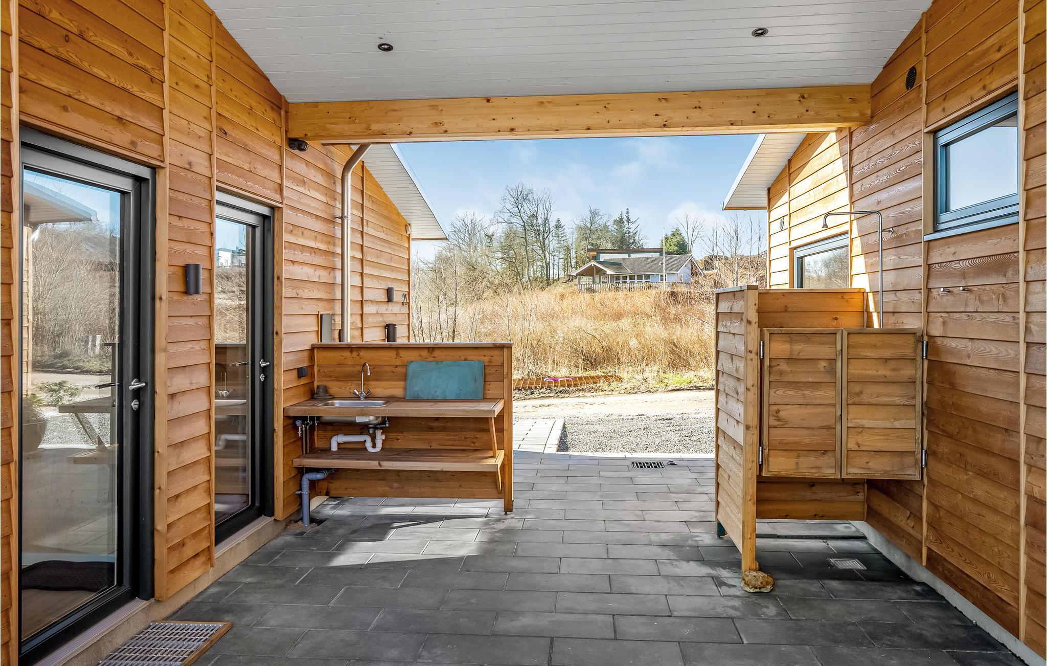 Træd ind i et moderne og elegant feriehus, som er gennemført indrettet med lækre detaljer og stilfuldt design. Loftshøjden og de store vinduesflader giver boligen en rummelig og behagelig fornemmelse, så her kommer I helt automatisk til at føle jer godt tilpas. Uanset om I kommer for at slappe af eller være aktive, får I mulighed for det, for der er både udendørsspil, liggestole, bålplads og en udendørsbruser til at skylle strandsandet af. Glæd jer til hyggelige aftener på den store terrasse, hvor der er havemøbler og grill.