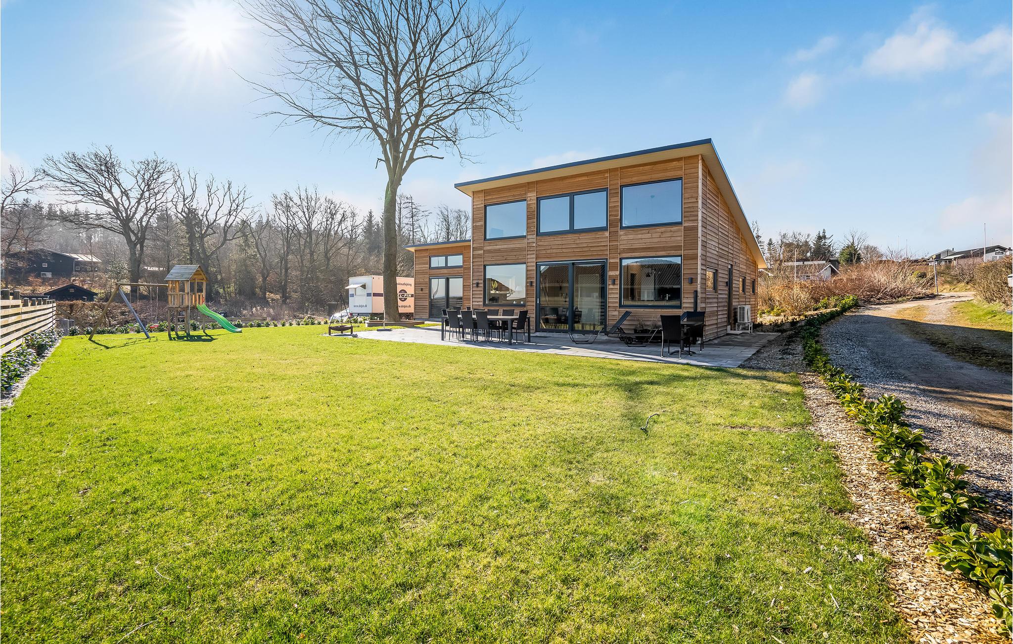 Luksuriøst feriehus ved Lillebælt med stor terrasse, havudsigt og mange aktivitetsmuligheder.