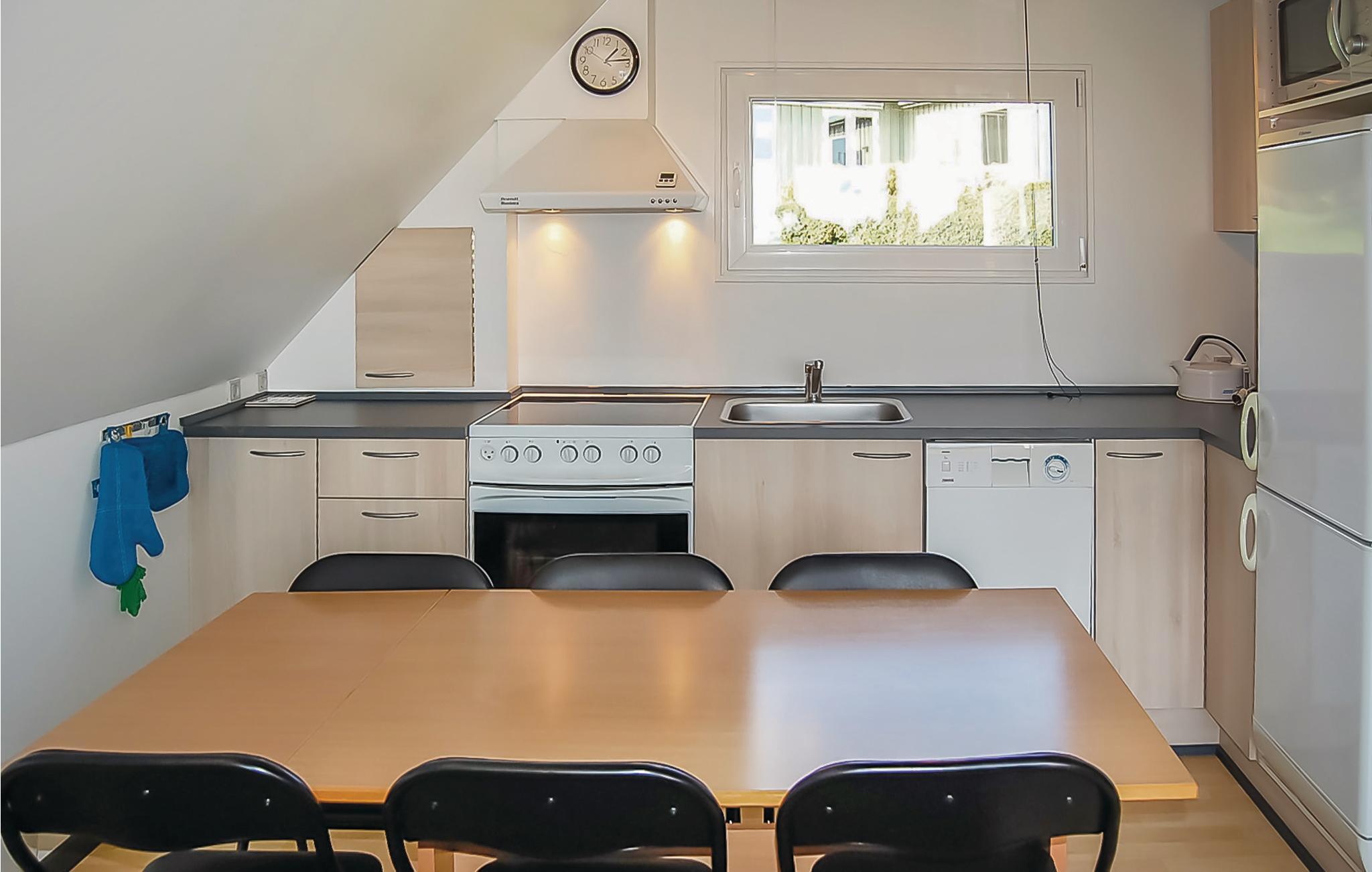 Hyggeligt træhus i roligt område nær børnevenlig strand og med stor terrasse til solrige dage.