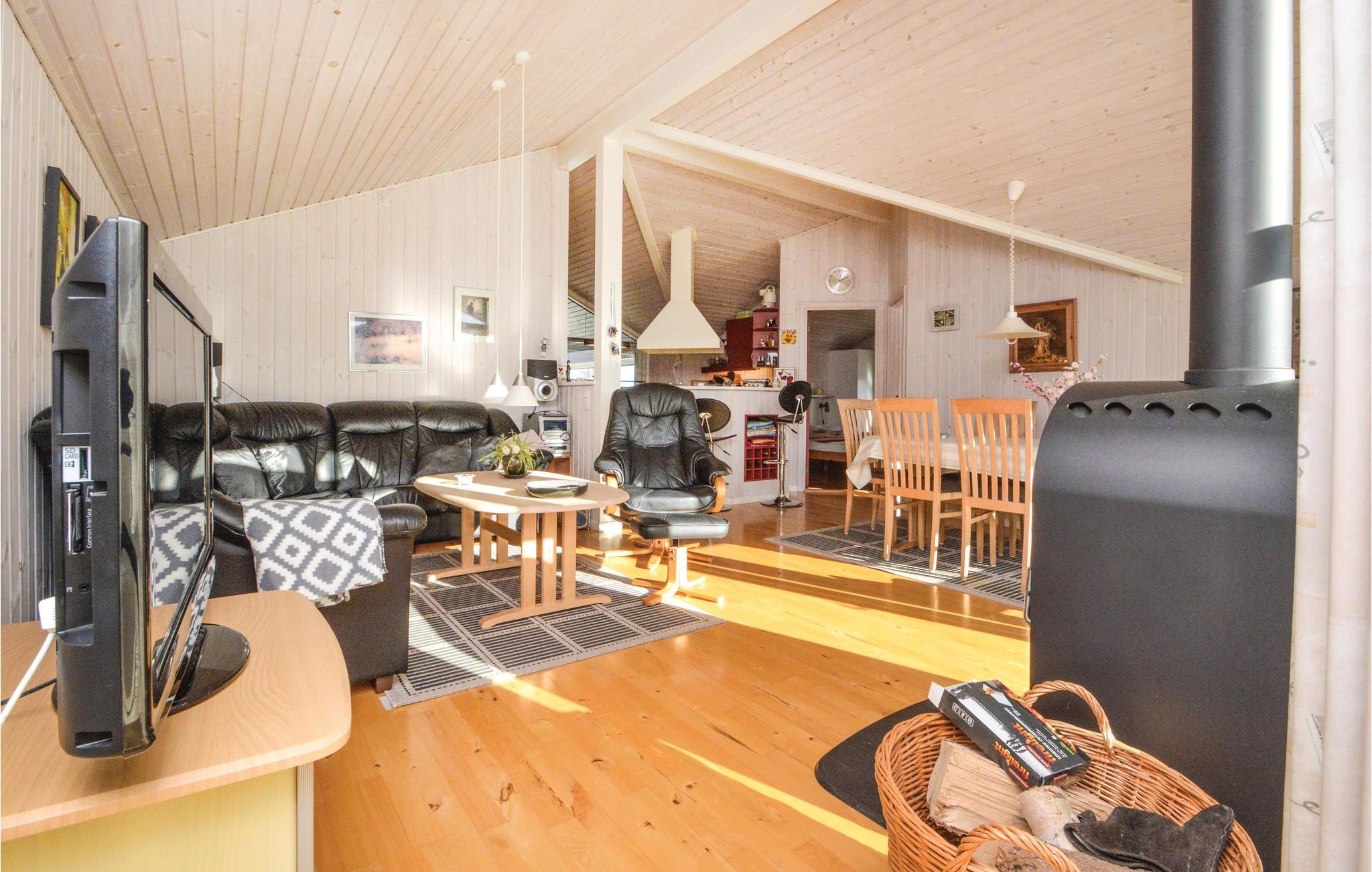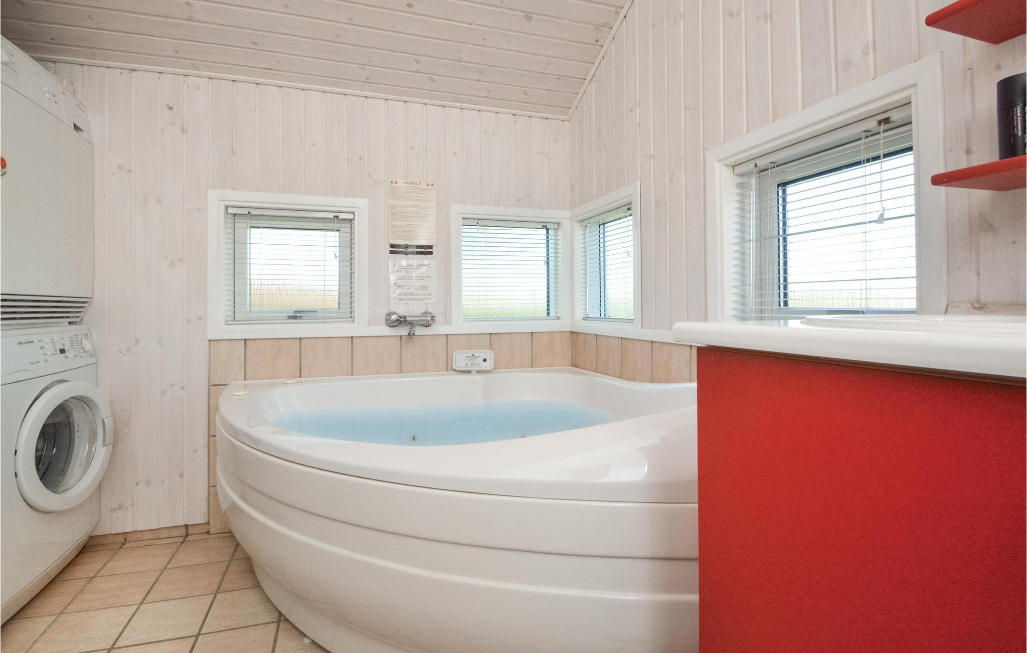 Dejligt lyst sommerhus beliggende på en stor ugenert grund. Rundt om huset er der en skøn, stor terrasse, hvor I altid kan finde en plads i solen. Huset indeholder en god stor og lys stue i åben forbindelse med køkkenet, herfra er der direkte adgang ud til terrassen. Huset er indrettet uden spilplads med tre soveværelser - to med dobbeltsenge og et med to enkeltsenge. I badeværelset finder I spabadet, hvor der også er adgang til husets sauna, så der er masser af wellness tilbud.
