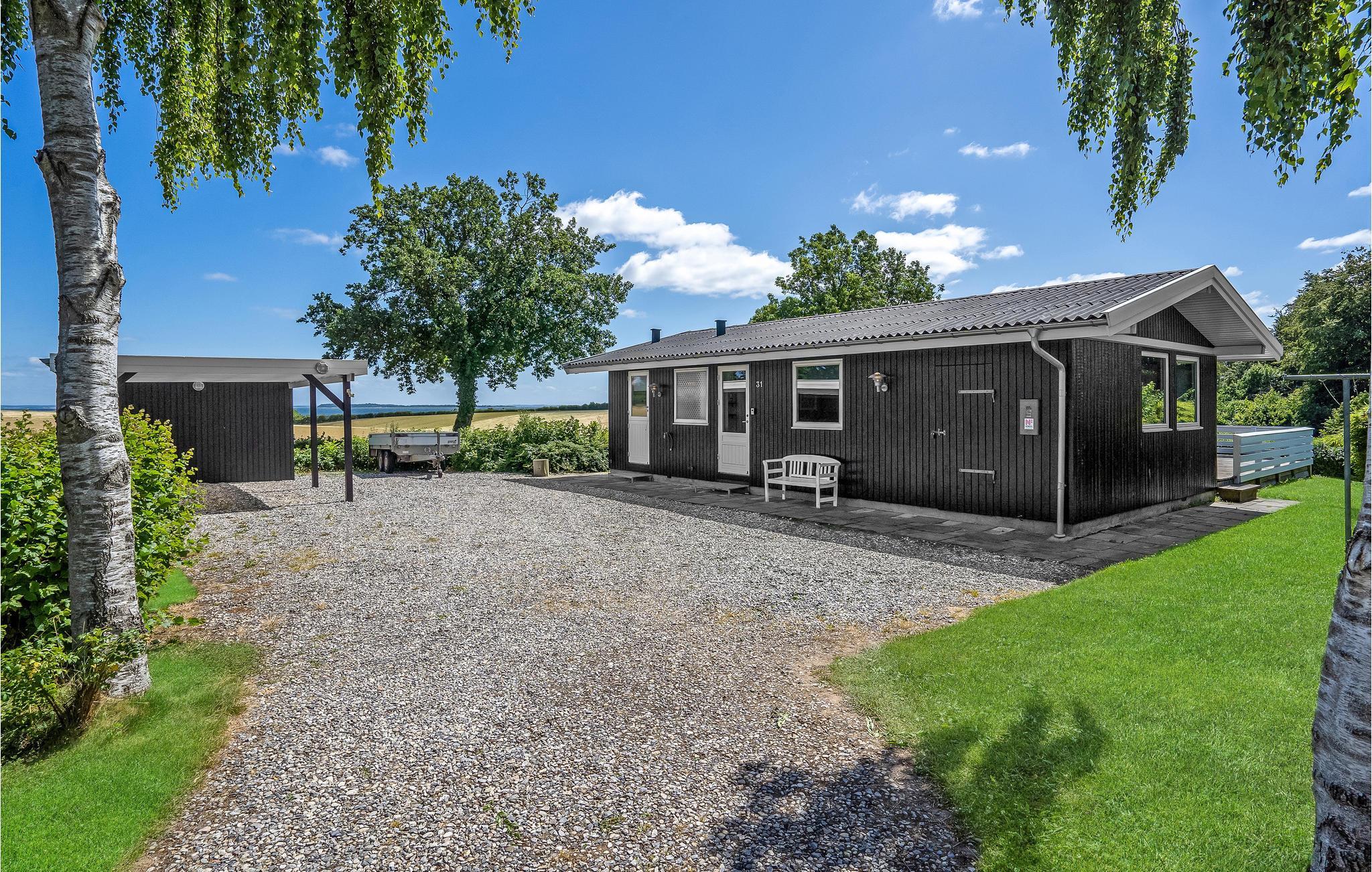 For enden af en blind vej ligger dette hyggelige sommerhus med en flot panoramaudsigt ud over mark og skov, samt kig til vandet.