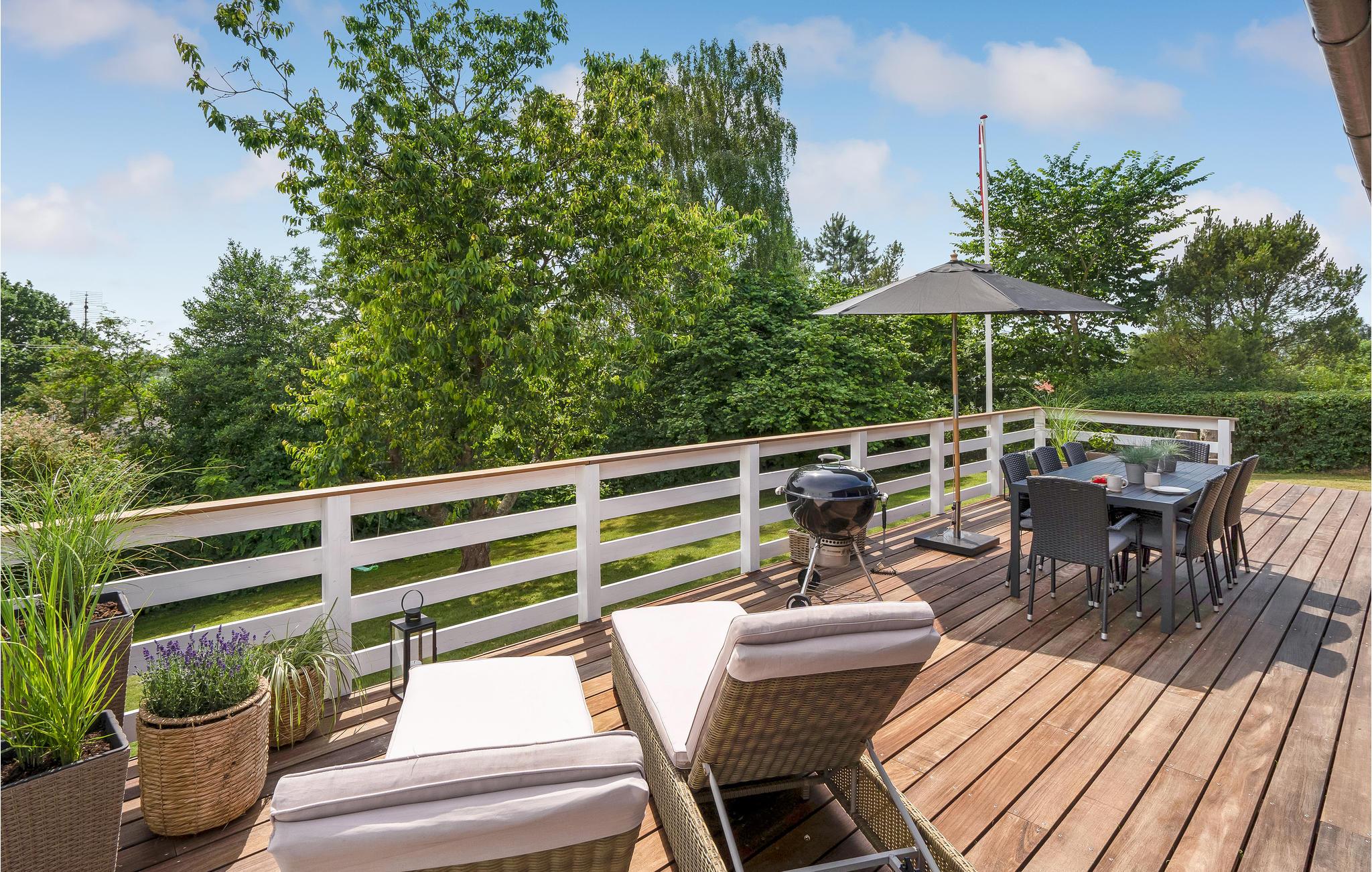 Hyggeligt, børnevenligt træhus med stor terrasse i naturskønne Hejlsminde.