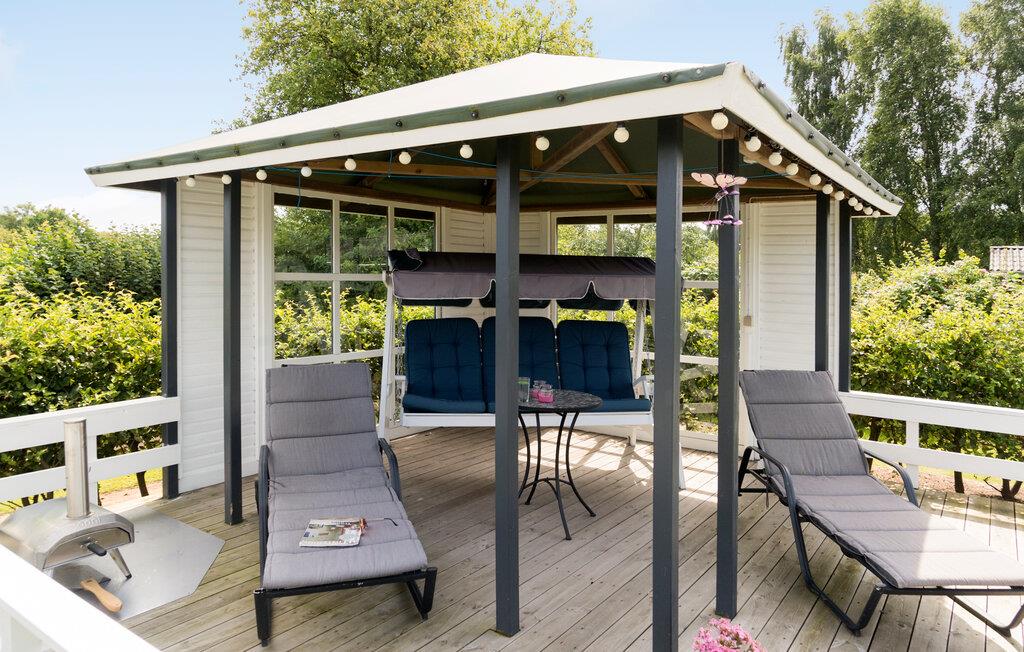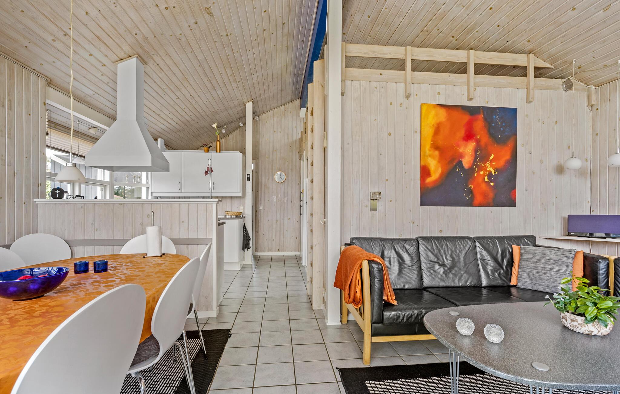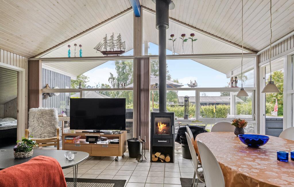 Med sin beliggenhed på en lille blind vej i et roligt feriehusområde, henvender dette dejlige sommerhus sig især til familier. Huset er meget børnevenligt med mange aktiviteter til små og større børn. Den lyse stue i åben forbindelse med et flot og moderne køkken, danner rammen om jeres ferieophold. I de smagfulde og komfortable møbler kan I nyde både sommeren, men skam også de mørke vinteraftener i brændeovnens skær. Klimaanlæg og varmepumpe gør opholdet optimalt, uanset om det er sommer eller vinter. Fra den store, sydvestvendte og delvis overdækkede terrasse kan I nyde solen eller grille aftensmaden. Til huset hører også en pavillon med en hyggelig hængesofa og en dejlig solterrasse hvor sommerdagene kan nydes i fulde drag og på en snefuld vinterdag, ser I direkte ud på den snedækkede have. Der er en gratis trådløs-internetforbindelse med lynhurtige 100/100MB, som virker med Iphone og Ipad.