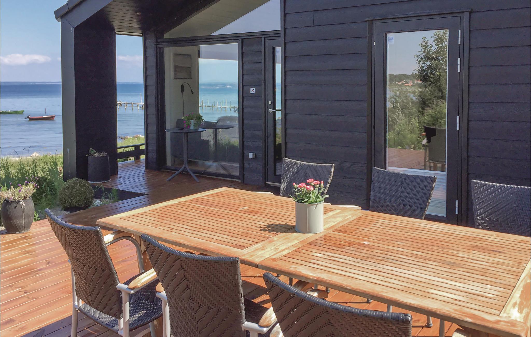 NB! Da der er en del trappetrin op til huset, og der ikke er afskærmning ved terrassen er huset ikke egnet til småbørn og gangbesværede. Da der er en del trappetrin op til huset, er det ikke egnet til gangbesværede. Tæt ved huset er der et fællesareal, som børn og barnlige sjæle kan benytte til boldspil eller andre aktiviteter. Stranden nedenfor huset er meget børnevenlig, idet I skal langt ud før vandet bliver dybt, her findes også en badebro.