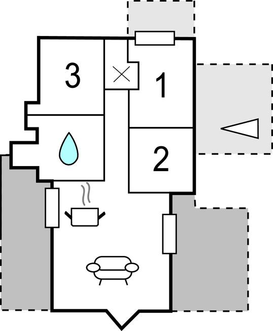 Soveværelse 6m2 (nr. 3) - 2 Sovepladser. (Sofa, madras eller lignende).