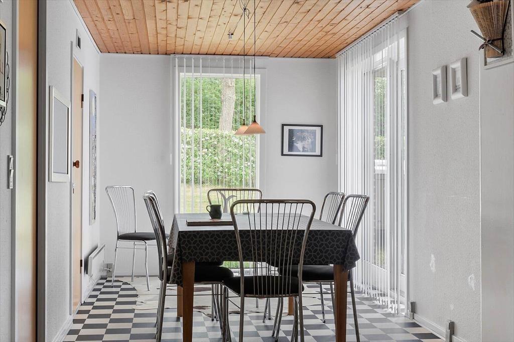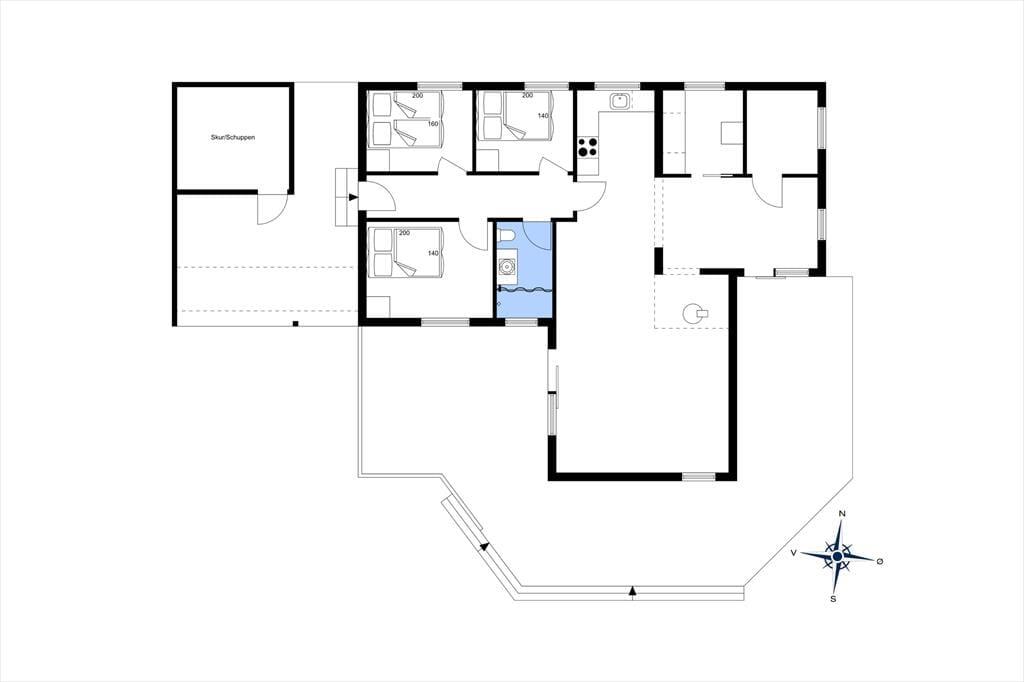 Boligen indeholder entré og hele tre soveværelser med dobbeltsenge og skabsplads, badeværelse med bruser, hyggeligt køkken i åben forbindelse med spisestue med udgang til terrasse, stor TV-og opholdsstue med brændeovn og udgang til delvis overdækket træterrasse. Her kan man virkelig sidde og lade hvilen komme over sig mens man nyder freden og roen .. og måske en enkelt velskænket øl.