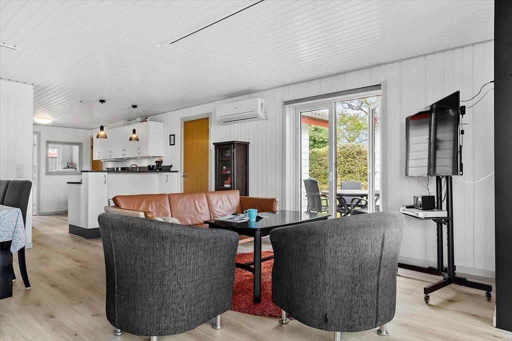 Indenfor mødes du af et lyst og hyggeligt indrettet sommerhus, hvor atmosfæren straks giver skuldrene lov til at sænke sig. De lyse farver og det naturlige lys skaber en behagelig og indbydende stemning, som gør det nemt at føle sig hjemme fra første øjeblik. Stuen er husets naturlige samlingspunkt, hvor du kan slå dig ned i sofaen med en god bog, nyde udsigten mod vandet eller samle familien til brætspil og hyggelige samtaler. Når aftenen falder på, spreder brændeovnen både varme og stemning, mens flammernes knitren understreger følelsen af ægte sommerhushygge. Det åbne opholdsrum giver plads til samvær og nærvær, og her er der rig mulighed for at nyde feriens rolige tempo – uanset årstid. Dette er et sommerhus, hvor rammerne er skabt til afslapning, fordybelse og gode ferieminder.