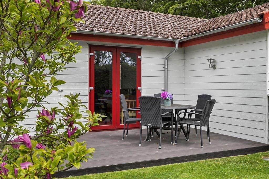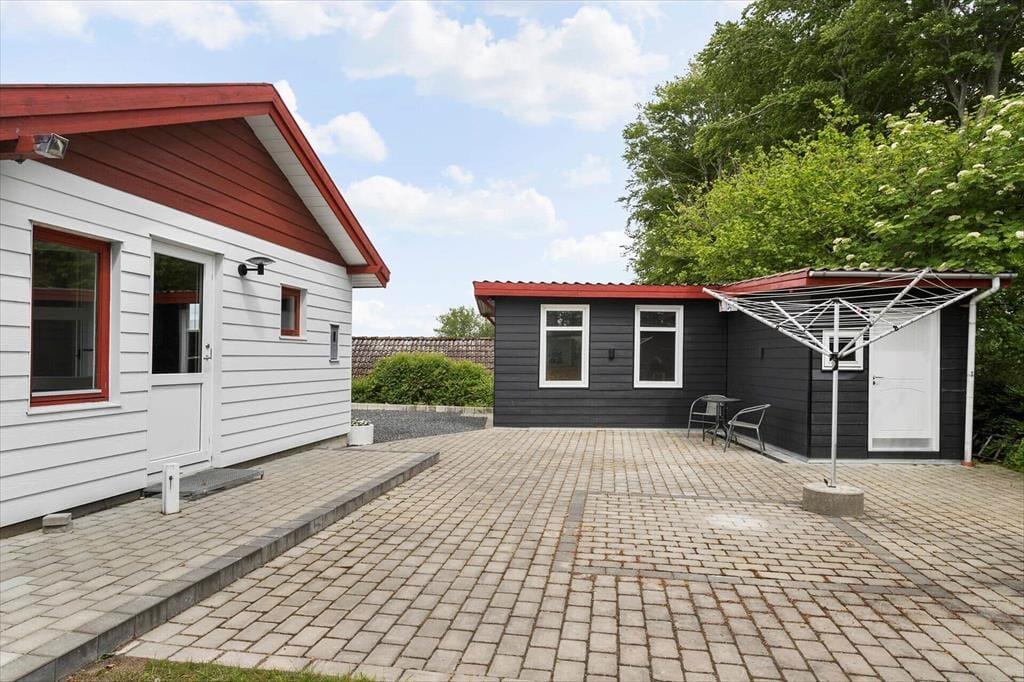 Sommerhusets udendørsarealer indbyder til at nyde ferien under åben himmel. Her kan du starte dagen med morgenkaffen, mens du lader blikket glide ud over Hejlsmindebugten og mærker den friske havluft. Terrassen er det oplagte sted at nyde solrige dage og lange sommeraftener, hvor grillen kan tændes, og måltiderne nydes i godt selskab. Omgivelserne er rolige og naturskønne, og fuglenes kvidren danner en smuk lydkulisse til ferien. Med den korte afstand til stranden er det nemt at tage spontane ture til vandet – hvad enten du vil bade, gå en tur langs kysten eller blot mærke sandet mellem tæerne. Her er der plads til både aktivitet og ren afslapning.
