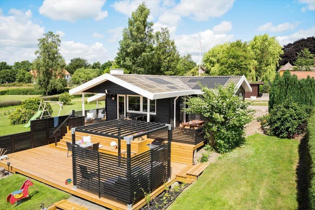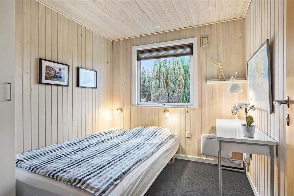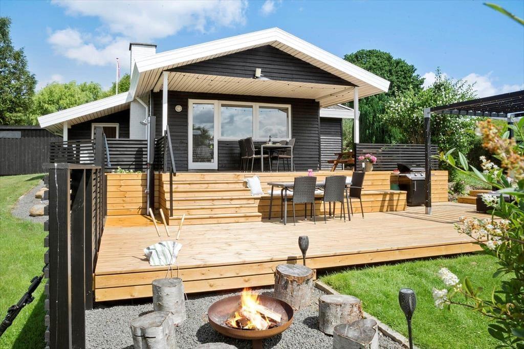Udendørs byder sommerhuset på en dejlig stor træterrasse, der hurtigt bliver feriens naturlige opholdssted. Her kan du starte dagen i loungeområdet med morgenkaffen, mens solen langsomt varmer omgivelserne op, og fuglene kvidrer i baggrunden. Terrassen indbyder både til afslapning og hyggelige stunder sammen, og når aftenen falder på, kan I samles omkring det udendørs bålfad. Her er der plads til snobrød, gode snakke og den særlige stemning, som kun ild under åben himmel kan skabe. Udelivet i dette sommerhus handler om at være tæt på naturen og hinanden – uanset om du nyder solen i ro og mag eller deler ferieminder over et glas vin i skumringen.