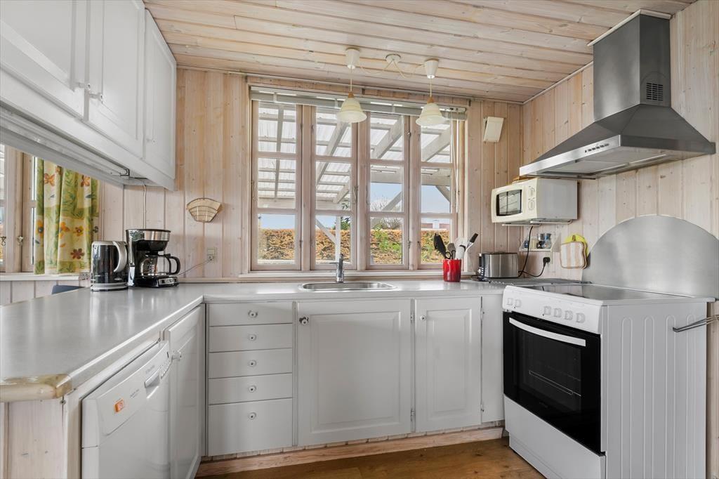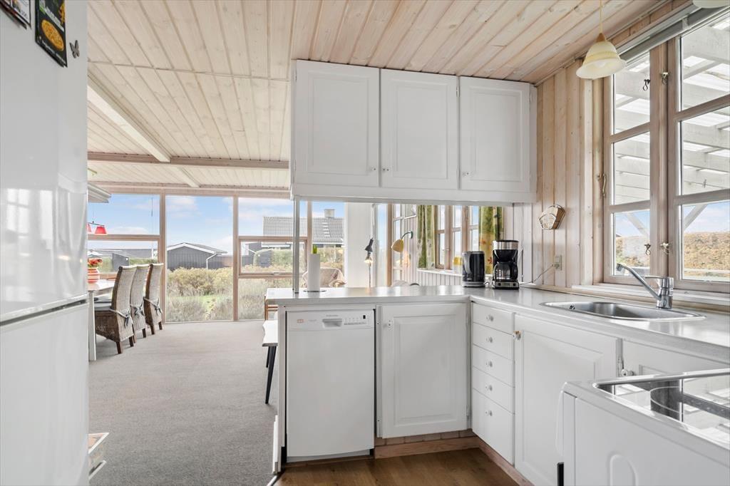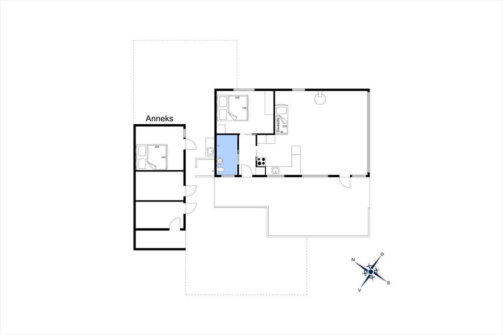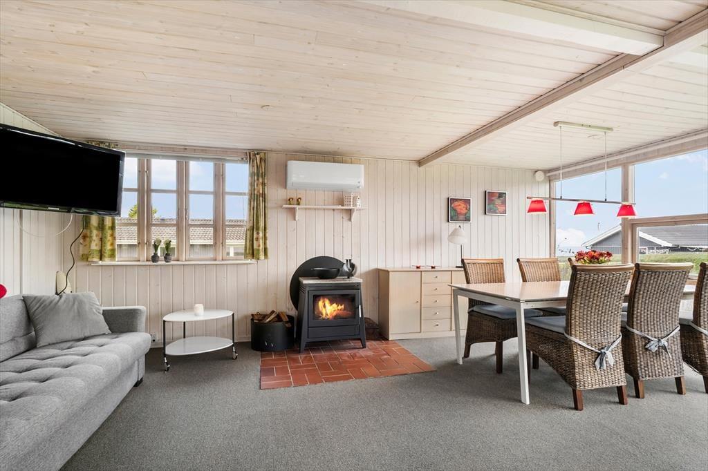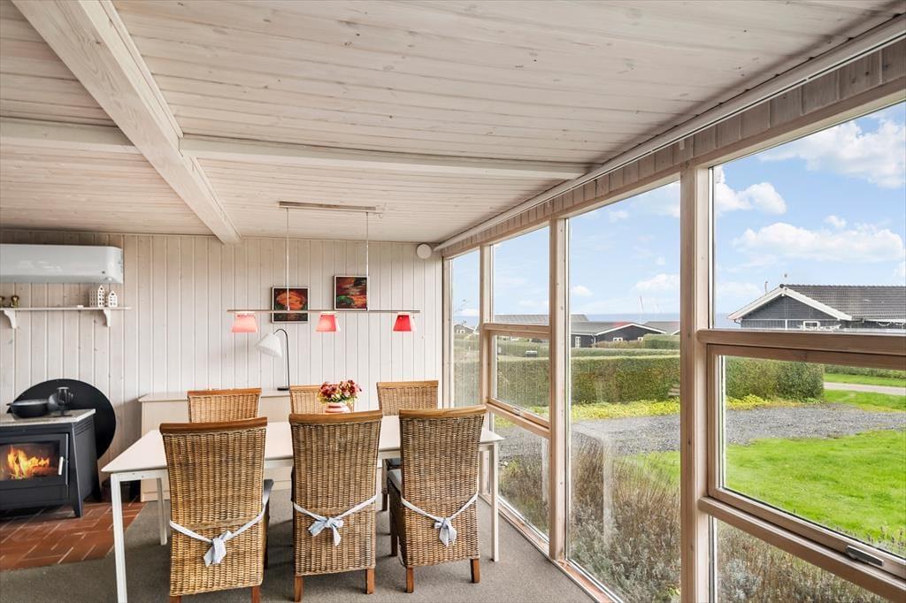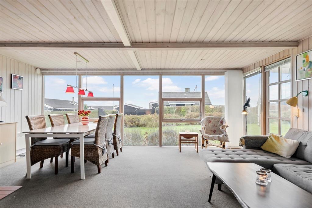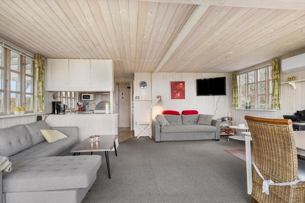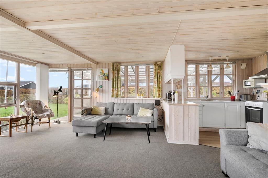 Sommerhusets hjerte er den rummelige og lyse havestue, hvor du kan nyde morgenkaffen omgivet af naturligt lys og med udsigt til haven. Havestuens store vinduespartier lader solens stråler strømme ind og skaber en varm og indbydende stemning, der spreder sig til resten af huset. Stuen, der ligger i forlængelse af havestuen, byder på en komfortabel sofa og hyggehjørner, hvor I kan nyde stille stunder eller samles omkring en god bog. Køkkenet er funktionelt indrettet med direkte adgang til spisestuen, så hele familien kan samles omkring måltiderne. I annekset findes der ekstra sovepladser, hvilket giver mulighed for privatliv og lidt ekstra luksus, hvis I rejser flere sammen.