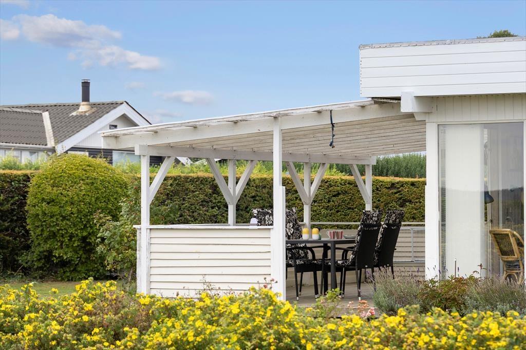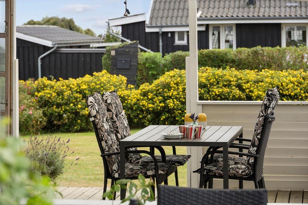 Sommerhusets terrassemiljø er skabt til at nyde lange sommerdage og lune aftener i det fri. Her kan I finde læ i en af de hyggelige kroge, tage plads ved de forskellige haveborde og sætte jer godt til rette i de komfortable havemøbler. Grillen står klar, så I kan tilberede måltider under åben himmel, og når solen går ned, kan aftenen fortsætte omkring bålfadet. Har I fanget frisk fisk, kan I glæde jer over husets fiskerenseplads, hvor dagens fangst nemt kan klargøres til grillen. Med flere terrasser er der altid et sted at finde sol eller skygge alt efter jeres præferencer, og den grønne have indbyder til leg og hygge for både store og små.