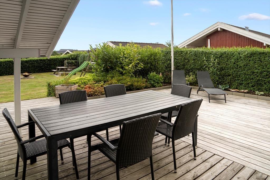 Nyd livet udenfor Sommerhusets store terrasse giver dig mulighed for at nyde udelivet fra tidlig morgen til sen aften. Med både overdækkede og åbne terrasseområder kan du altid finde en perfekt plads i solen eller skyggen. Her kan du starte dagen med morgenmad i den friske luft, slappe af i liggestolene med en god bog eller samles omkring grillen til hyggelige aftener under åben himmel. Haven er omgivet af grønne omgivelser, så her får du en følelse af fred og ro – perfekt til at komme helt ned i gear.