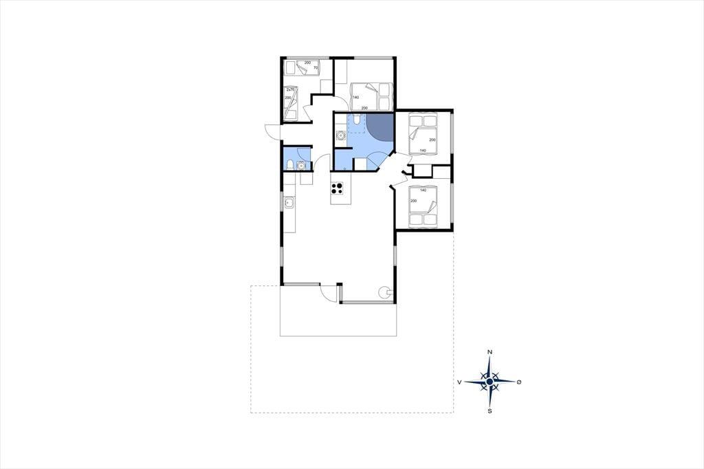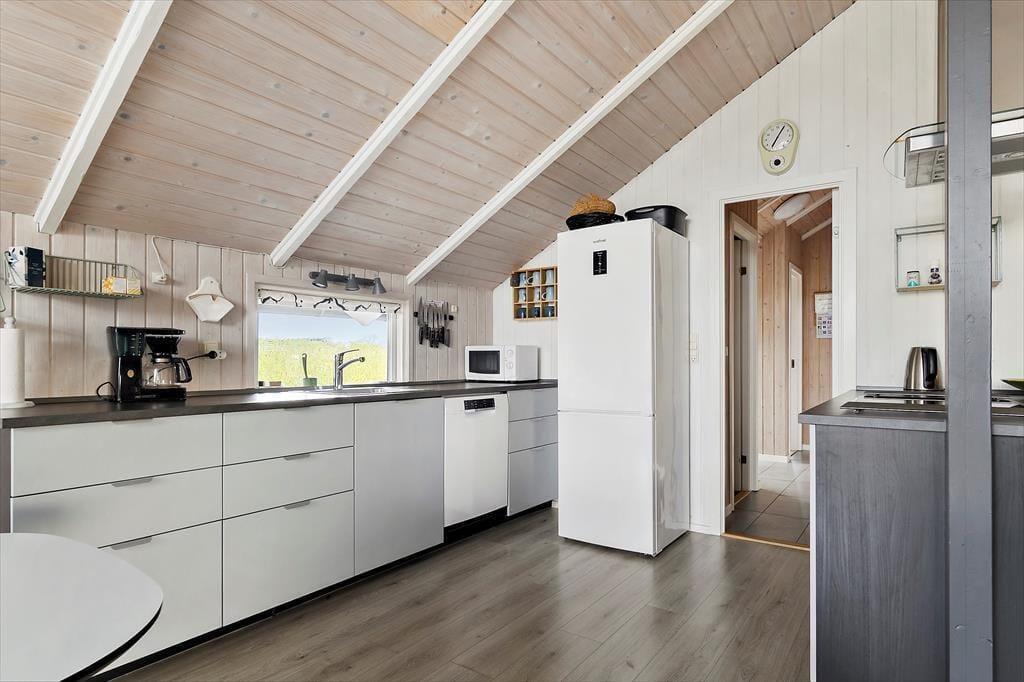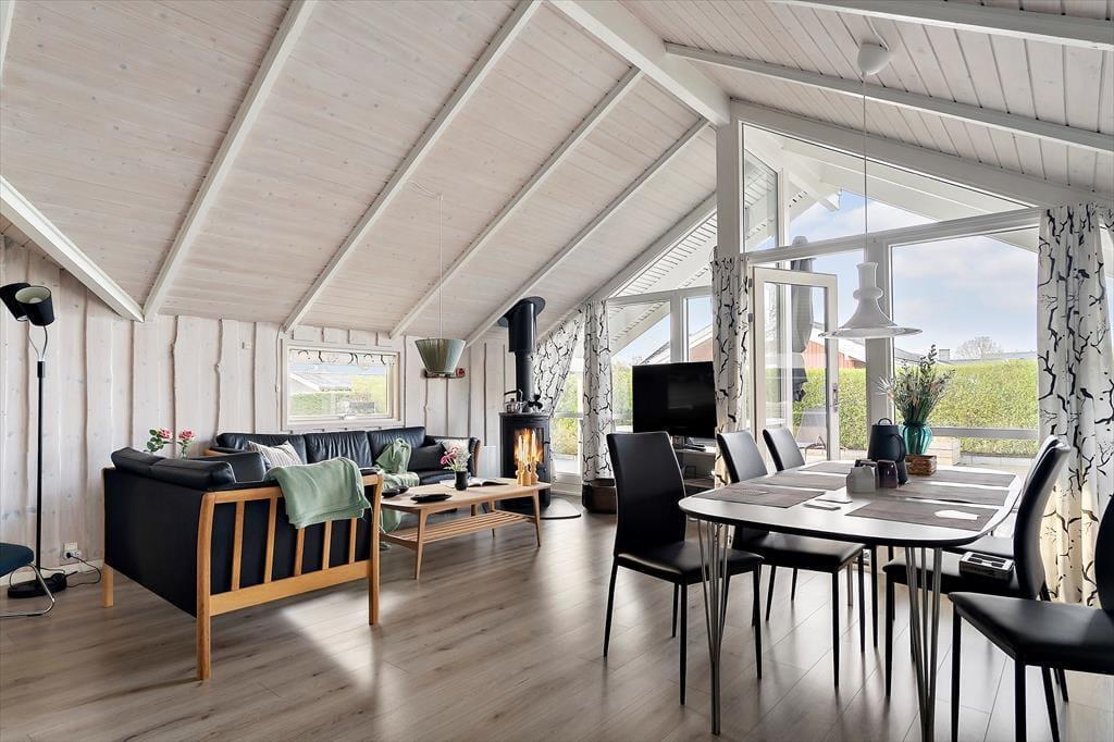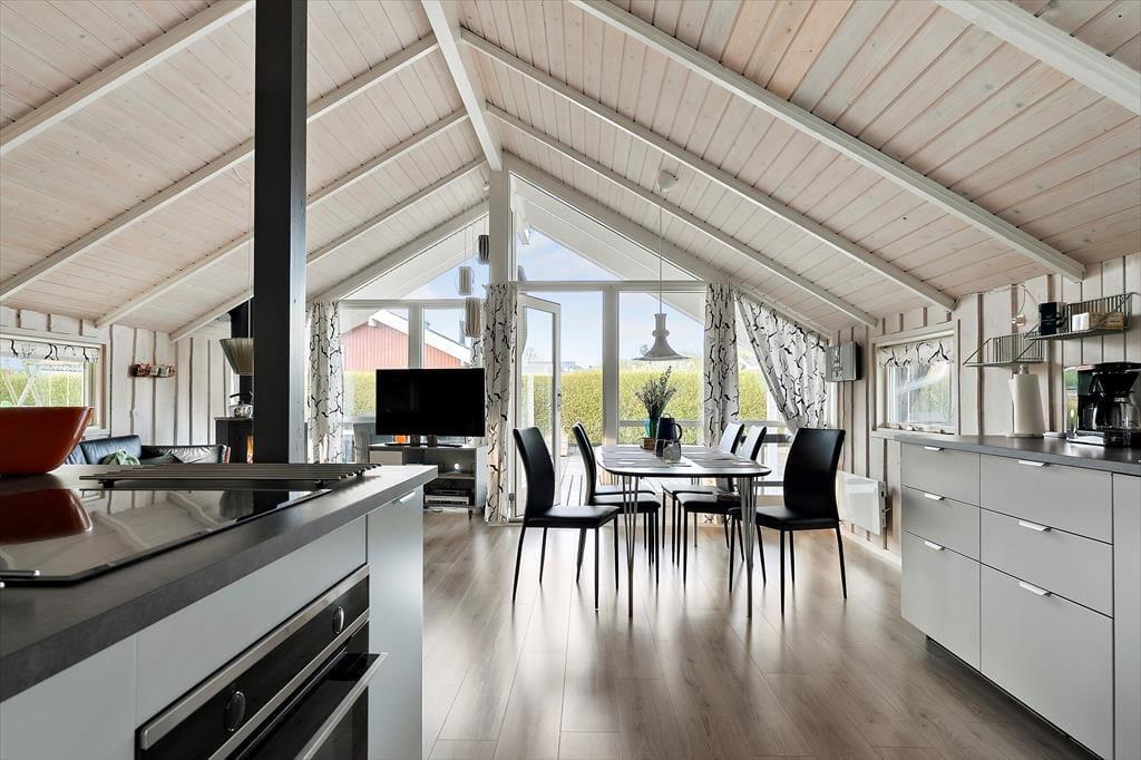 Velkommen indenfor Sommerhuset byder dig velkommen med en indbydende og lys atmosfære. Det åbne opholdsrum kombinerer køkken, spiseplads og stue, hvor du kan være sammen med familie og venner, uanset om du laver mad, hygger dig ved spisebordet eller slapper af i sofaen. De store vinduespartier lader dagslyset strømme ind og giver dig en smuk udsigt til haven. Den hyggelige stue er et naturligt samlingspunkt, hvor du kan nyde morgenkaffen eller lade roen sænke sig efter en dag fyldt med oplevelser. Badeværelset er udstyret med spa, så du kan forkæle dig selv med ren afslapning efter en aktiv dag ved stranden eller på udflugt i området.