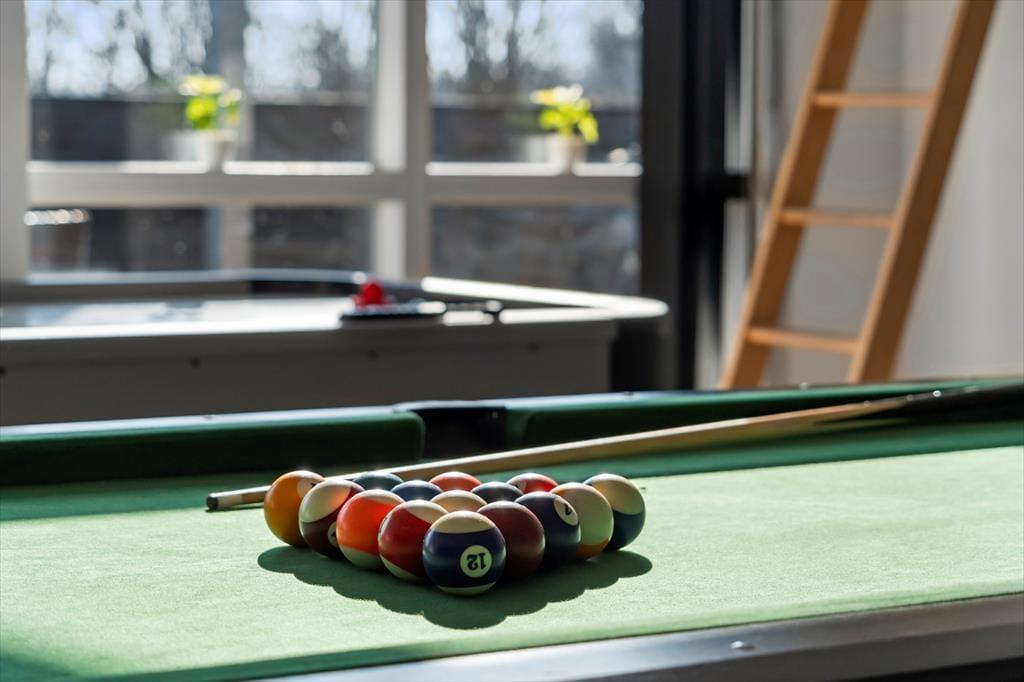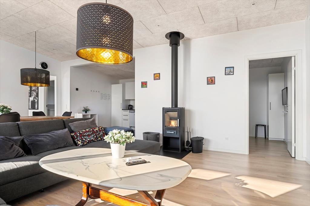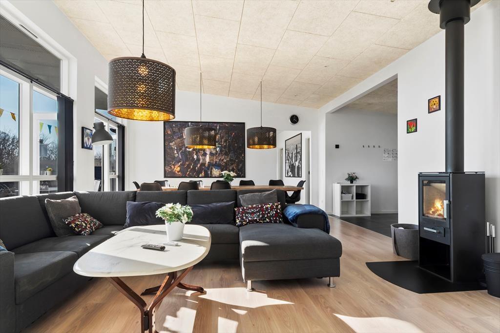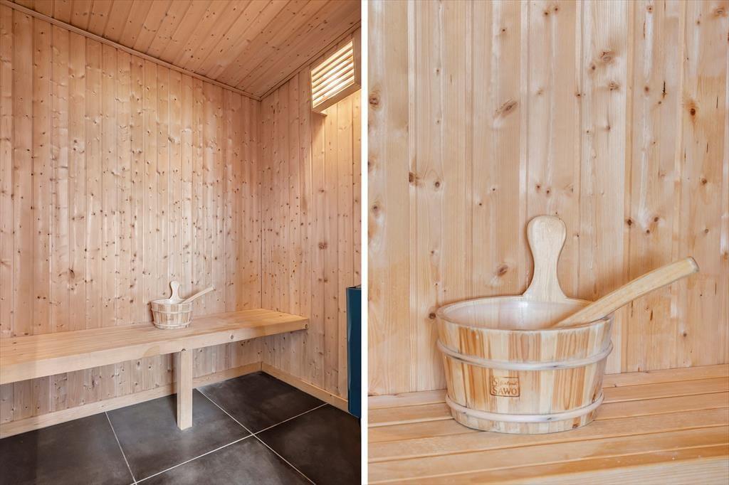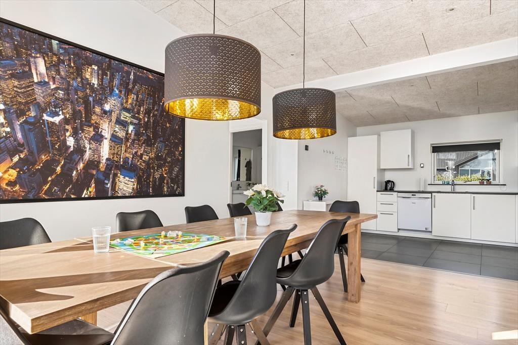 Indenfor mødes du af en lys og indbydende atmosfære med moderne indretning og gulvvarme i hele huset, der sikrer komfort uanset årstiden. Det store opholdsrum kombinerer stue, spiseafdeling og køkken i ét, så familien kan samles til hyggelige stunder. De store vinduespartier lukker naturen indenfor og giver et smukt lysindfald. Efter en aktiv dag kan du slappe af i spaen eller lade varmen fra saunaen omfavne dig. Derudover byder huset på et veludstyret aktivitetsrum, hvor du kan udfordre dine rejsefæller i billard, bordtennis eller air hockey og skabe sjove ferieminder sammen.