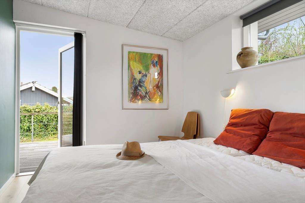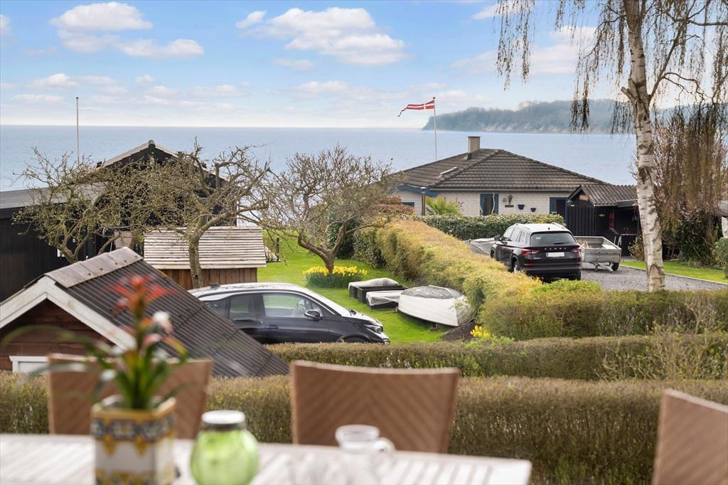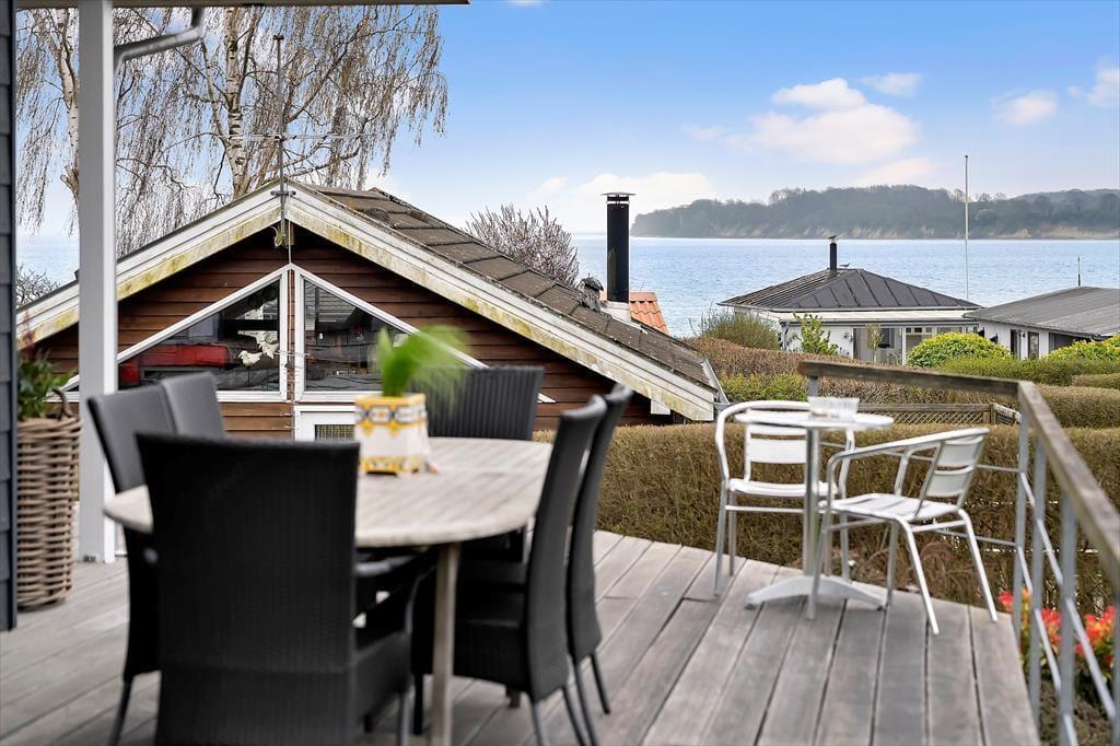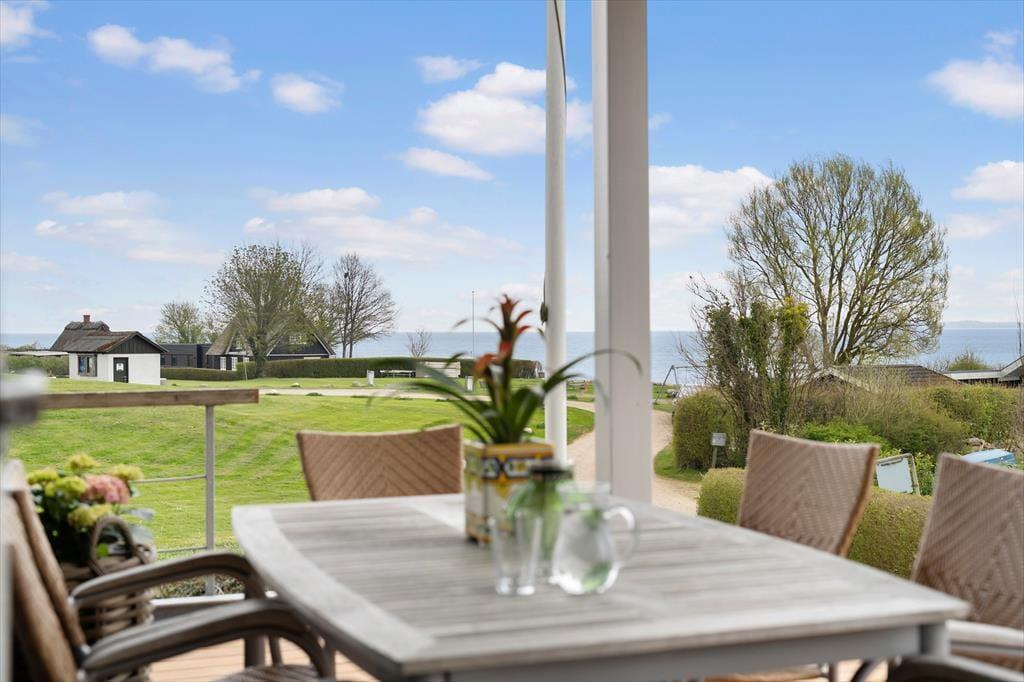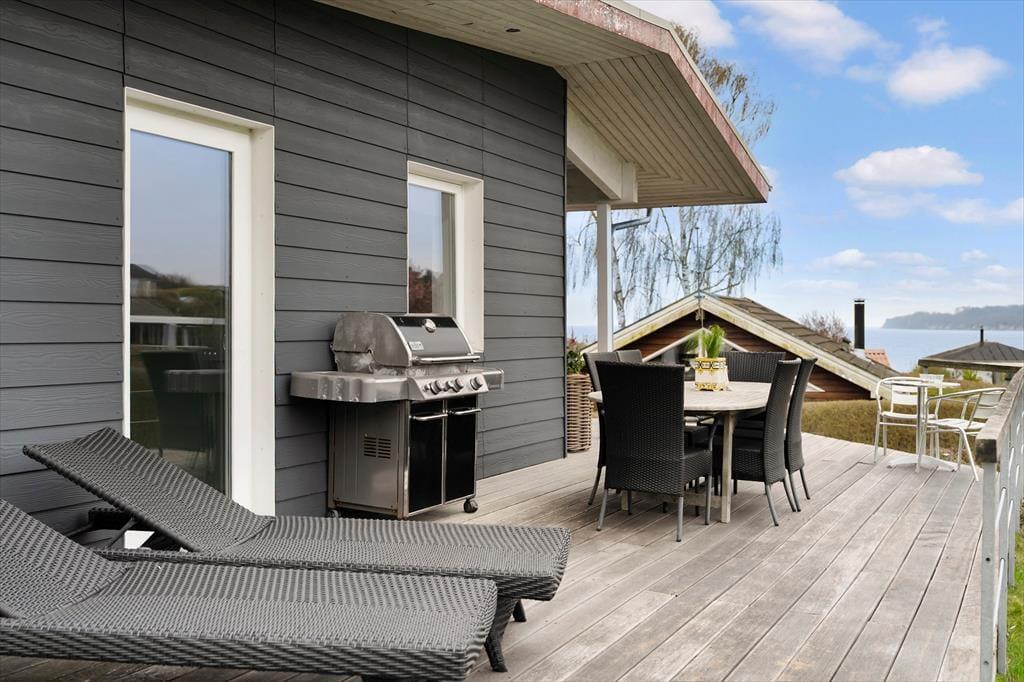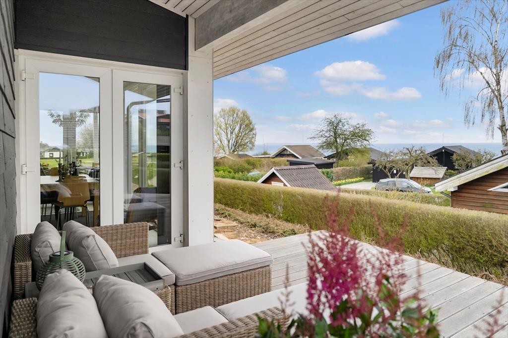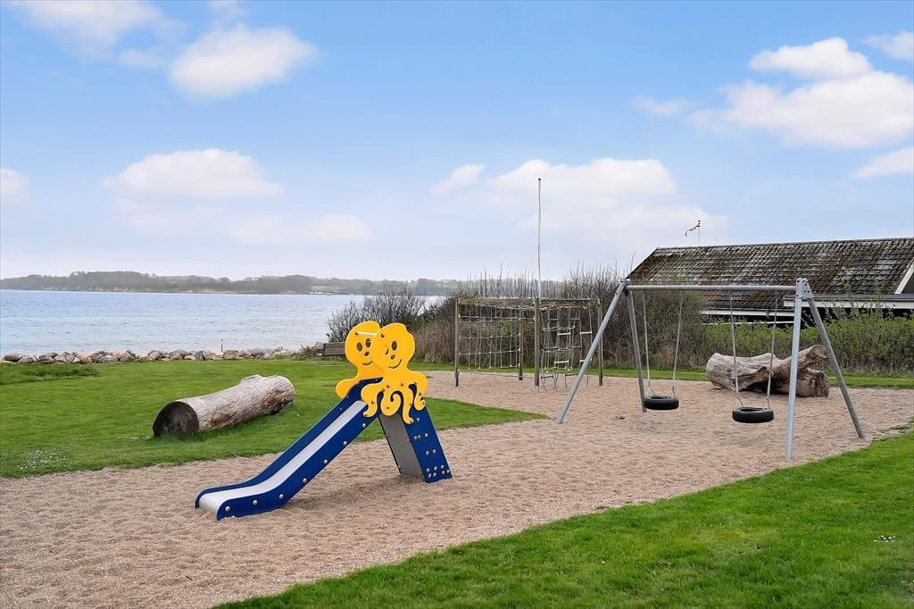 Udendørs er der lagt op til lange, lyse dage og hyggelige aftener i det fri. Sommerhuset er omgivet af store, indbydende terrasser – både åbne og overdækkede – så du altid kan finde en solplet eller søge skygge, alt efter hvad dagen og vejret kalder på. Terrasserne lægger op til morgenmad i solen, eftermiddagskaffe med udsigt og aftensmad fra grillen under åben himmel. Den omkringliggende natur inviterer til leg, afslapning og fordybelse – og med en offentlig legeplads i kort gåafstand er der også tænkt på familiens yngste. Her kan børnene brænde krudt af, mens de voksne nyder udsigten og den friske havluft. De mange små kroge og læ hjørner gør det let at finde sin egen favoritplads udenfor.