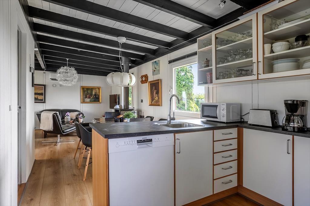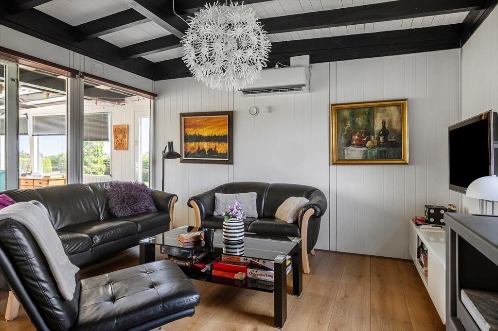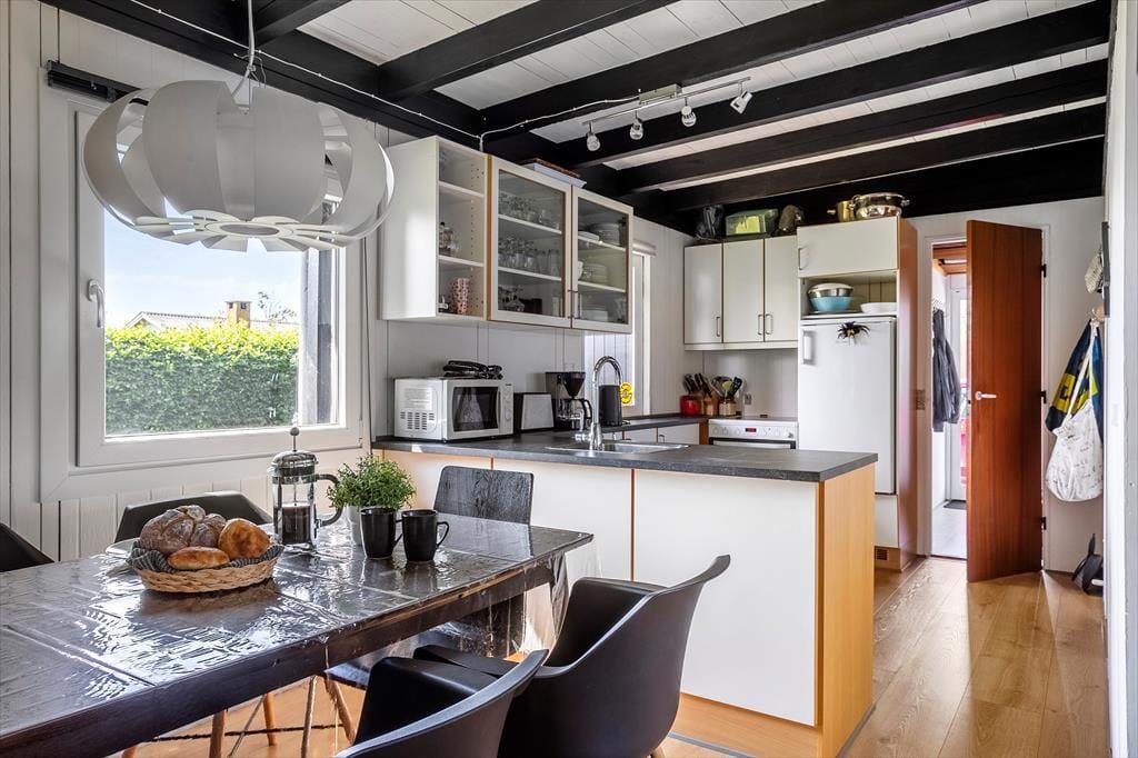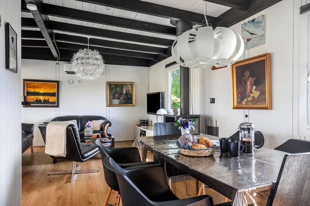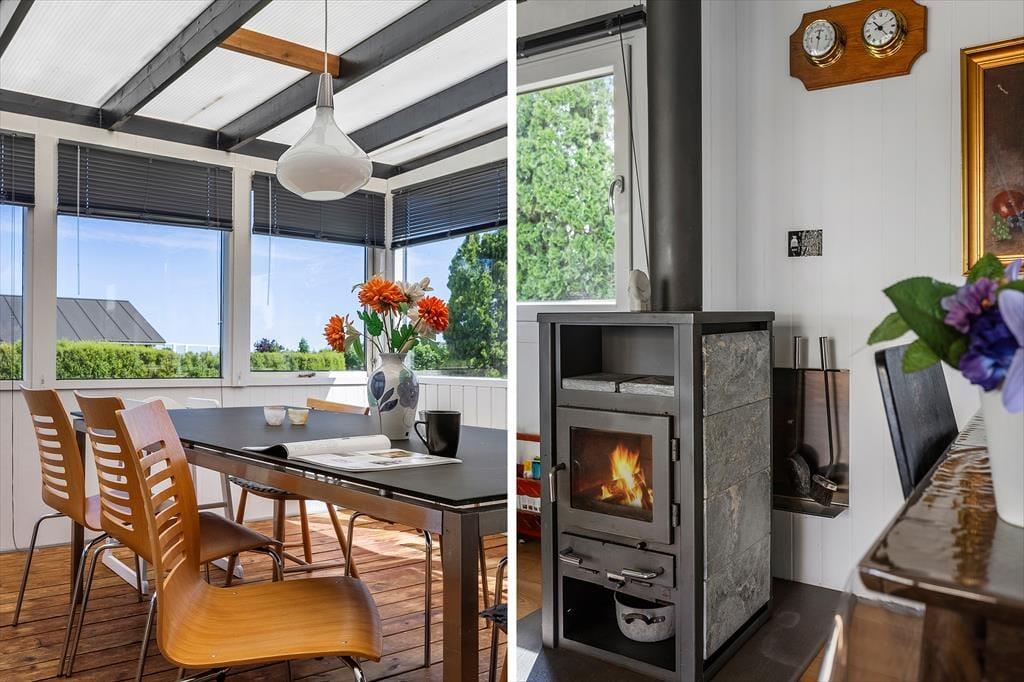 Når du træder ind i sommerhuset på Hegnet 1, bliver du mødt af en varm og afslappet atmosfære, hvor det er let at føle sig hjemme. Her er tale om et klassisk sommerhus, der med sin indretning og materialevalg vækker minder om barndommens ferier og samtidig tilbyder de ideelle rammer for nye traditioner og gode oplevelser. Hjertet i huset er stuen, hvor du kan samles med dem, du holder af, foran den knitrende brændeovn – perfekt til de lidt køligere dage eller til afslappende aftener med en god bog og et tæppe over benene. Udestuen er endnu et stemningsfuldt opholdsrum, der udvisker grænsen mellem inde og ude og giver dig mulighed for at nyde lyset og udsigten til haven året rundt. I det åbne køkken kan du nemt være en del af samtalen, mens der forberedes måltider, og i husets øvrige rum fornemmer du en ro og enkelhed, der understøtter den afslappede sommerhusstemning.