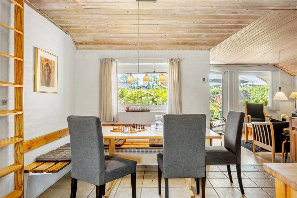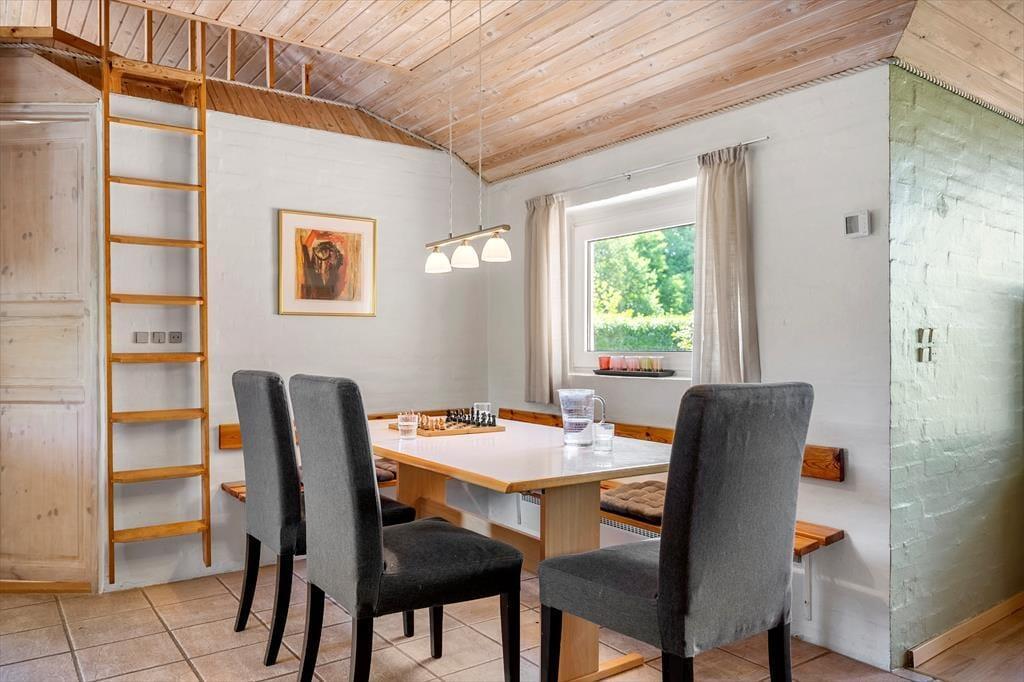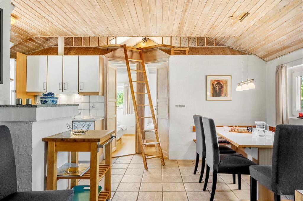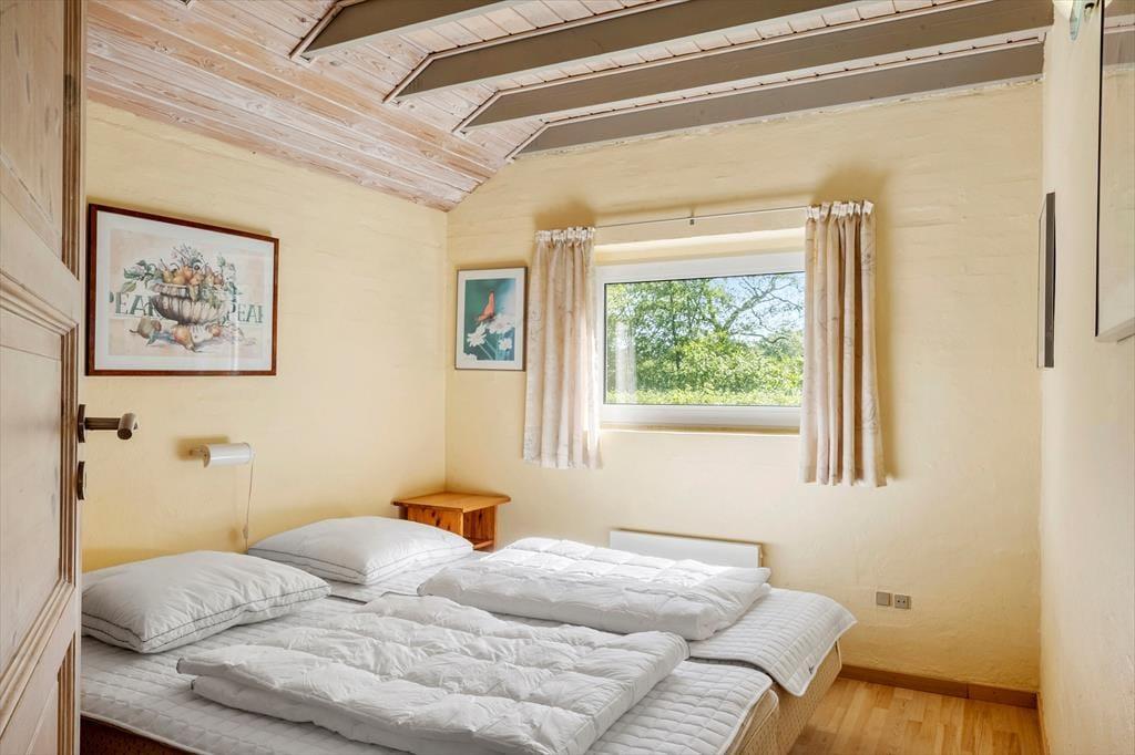 Bag den charmerende facade af røde sten gemmer der sig et sommerhus, hvor autenticiteten er i højsædet. Indretningen er hyggelig og uprætentiøs – præcis som et sommerhus skal være. Her kan du samle familien omkring spisebordet i det åbne opholdsrum, hvor køkken, spiseplads og stue smelter sammen i ét. De store vinduespartier trækker haven og bringer lyset ind i rummet og skaber en varm og imødekommende atmosfære. Sofaen indbyder til afslappede aftener med kortspil, filmhygge eller bare roligt nærvær med dem, du holder af. Når natten falder på, kan du glæde dig til en god nattesøvn i rolige omgivelser, hvor naturens lyde udenfor fungerer som den bedste baggrundsmusik.