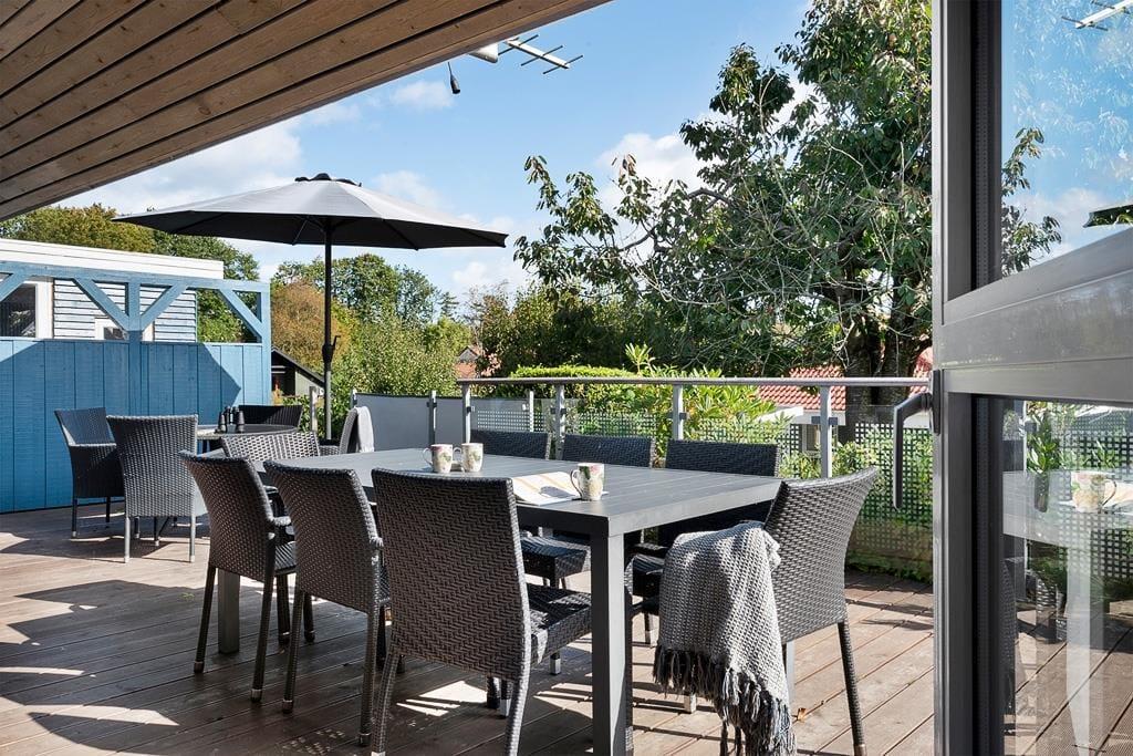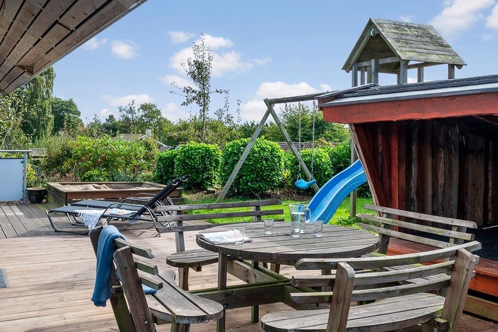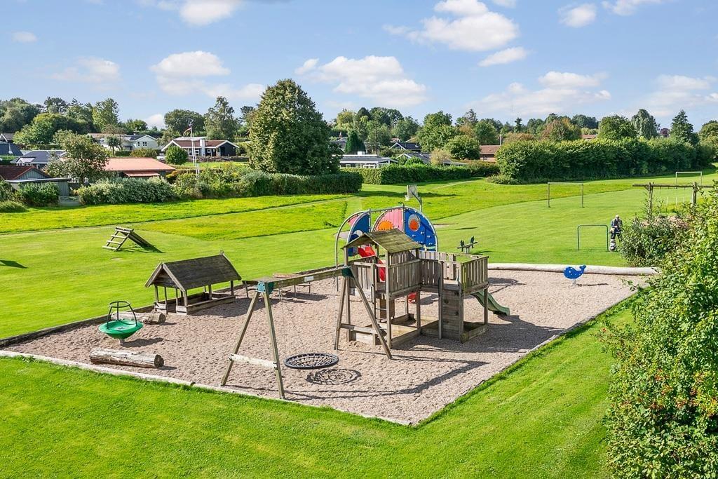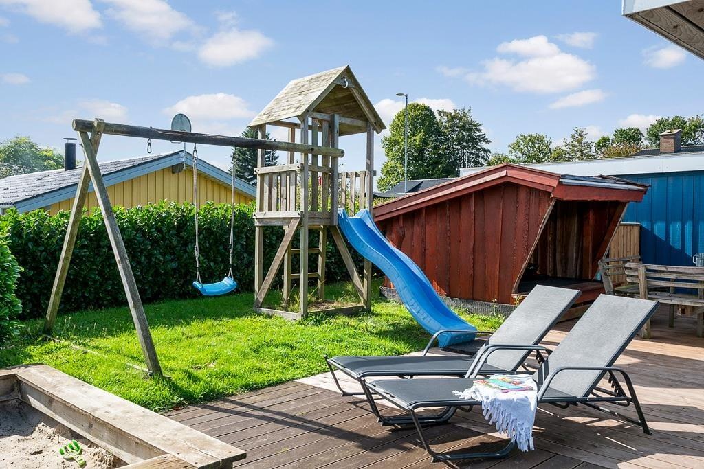 Sommerhuset er omgivet af en dejlig have, hvor børnene kan lege frit og trygt. Her er både gynge, rutsjebane og sandkasse, så de yngste kan få timer til at gå med leg under åben himmel. Imens kan de voksne finde ro på terrassen med en kop kaffe, en god bog eller blot nyde fuglesangen fra de grønne omgivelser. På solrige dage indbyder terrassen til grillmiddage, hvor hele familien samles, mens aftensolen langsomt går ned over Hejlsminde. For familiens firbenede ven er der også tænkt på trivsel – hunden er nemlig velkommen og vil uden tvivl elske at udforske den grønne have og nærområdet sammen med jer.