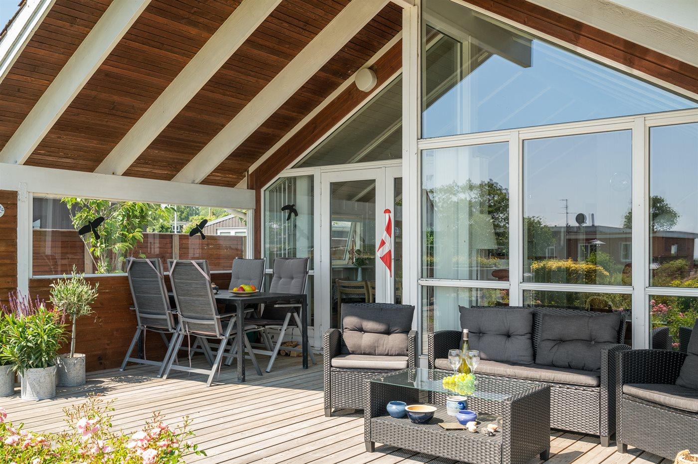 Med flot udsigt til vandet og lige op til fælles bold- og legeplads, hvor der er masser af legemuligheder for børnene ligger dette dejlige og hyggeligt indrettede sommerhus.