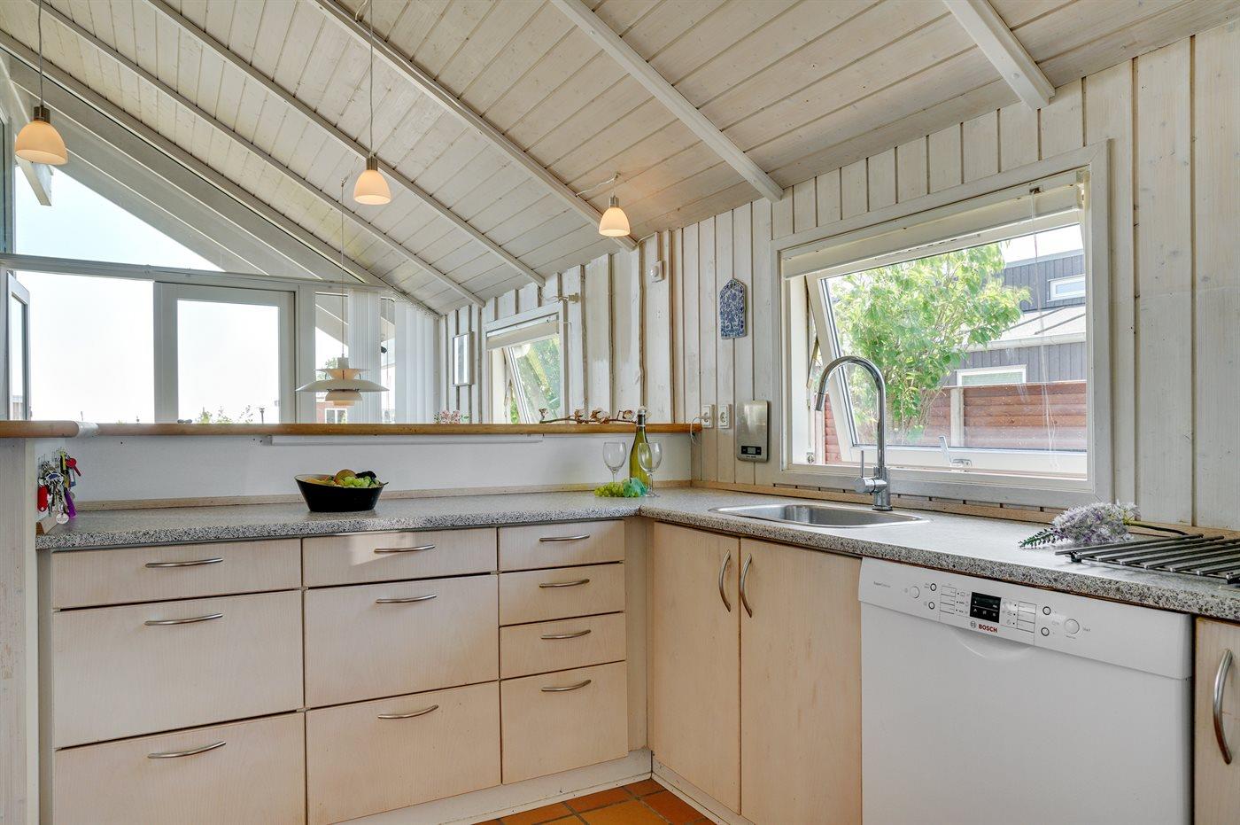Køkkenet er udstyret med 1 køleskab. Der er 4 keramiske kogeplader, varmluftovn, mikrobølgeovn samt opvaskemaskine.