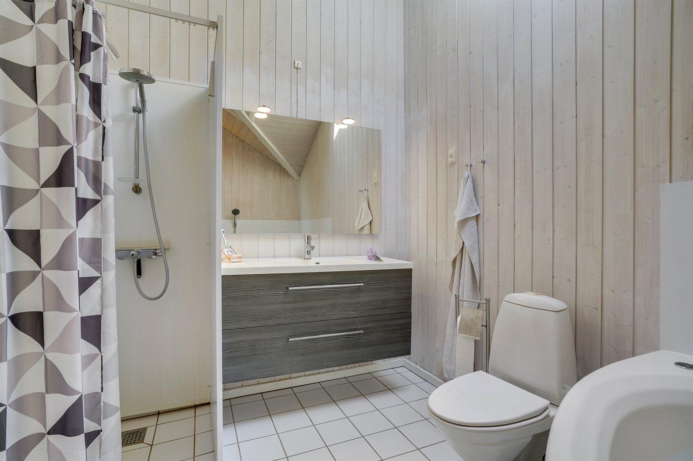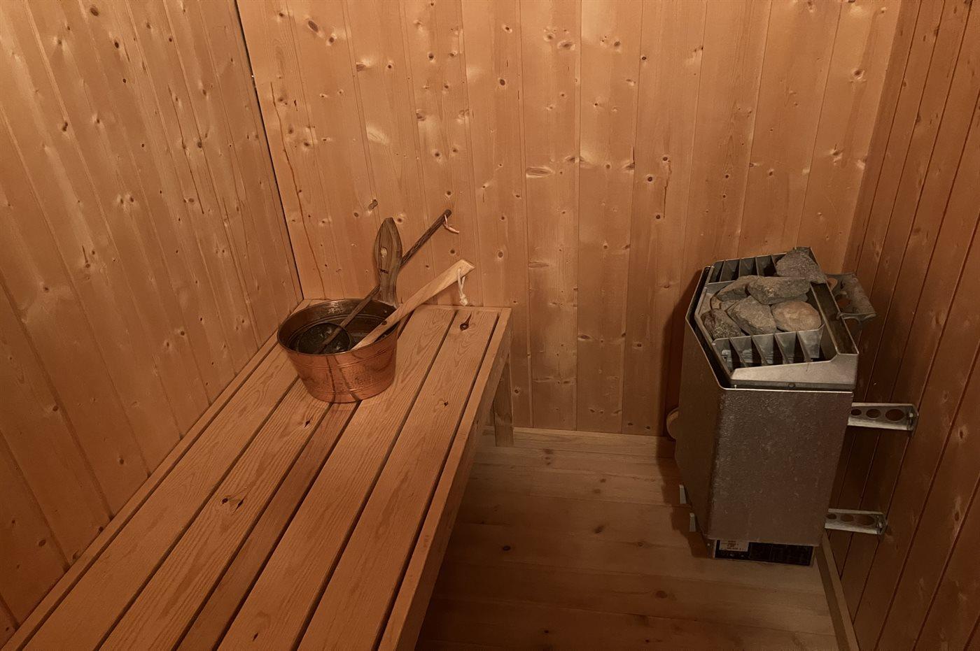Der er 1 badeværelse med bruseniche og 1 toilet. I saunaen er der mulighed for afslapning.