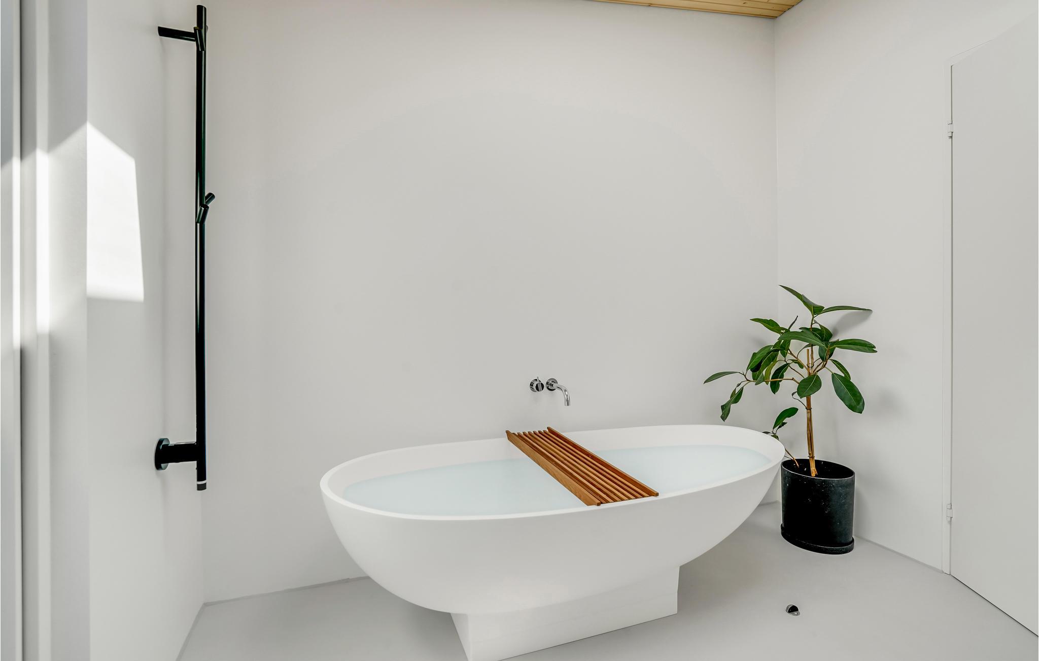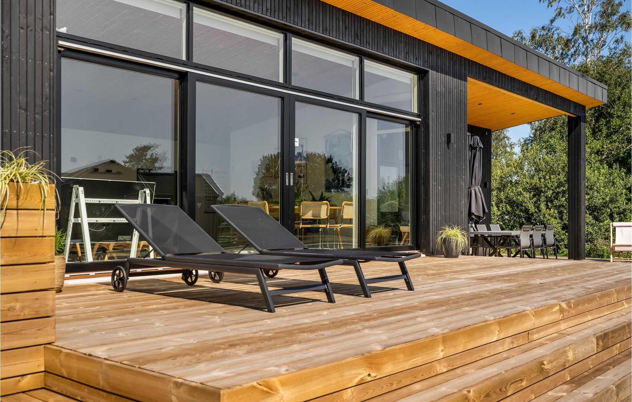 Tag familien med til dette gennemførte sommerhus i Hejsager, som ligger charmerende placeret med udsigt til Sandvigbugtens rolige vand. De store vinduespartier lukker masser af lys ind i boligen, så rummene emmer af ro og har et helt særligt harmonisk udtryk. Sæt sommersalaten sammen i det strømlinede køkken og tænd op i grillen på terrassen. Efter en lang dag med mange oplevelser, kan I sætte jer til rette i spabadet og løsne op i musklerne.