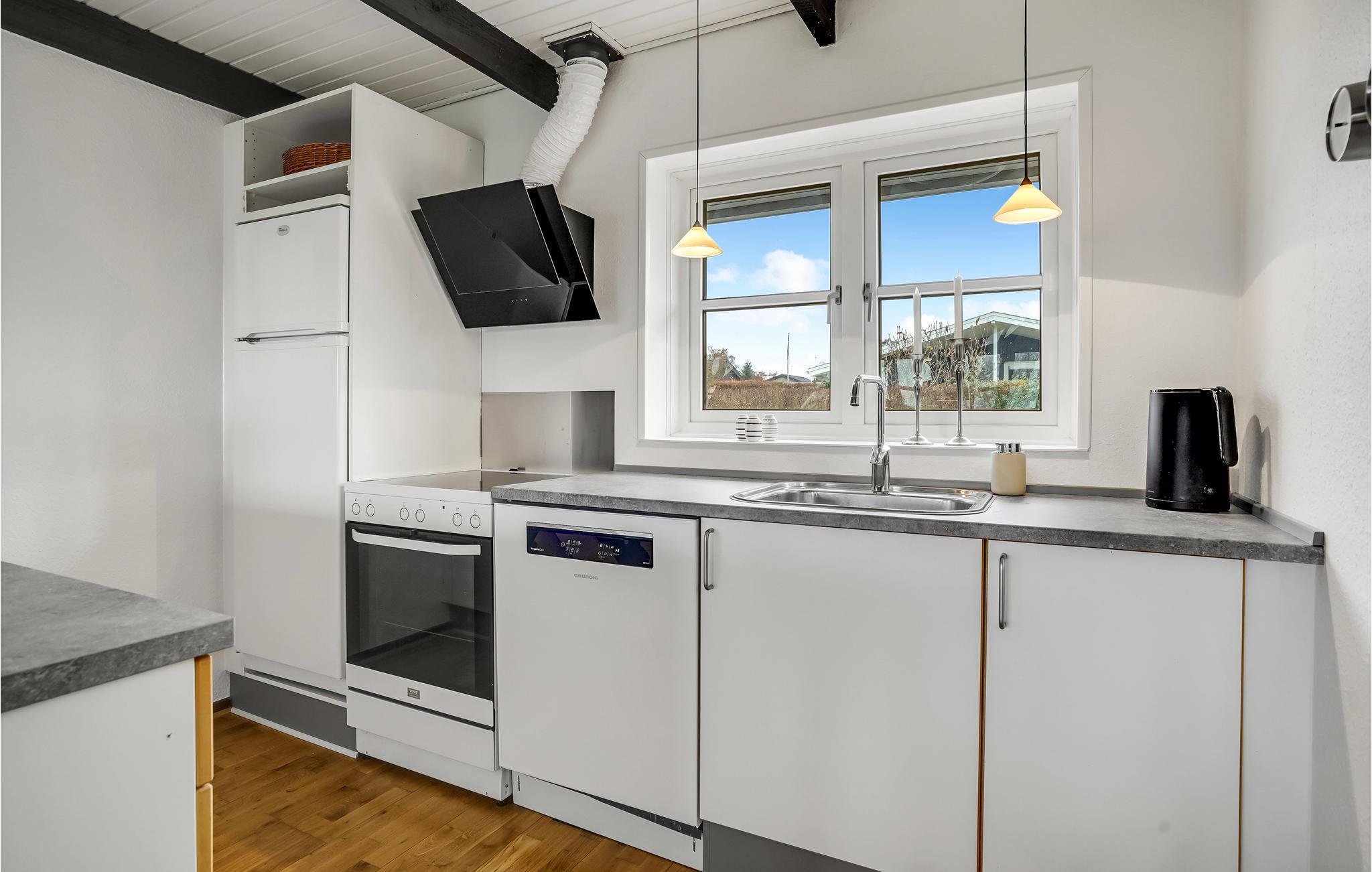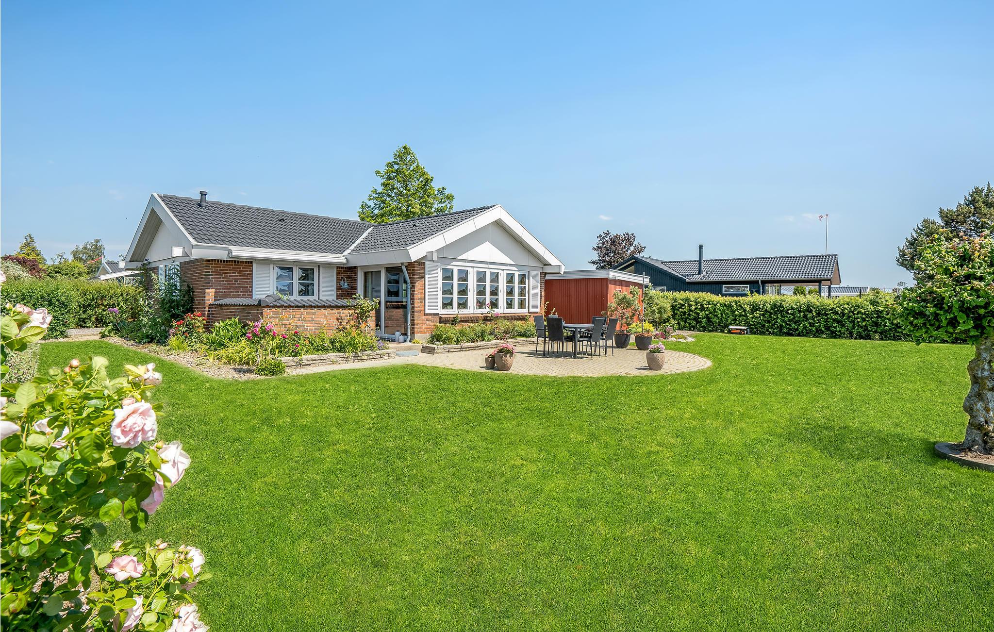 Hyggeligt klassisk feriehus i Hejsager nær en smuk sandstrand med terrasse og pilleovn.