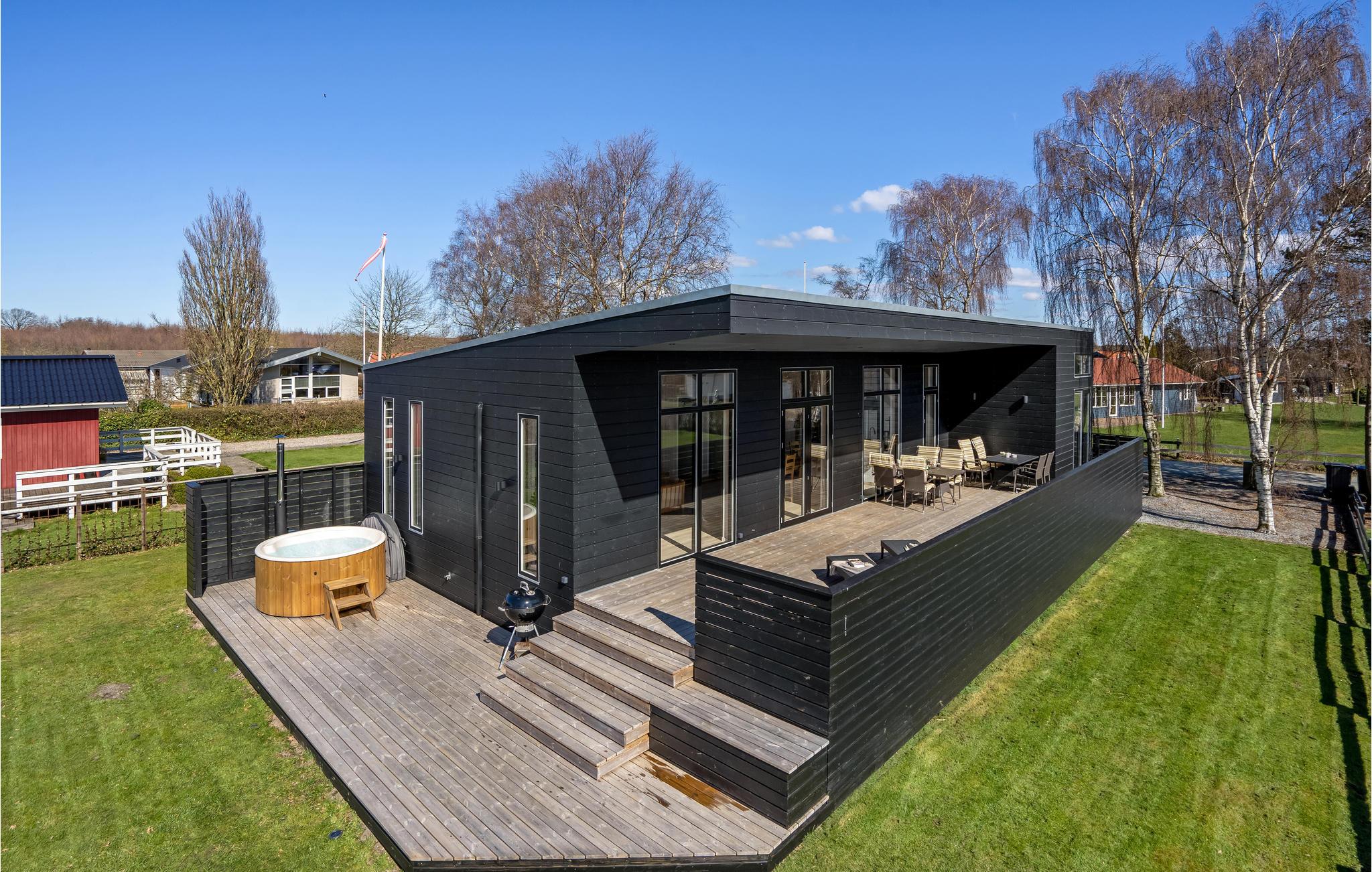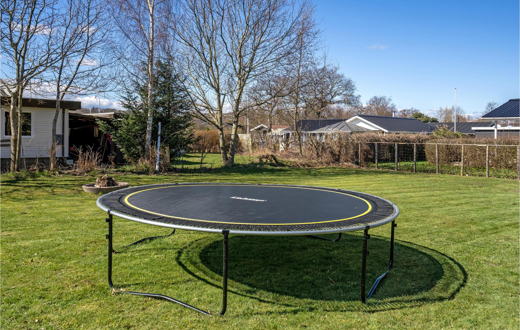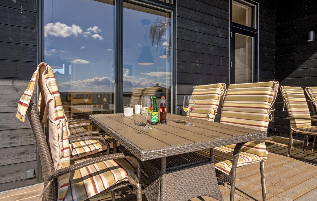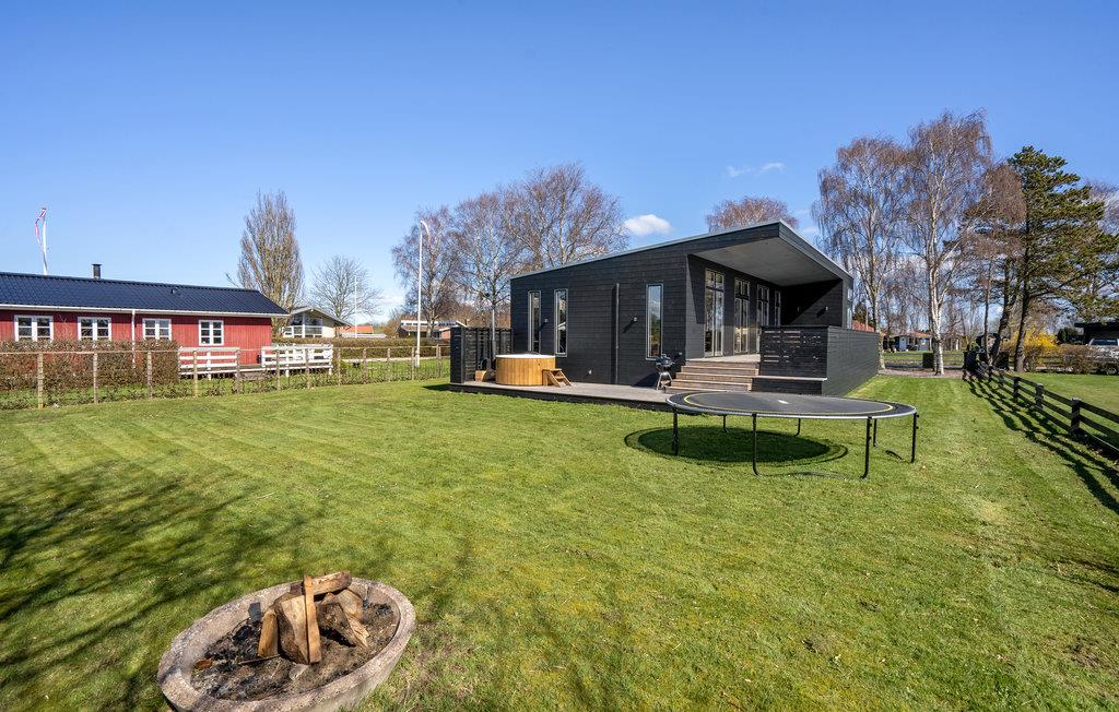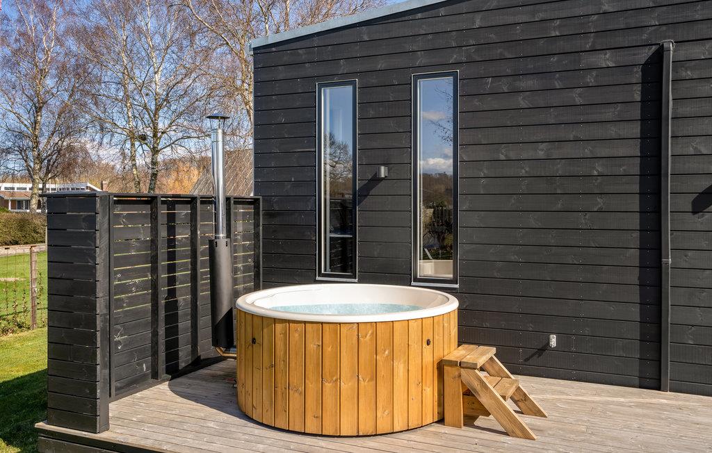 I kan også se frem til at nyde solen på en stor, afskærmet terrasse, som ligger højt med udsigt over vandet. Dæk op til den helt store grillmiddag her og rund dagen af med et glas vin, mens jeres børn render rundt i haven og hopper på trampolin. Når mørket falder på, kan I bløde de ømme muskler op i vildmarksbadet og mærke den kølige natteluft fra en behagelig position i det varme vand.
