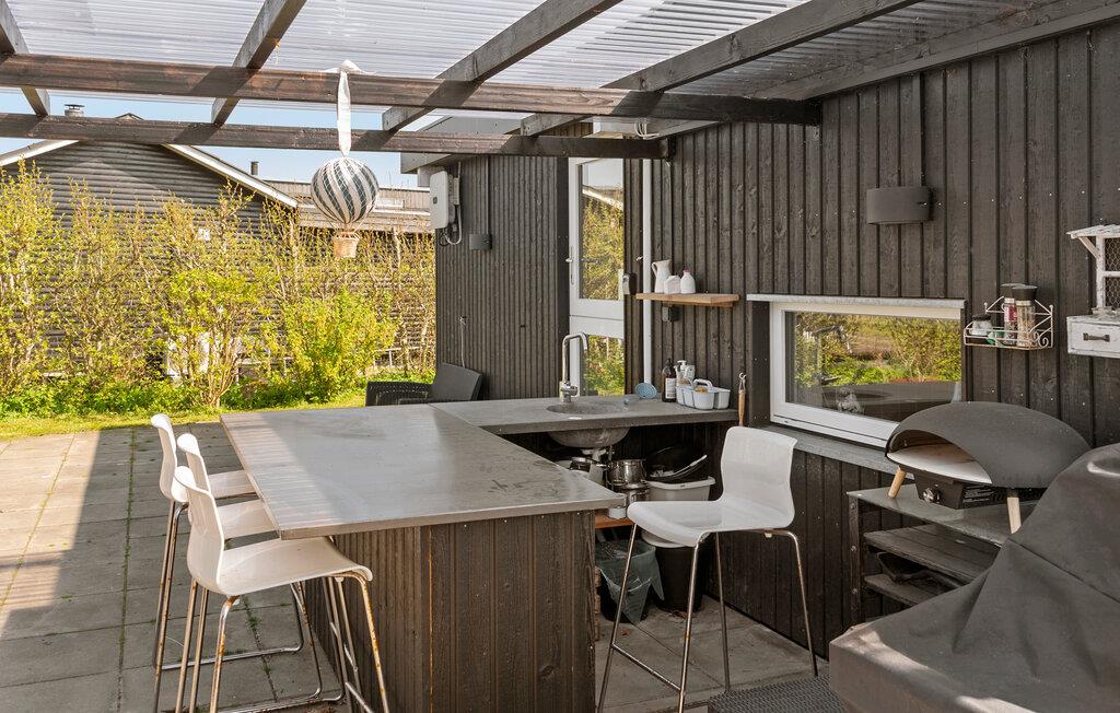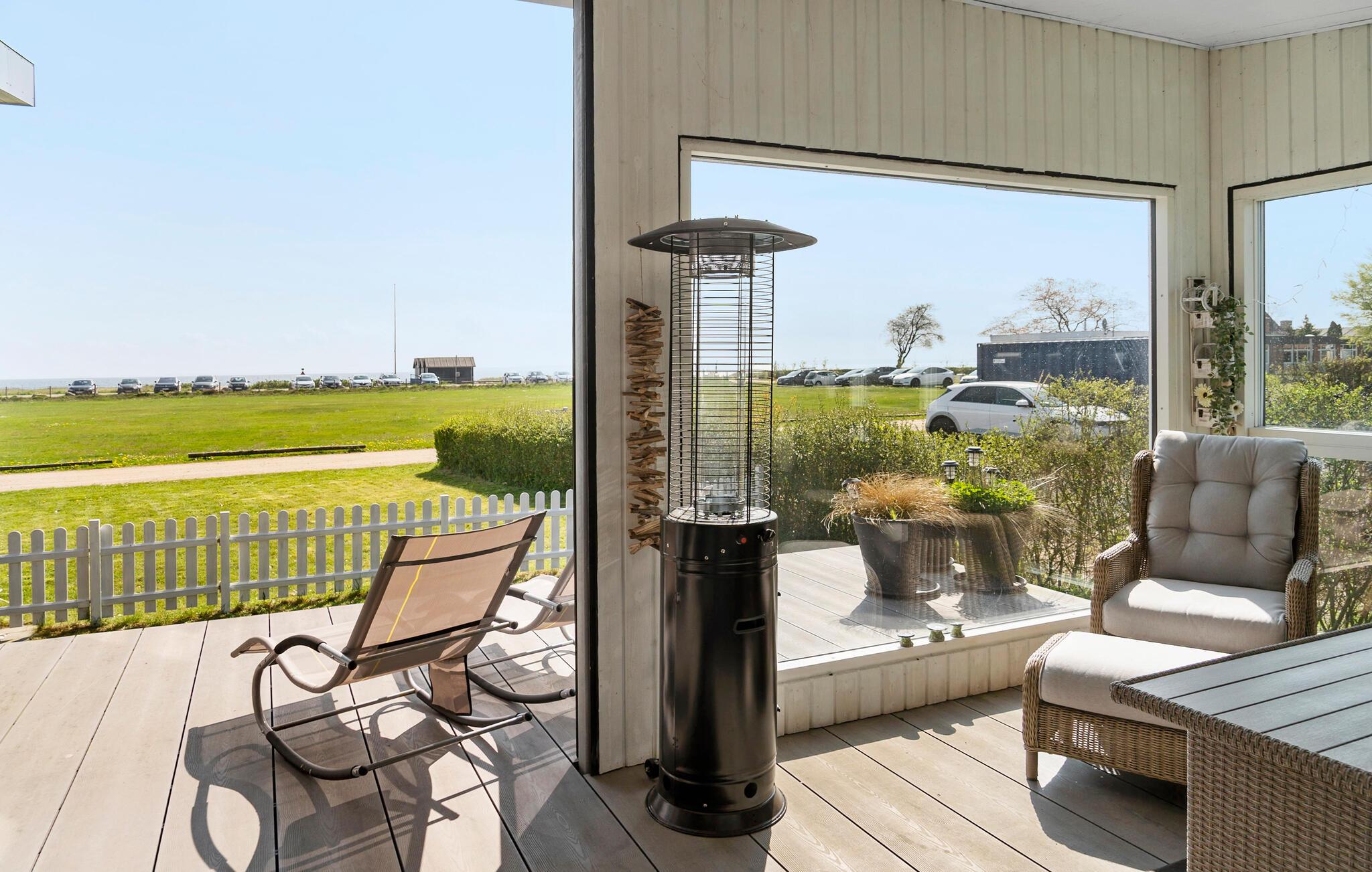 Brug de forskellige terrasseområder til rolige timer udendørs. Find jer godt til rette på liggestolene eller nyd en hyggelig grillaften i det overdækkede udekøkken. Uanset om morgenmad udendørs eller en god bog i loungehjørnet, finder alle deres yndlingssted her. Havudsigten sikrer også afslappende feriestunder.