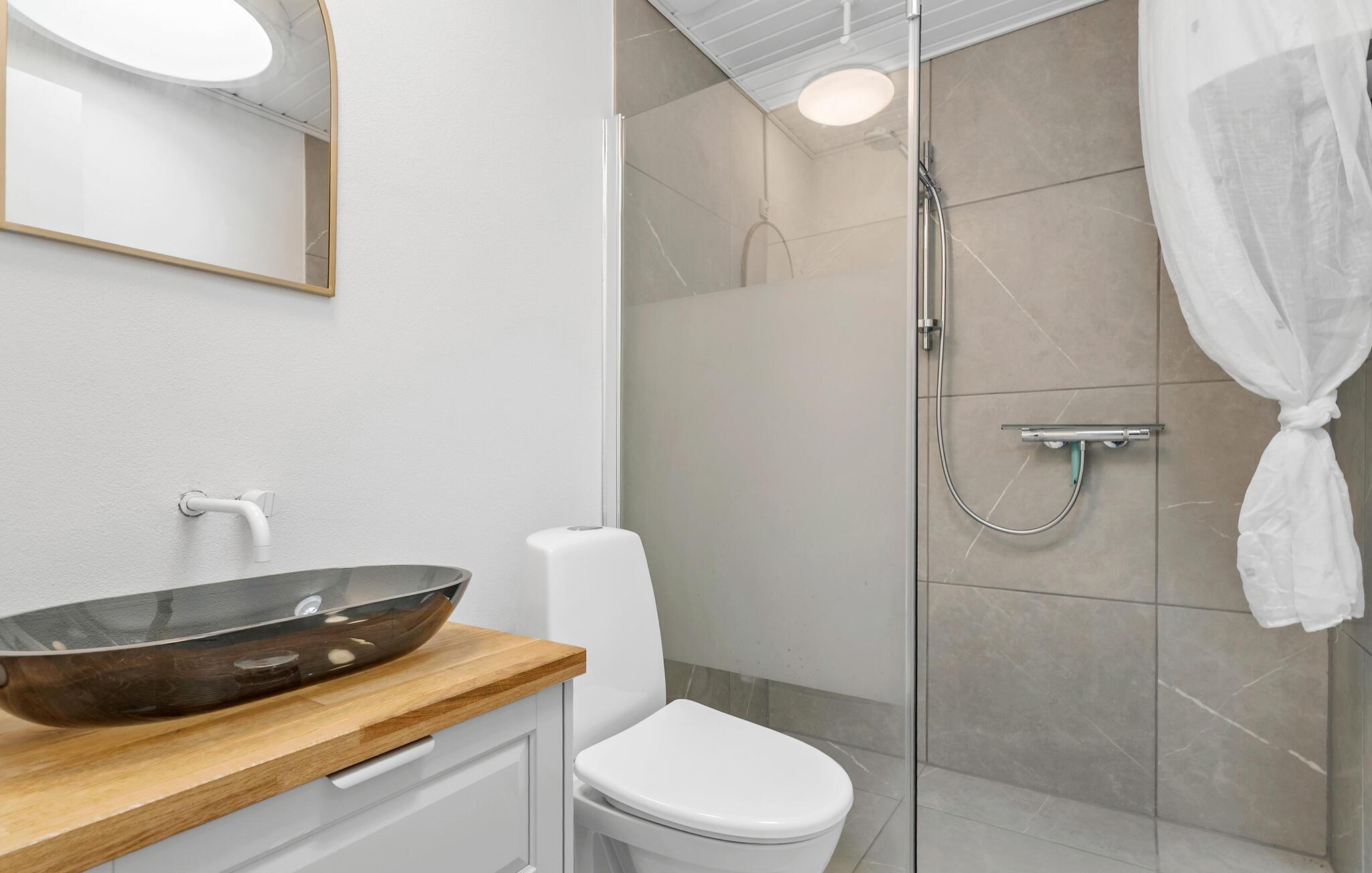 Badeværelse (nr. 1) - WC. Varmt og koldt vand. Bruser