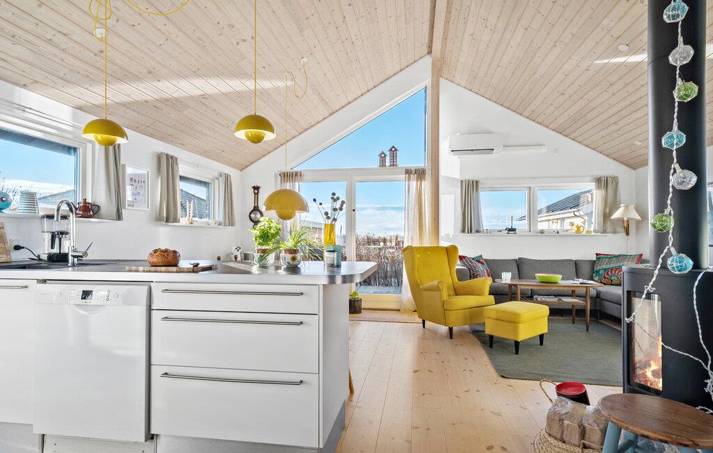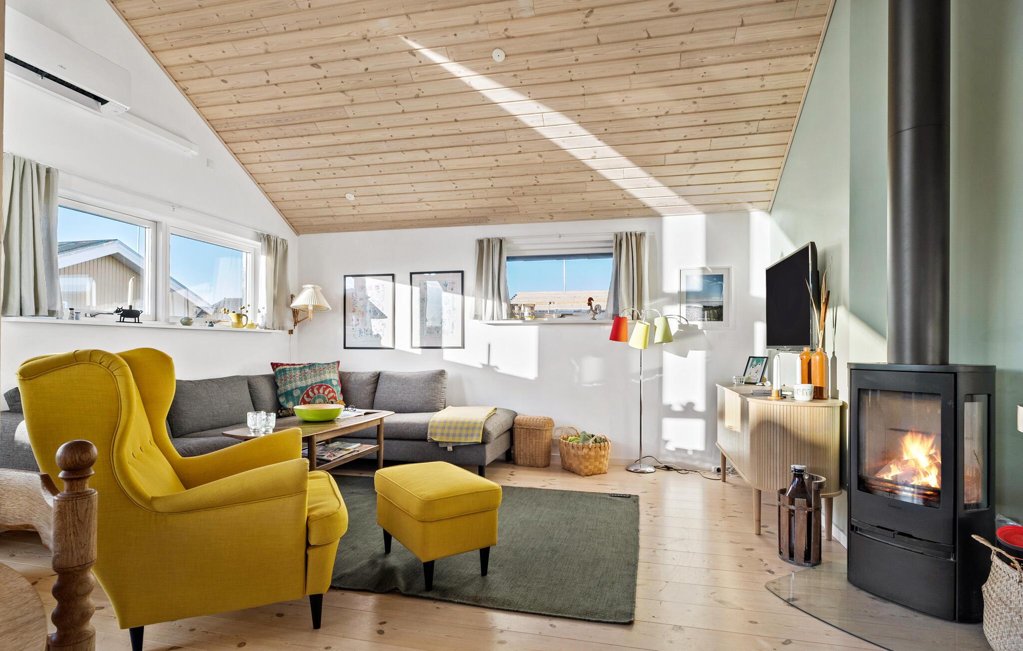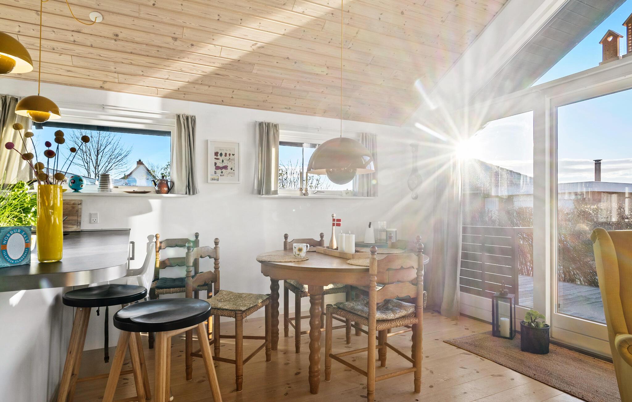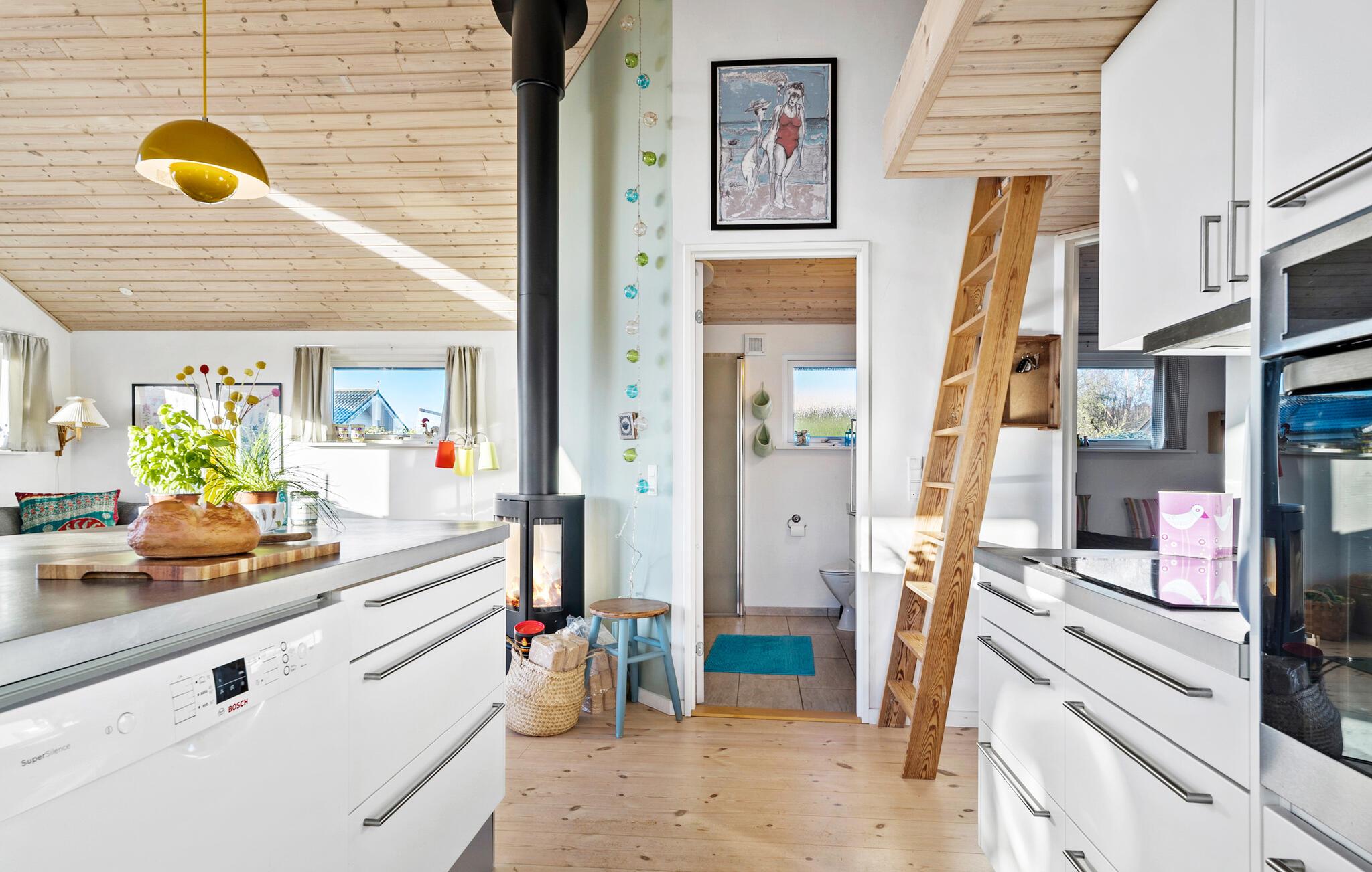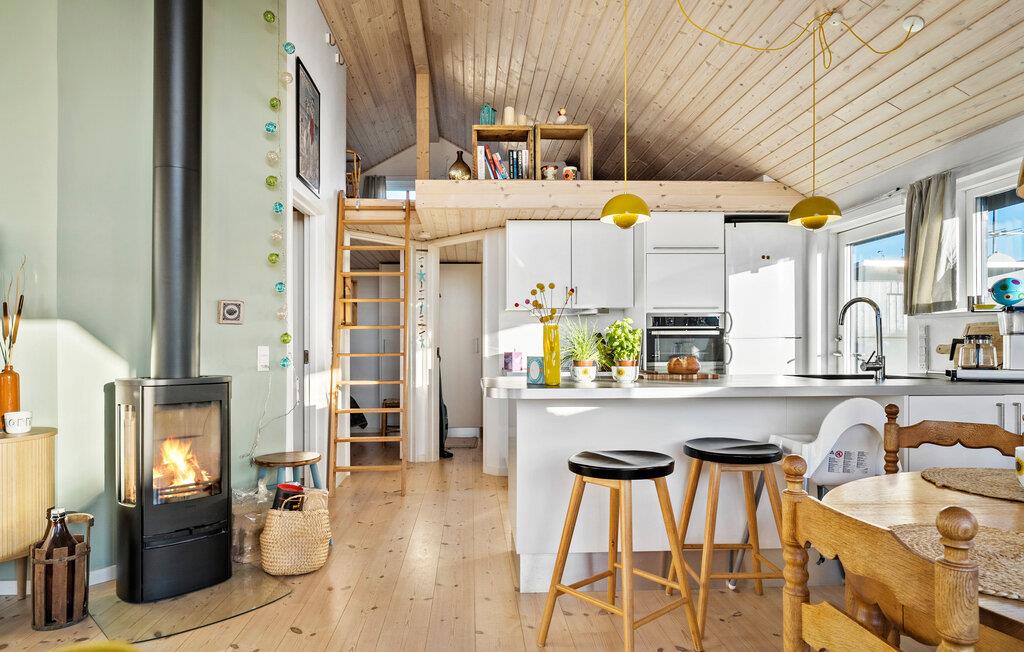 Dette charmerende sommerhus ved Hejsager Strand lægger op til afslappende feriedage. Den hjemlige indretning og brændeovnen skaber en varm og behagelig atmosfære, hvor I straks føler jer hjemme. Fra terrassen og haven kan I nyde udsigten over havet, mens børnene leger udenfor. Uanset om det er fælles madlavning, afslapning med en god bog ved brændeovnen eller solbadning i haven, bliver hvert øjeblik en fornøjelse.