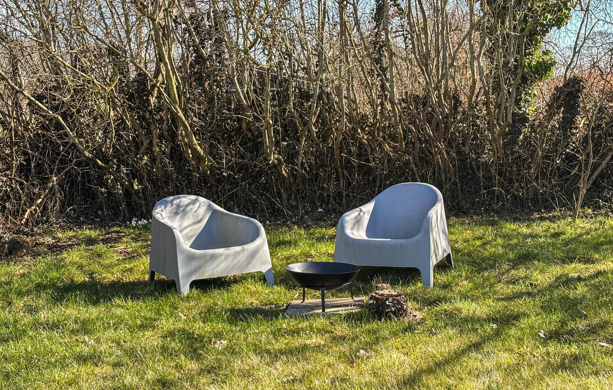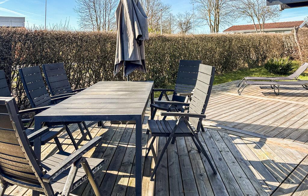 Træd ud på den store træterrasse og nyd solen. Brug de forskellige siddepladser til rolige øjeblikke eller spisning under åben himmel. Slap af i de komfortable loungemøbler eller slap af på liggestolene. En bålplads venter jer i haven, perfekt til hyggelige aftener.