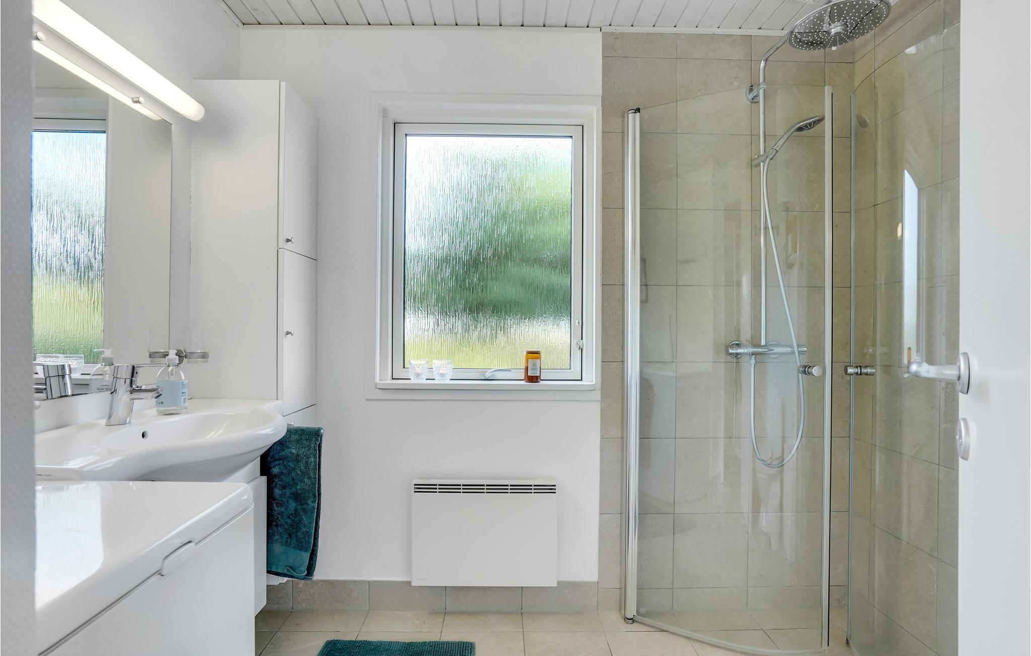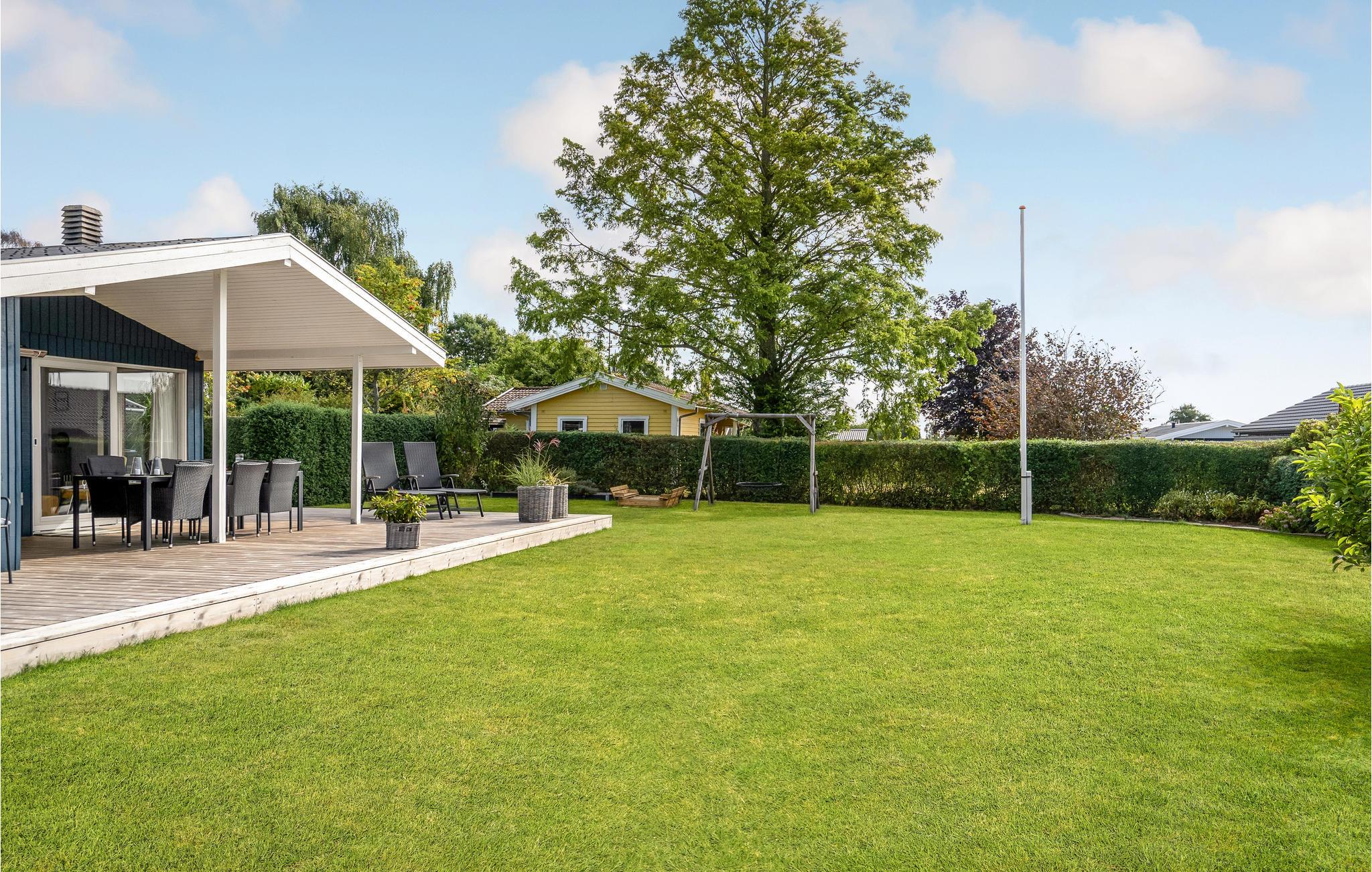 Der er en tilhørende stor have. Ikke langt fra huset ligger der en stor fælles legeplads, hvor børnene rigtig kan boltre sig. Fra stuen, terrassen og køkkenet kan I se havet, og kun 300 m fra huset ligger den fineste børnevenlige sandstrand.