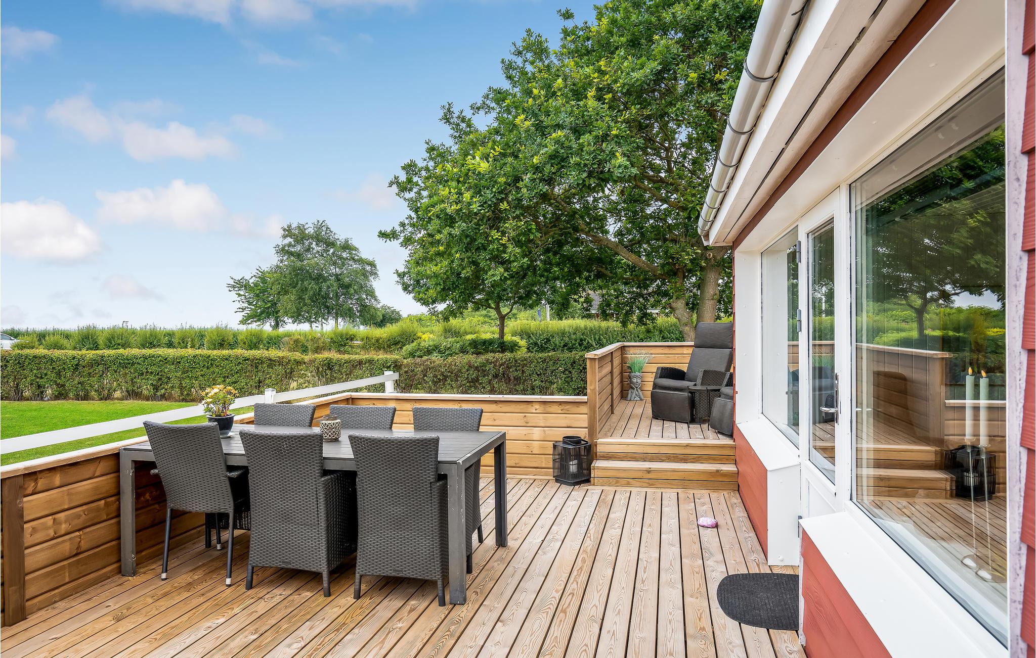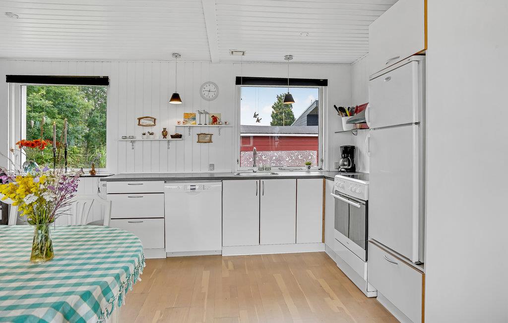 Velkommen til dette indbydende feriehus, som tilbyder den perfekte ramme om en sjov ferie for børnefamilien. I stuen med spiseplads og åbent køkken kan I begynde dagen med en lækker morgenmad og senere tilbringe hyggelige aftener med spil. Det store vinduesparti og den hvide farve sørger for en dejlig sommerstemning. Indtag frokosten på den åbne terrasse med panoramaudsigt over vandet, før I fortsætter vandlegen på stranden. Senere kan I tænde op i grillen og nyde et glas kølig rosé. Strandkurven i haven byder også på ren velvære! Beliggenheden er helt perfekt til feriegæster, som gerne vil tilbringe mange timer ved vandet og udforske naturen til fods. En morgendukkert er helt oplagt.