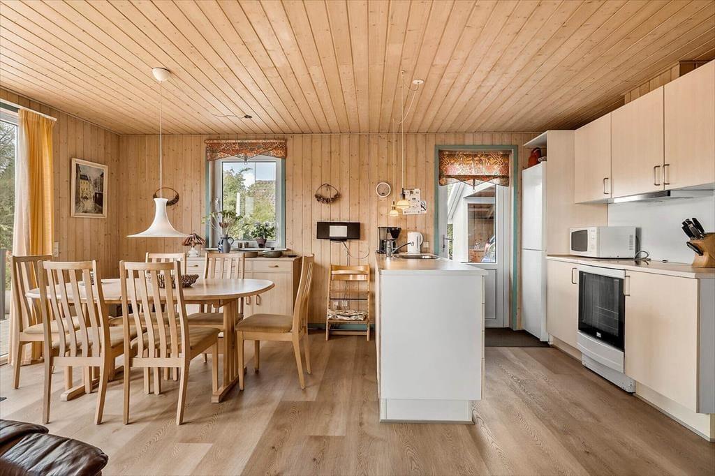 Træd ind i dette hyggelige sommerhus, der byder på en dejlig lys stue, som straks indbyder til afslapning og samvær. Her kan du synke ned i den komfortable sofa, nyde udsigten gennem de store vinduer, der lukker masser af lys ind, og skabe hyggelige minder med familie og venner. Badeværelset er indrettet med adgang til en skøn sauna, hvor du kan varme dig op efter en frisk gåtur langs stranden. Husets indretning gør det nemt at føle sig hjemme, og den rummelige stue er det perfekte sted at samle familien til brætspil, gode samtaler eller filmaftener.