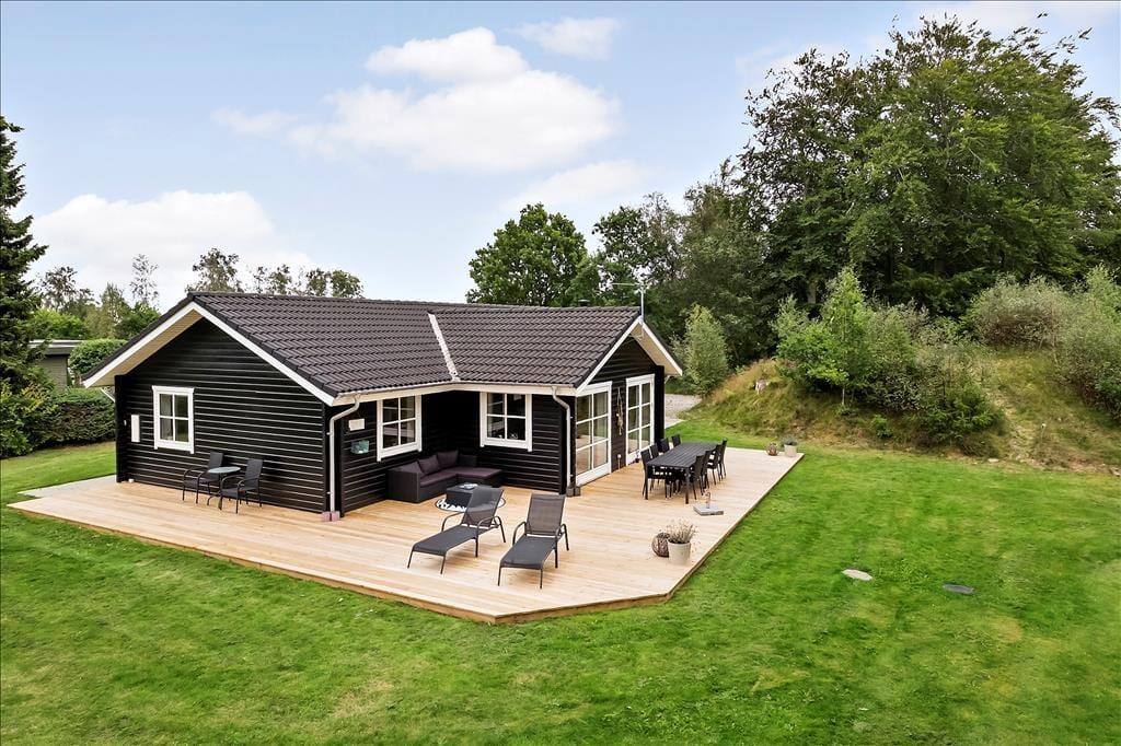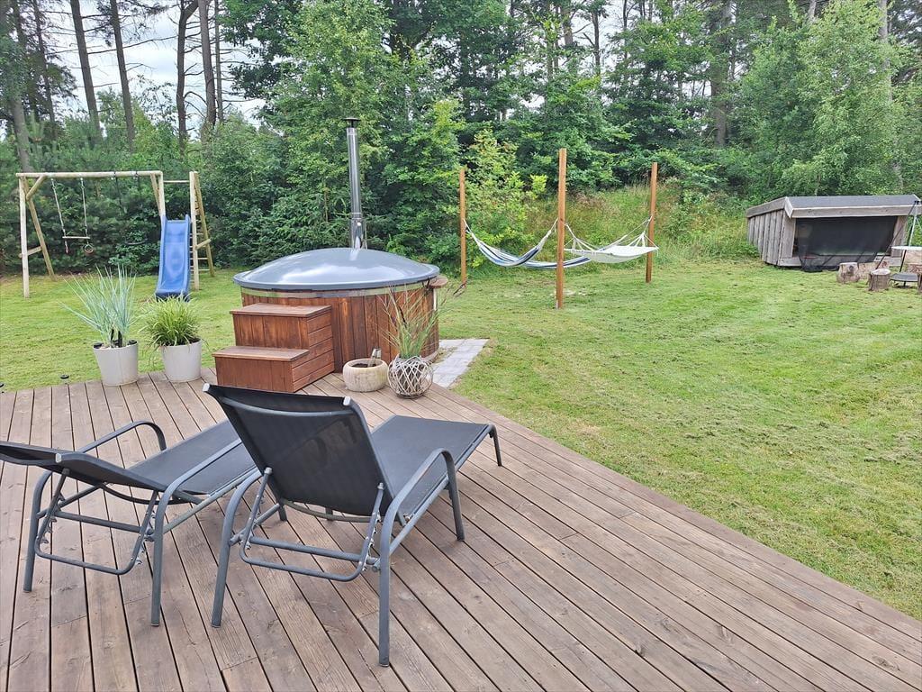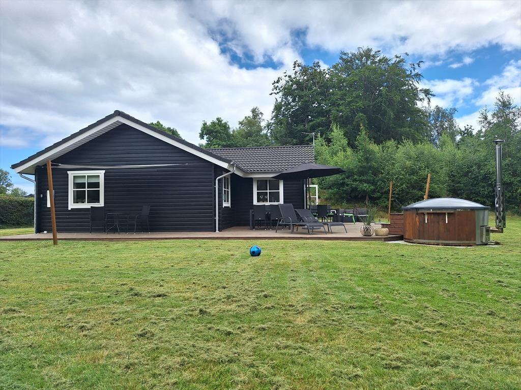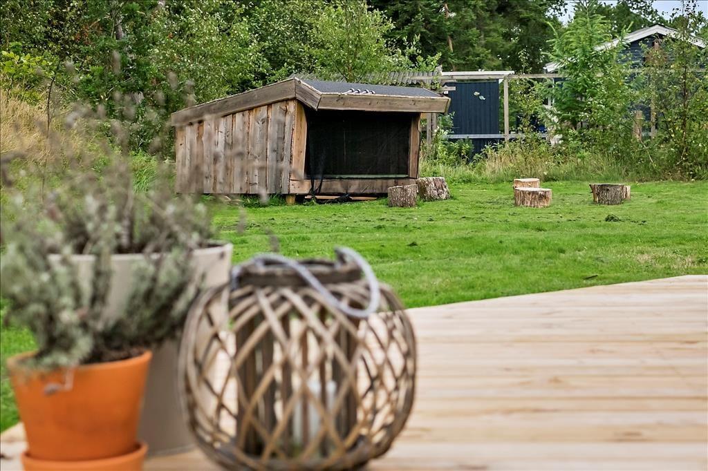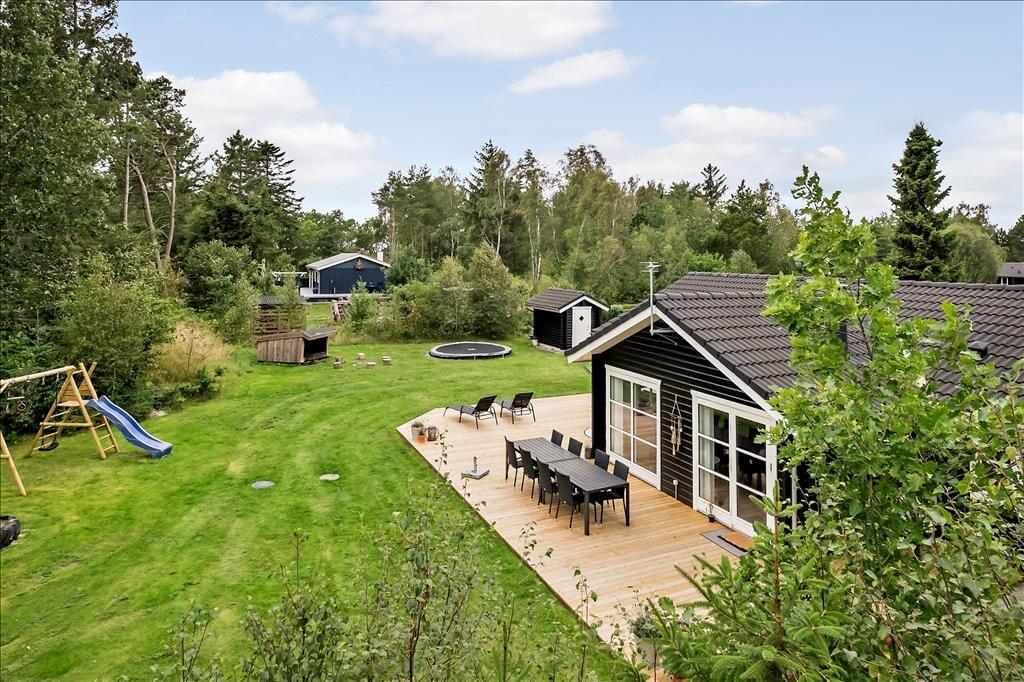 Huset ligger på en fredelig naturgrund med god plads til leg og udendørshygge på alle tider af året. På den store terrasse er der indbudt til grill og familiehygge. Her kan I sidde og nyde et glas vin i aftensolens sidste stråler, mens børnene leger i trygge omgiveler omkring huset.