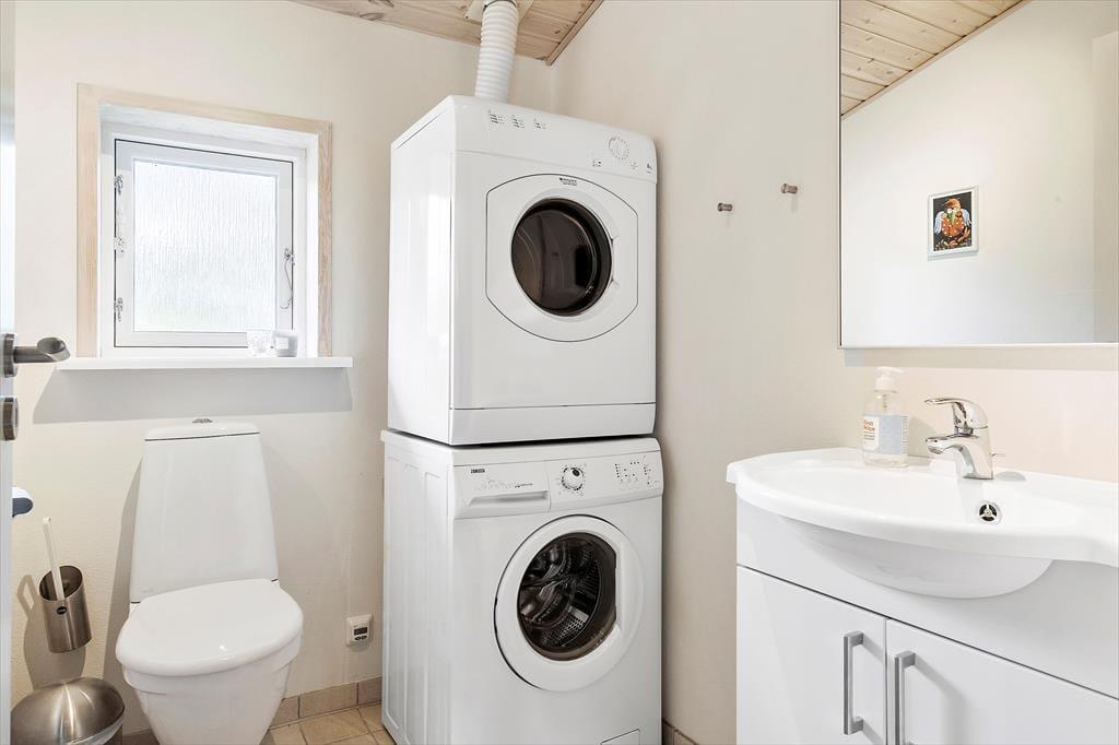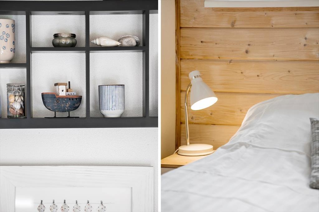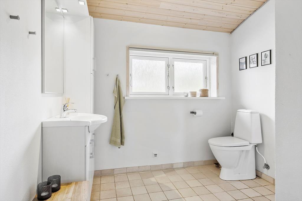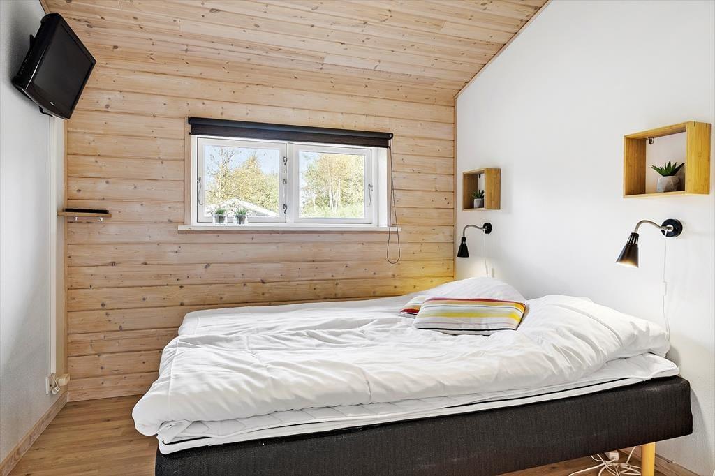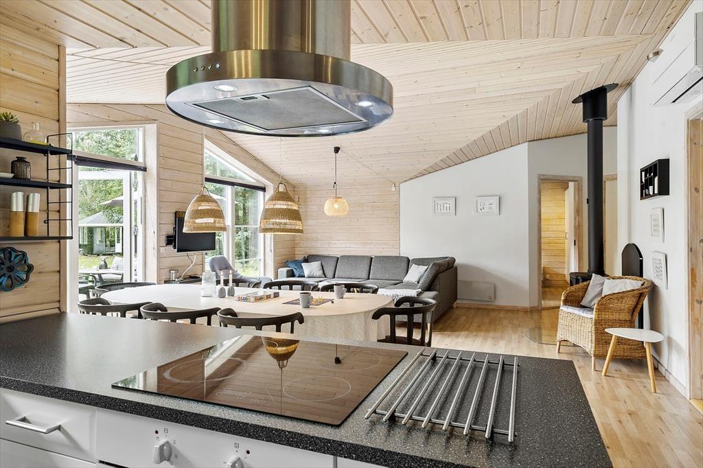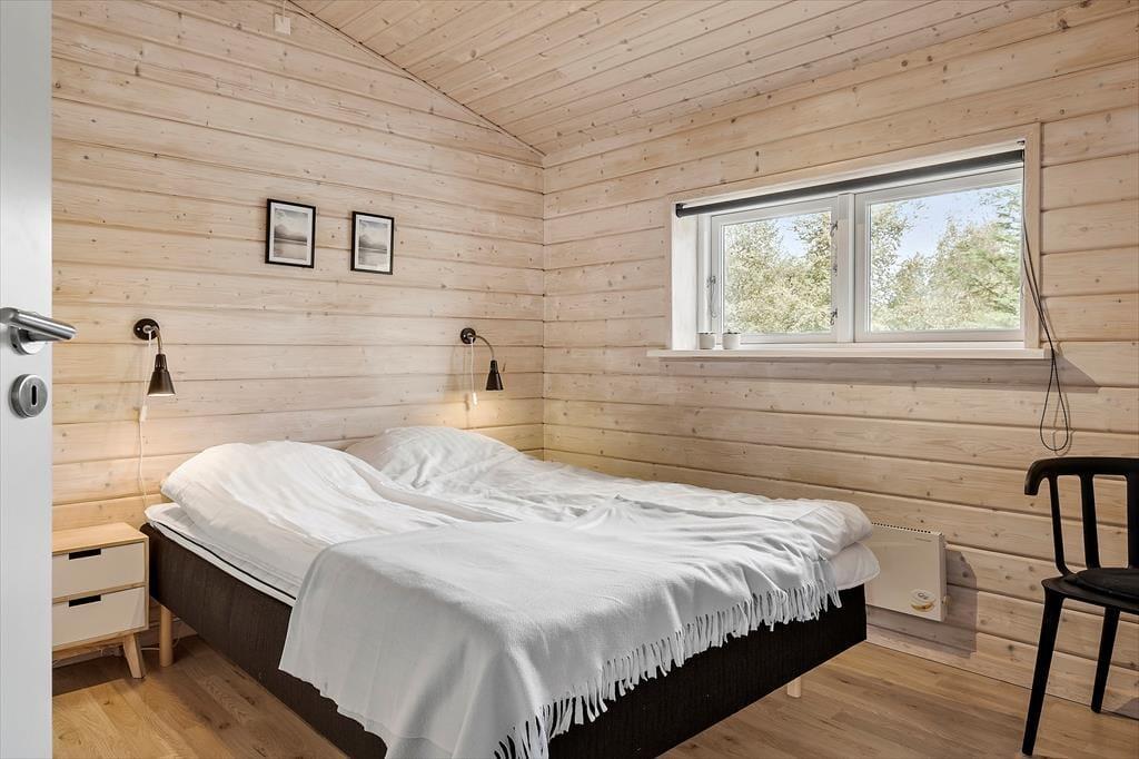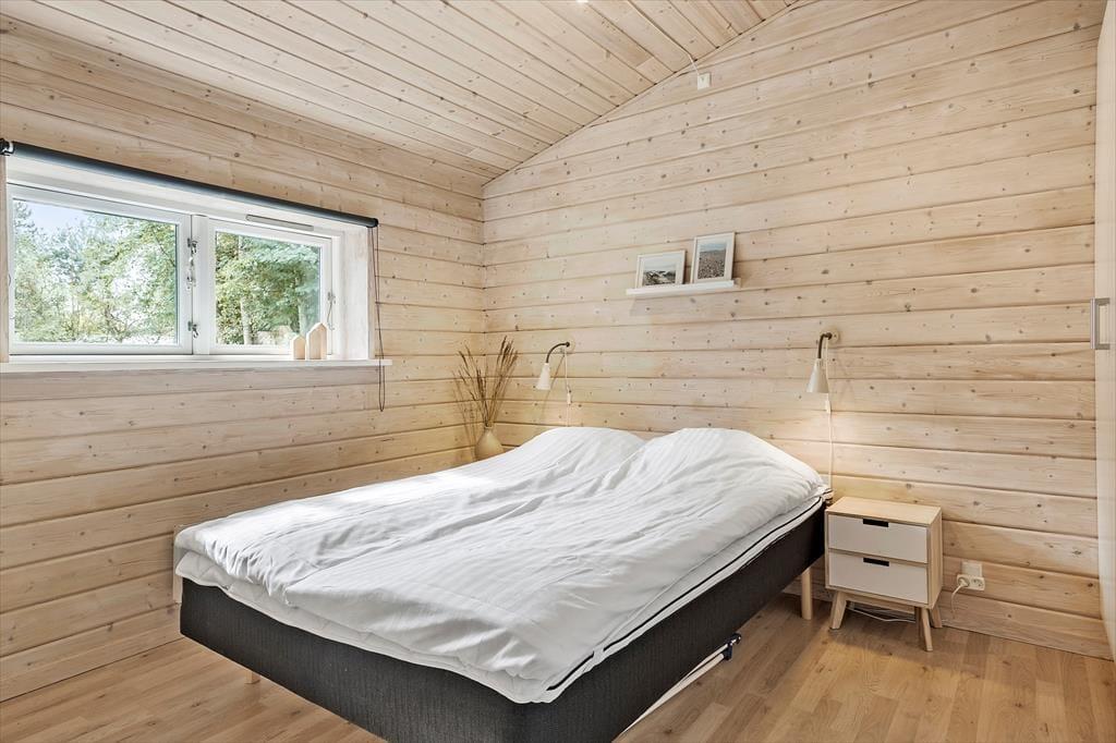 Takket være den gennemtænkte planløsning og gode udnyttelse af kvadratmeterne kan sommerhuset danne rammen om den store familieferie – eller eventuelt to børnefamilier, der gerne vil tilbringe dagene sammen. I alt er der otte sengepladser, som er ligeligt fordelt på fire soveværelser: Alle soverum er indrettet med dobbeltseng og garderobeskabe. Ganske praktisk rummer huset både et badeværelse og et gæstetoilet, hvoraf sidstnævnte er udstyret med vaskemaskine og tørretumbler, hvis I skulle få brug for at friske feriegarderoben op. Køkken og stue ligger smukt forenet, så de tilsammen udgør et indbydende opholdsrum, hvor I kan hygge jer sammen. Er det køligt udenfor, kan I tænde op i brændeovnen, og på solrige sommerdage er det formentlig mere tillokkende at invitere den friske luft indenfor gennem havedøren.