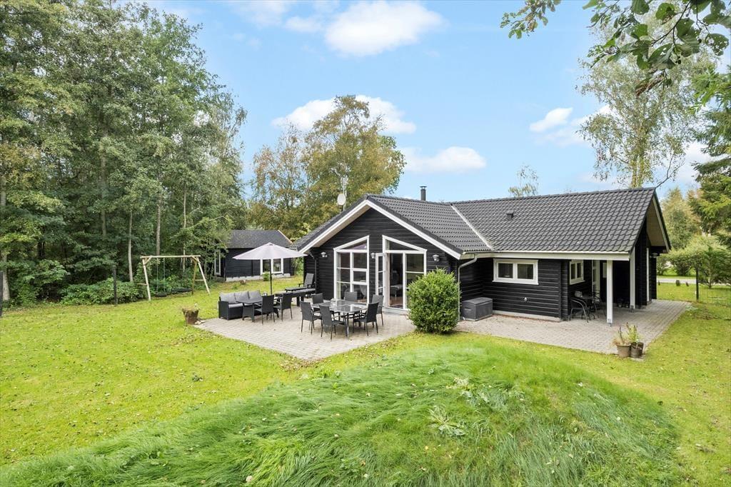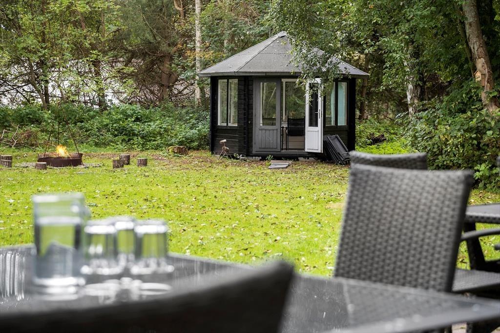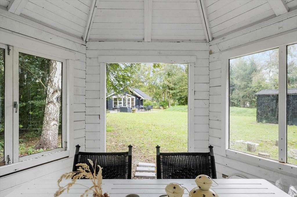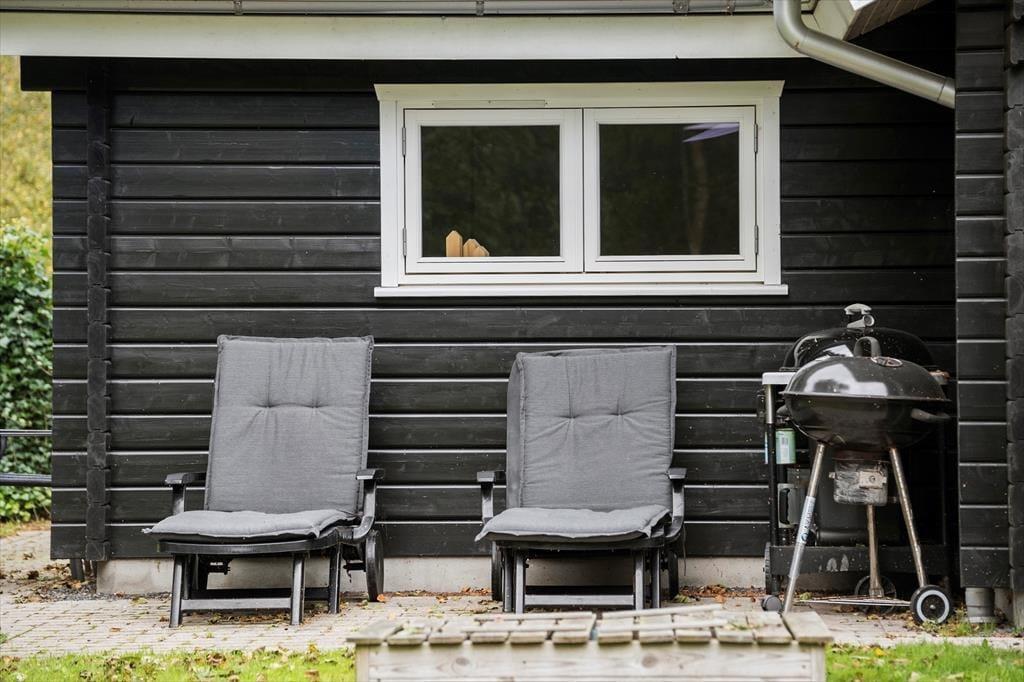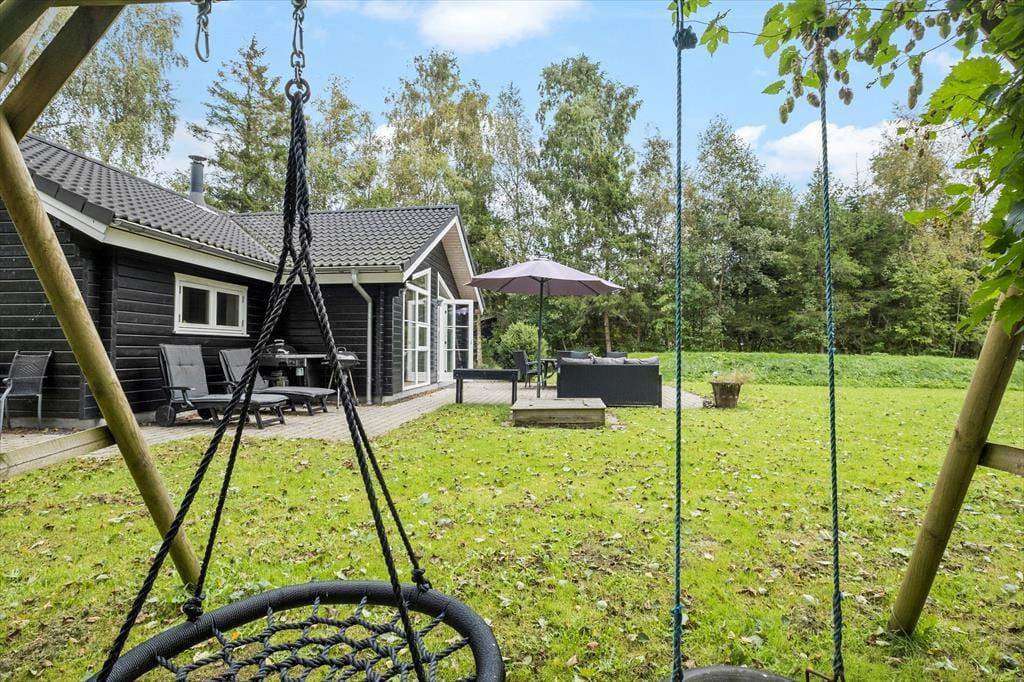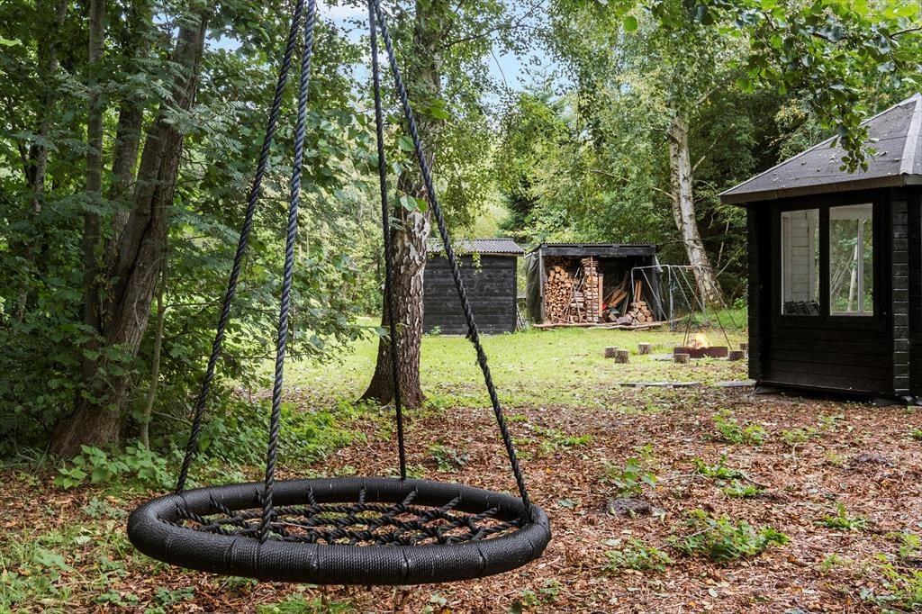 Havedøren giver jer direkte adgang til terrassen, der breder sig mod syd. Når I sidder og soler jer, har I et godt overblik over den ugenerede baghave, som byder på flere gode legefaciliteter, inklusiv gynger og sandkasse. Hvis I ikke hellere vil dyste i havespil på græsplænen, kan I slænge jer i hængekøjerne eller i liggestolene under parasollen, og I kan også sætte jer i skyggen på det overdækkede terrasseområde på husets østside.