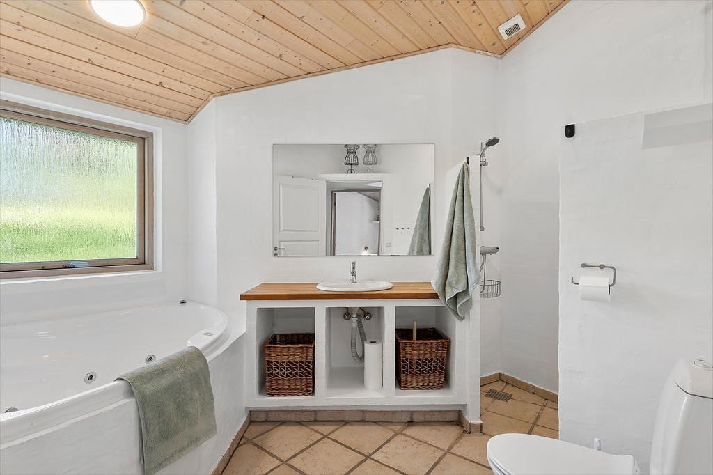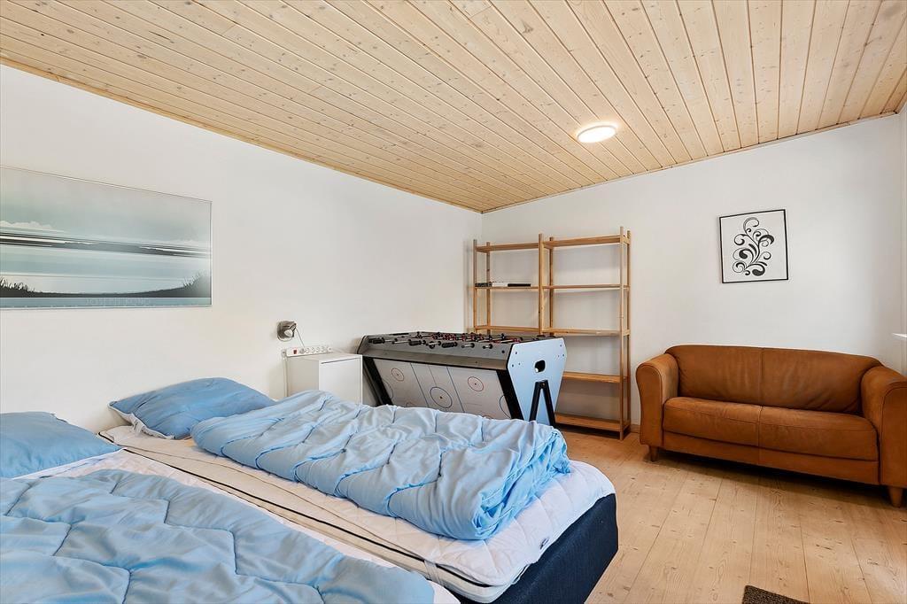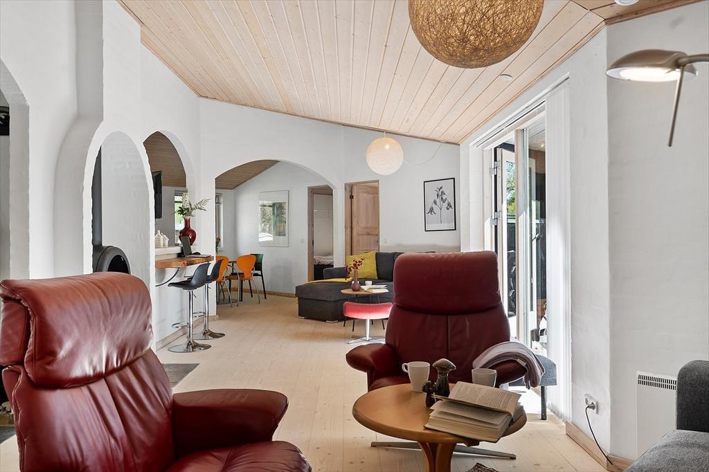 Der er noget særligt ved at træde ind i et sommerhus, hvor lyset strømmer ind ad vinduerne, og hvor indretningen med det samme signalerer, at her handler det om at slappe af og nyde livet. Sommerhuset på Strandparken 64 er lyst og hyggeligt indrettet, og de store opholdsrum indbyder til fællesskab og samvær – uanset om I laver mad sammen i det åbne køkken, spiller spil rundt om spisebordet eller synker ned i sofaen med et tæppe og en god film. De mange siddepladser gør det nemt at finde en plads, uanset om I er 2 eller 10 personer samlet. Stemningen er rar og hjemlig, og selv på en regnvejrsdag vil I kunne finde hygge og nærvær inden døre, mens I hører regndråberne tromme mod ruderne og måske skimte et rådyr gennem skovens træer udenfor.