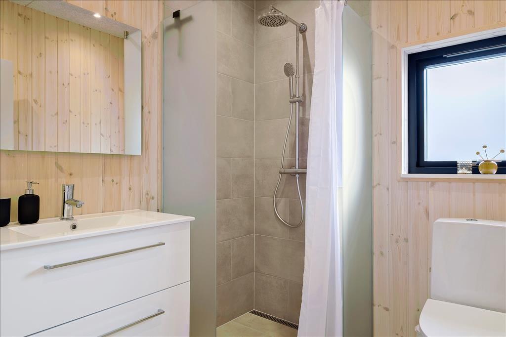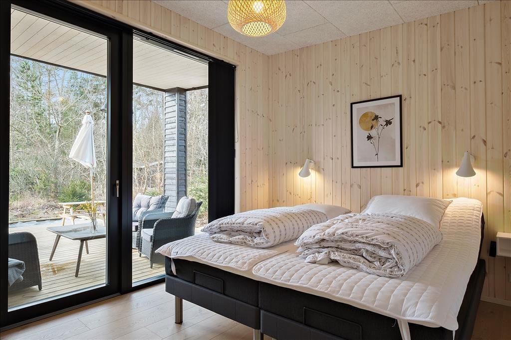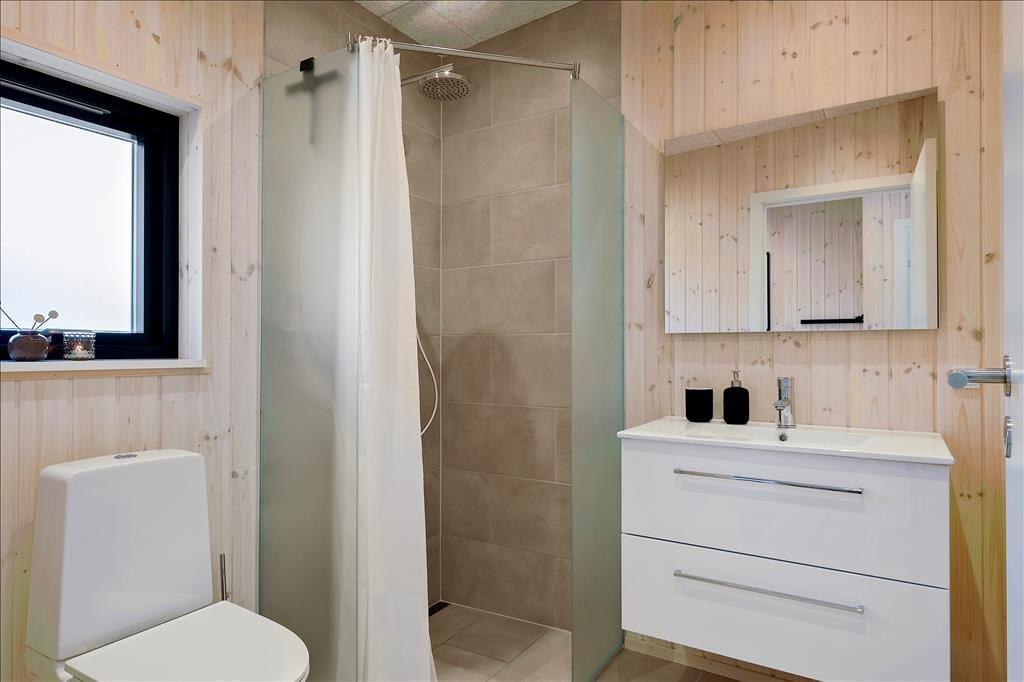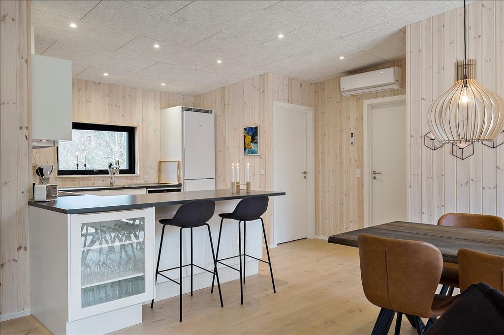 Sidste hånd bliver lagt på byggeriet i 2021, så huset vil stå helt skarpt og indbydende, når I pakker feriekufferterne ud. Stemningen er lys og let – ikke mindst i opholdsrummet, hvor store, sydvendte vinduer inviterer solen indenfor en stor del af dagen. Når mørket falder på, kan I tænde op i brændeovnen, mens I kræser om maden i det åbne køkken, der er lækkert indrettet med kogeø og et godt udvalg af hvidevarer. Efter et velsmagende måltid er der mulighed for at spille Playstation og bordfodbold, men I kan også bare blive siddende omkring spisebordet og snakke til langt ud på aftenen. Når det er tid til at sige godnat, kan I glæde jer til at sove længe på de tre soveværelser, der alle er indrettet med gode elevationssenge. Sommerhusets 104 m2 byder i øvrigt på to flotte badeværelser og et bryggers med vaskefaciliteter.