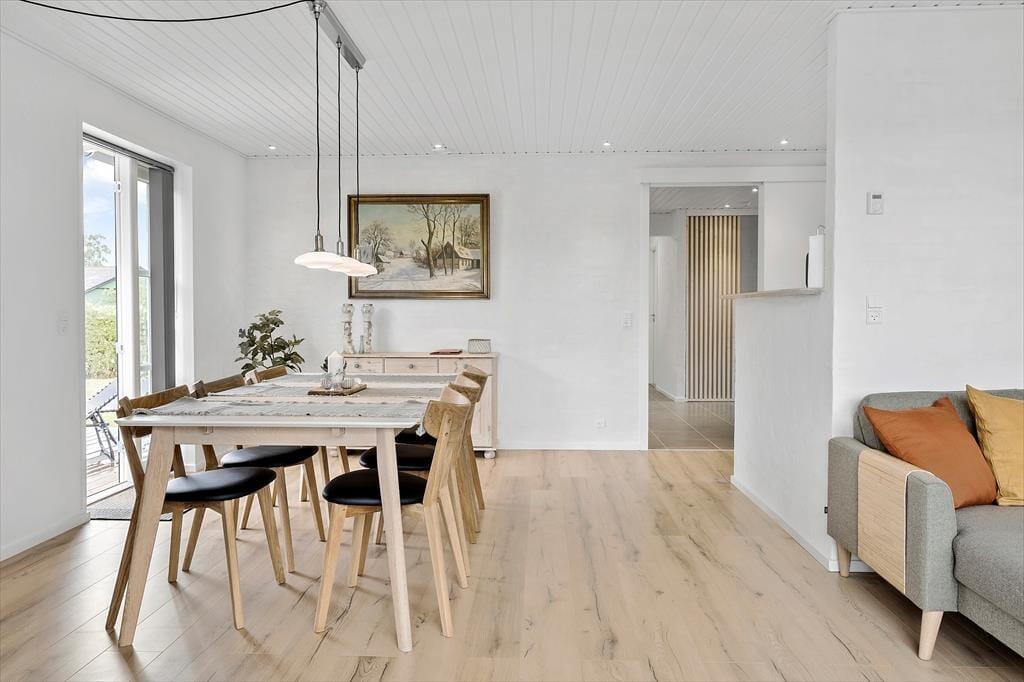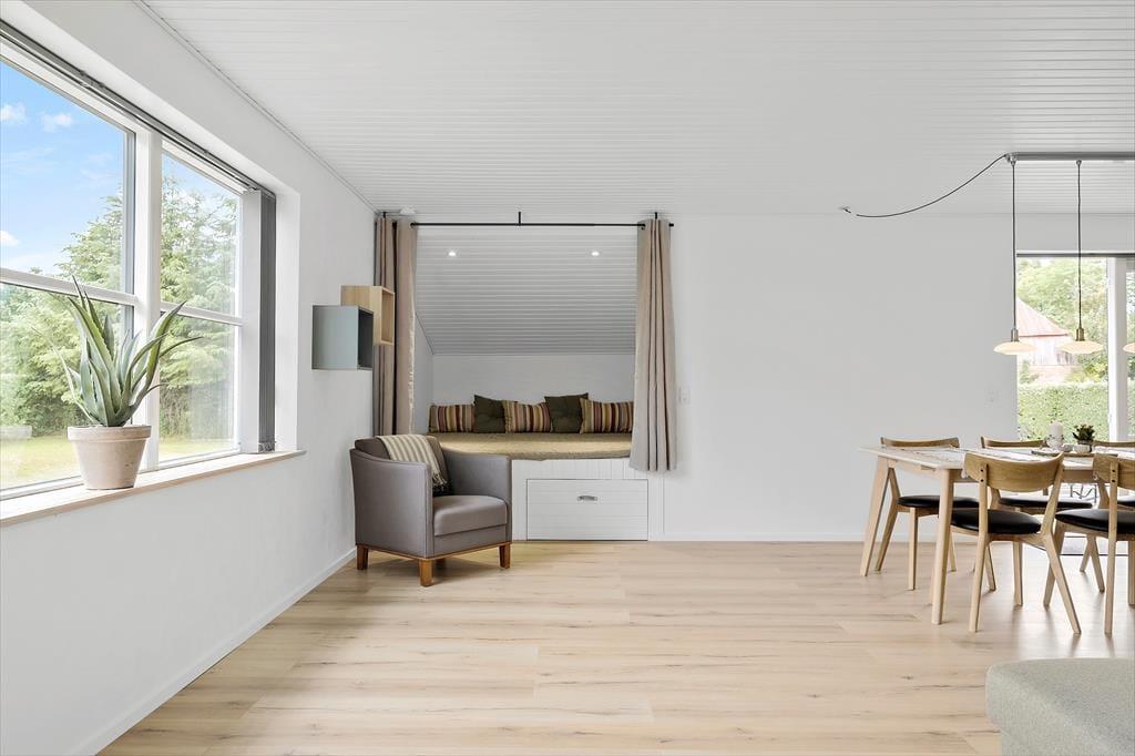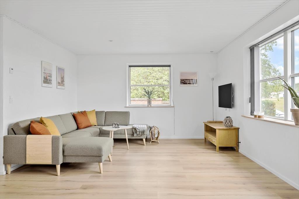 Det gedigne murstenshus på 128 m2 har gennemgået en grundig renoveringsproces i 2022, hvilket forklarer den lyse og indbydende indretning, der pryder alle rum. Hoveddøren lukker jer ind i en rummelig entré med vaskesøjle og skabsplads, og herfra har I adgang til et gæstetoilet, et badeværelse og tre gode soveværelser, der alle er med dobbeltseng. Via en skydedør kan I også fortsætte ind i stuen, som er et skønt opholdsrum med lækker køkkenafdeling, spisebord og sofahjørne med fladskærms-tv. Der er for øvrigt en alkove, som eventuelt kan bruges til overnatning – og i løbet af dagen er den perfekt, hvis I vil flade ud med en spændende krimi eller have en middagslur.