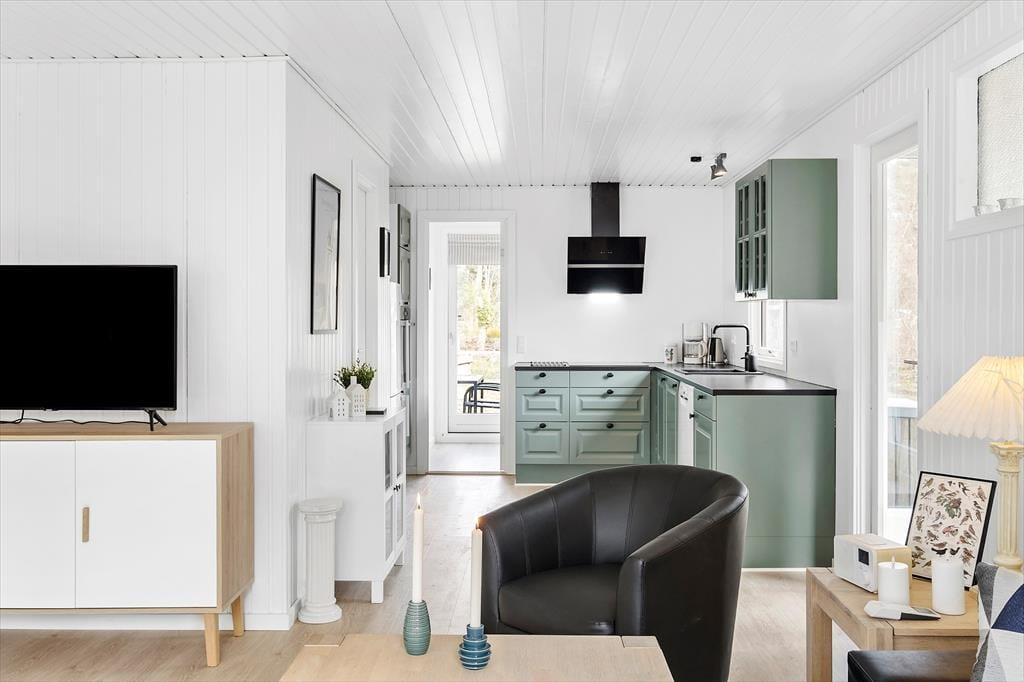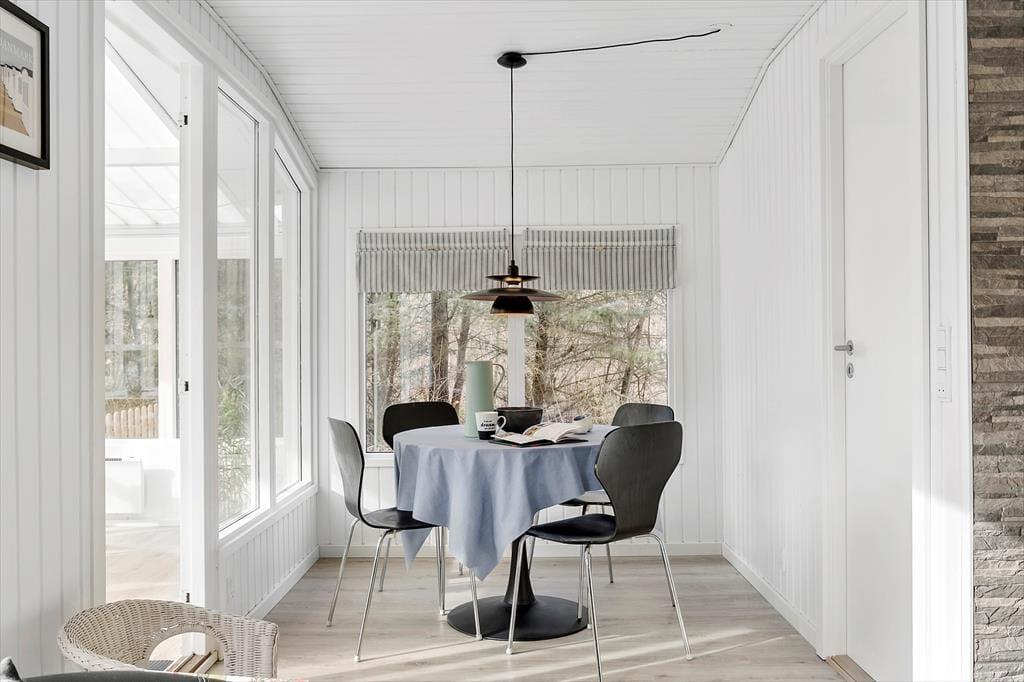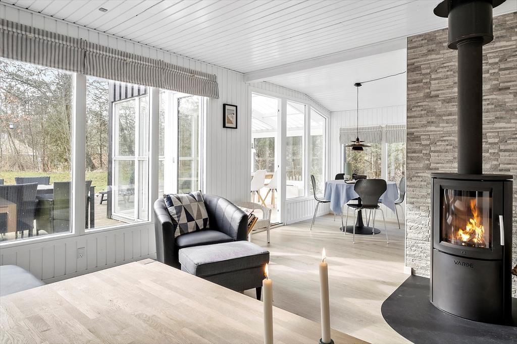 Efter en omfattende renovering i 2022 fremstår sommerhuset lyst og indbydende. Moderne interiør pryder rummene – blandt andet et flot køkken og en brændeovn med kig til flammerne – og de 77 m2 er godt udnyttet, så huset nemt kan rumme seks personer. Ud over tre gode soveværelser og et mindre, men velindrettet badeværelse byder sommerhuset på en dejlig opholdsafdeling med køkken og stue i åben forbindelse. Herfra kan I fortsætte videre ud i en havestue, der med store vinduespartier og fin udsigt til naturgrunden hurtigt kan blive jeres foretrukne plads, når I vil spise frokost eller spille brætspil.
