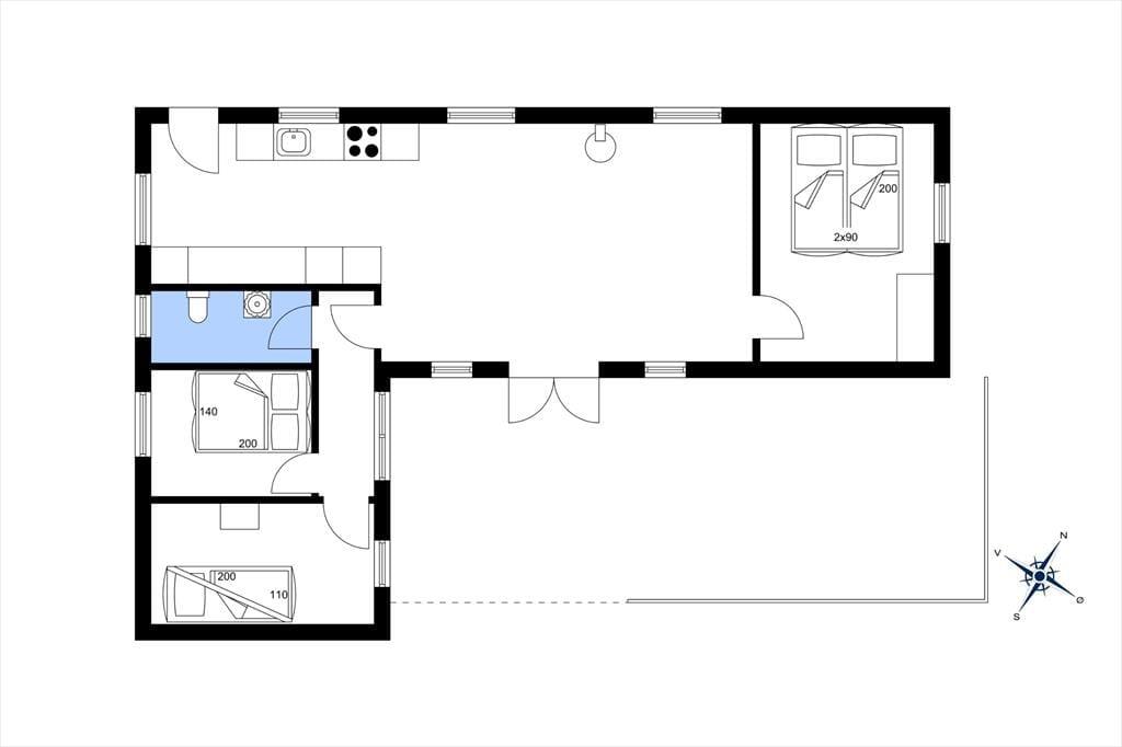 Sommerhuset, der måler 70 m2, er blevet renoveret i 2021 på vellykket vis, så der er lyst og indbydende inden døre. Samme indtryk gør sig gældende i det tilhørende anneks, der byder på et rummeligt brusebadeværelse og en dejlig sauna. I selve hovedhuset er der ikke bruser, men blot et toilet, og så er der tre pæne soveværelser at gøre godt med. Stue og køkken ligger i åben forbindelse, så hvis I skal fylde mere kaffe i kopperne eller se til lasagnen i ovnen, er der ikke mange skridt fra spisebordet eller sofaen. Et fladskærms-tv med Chromecast står klar, hvis I skulle få nok af at spille terninger og læse bøger, og på kølige dage kan I tænde op i brændeovnen, så I kan nyde både varmen og synet af flammerne.