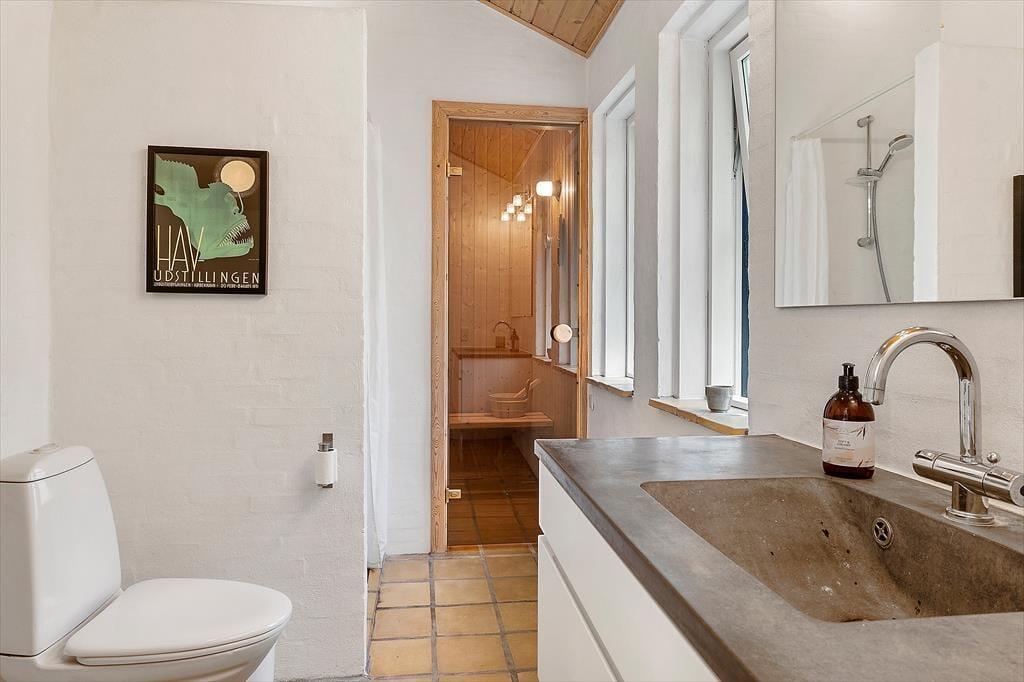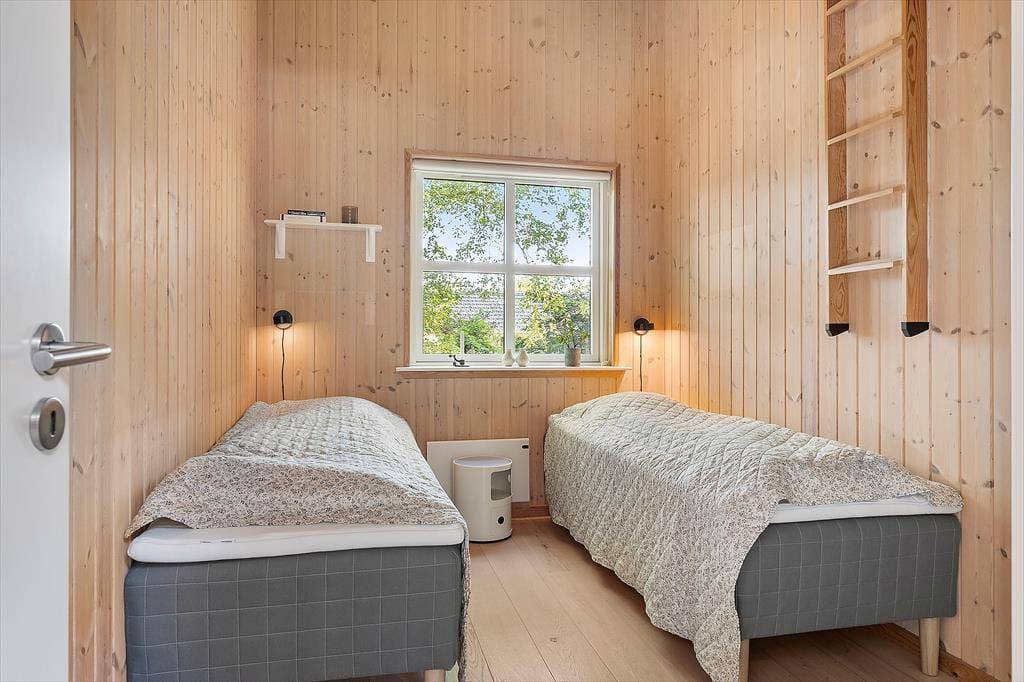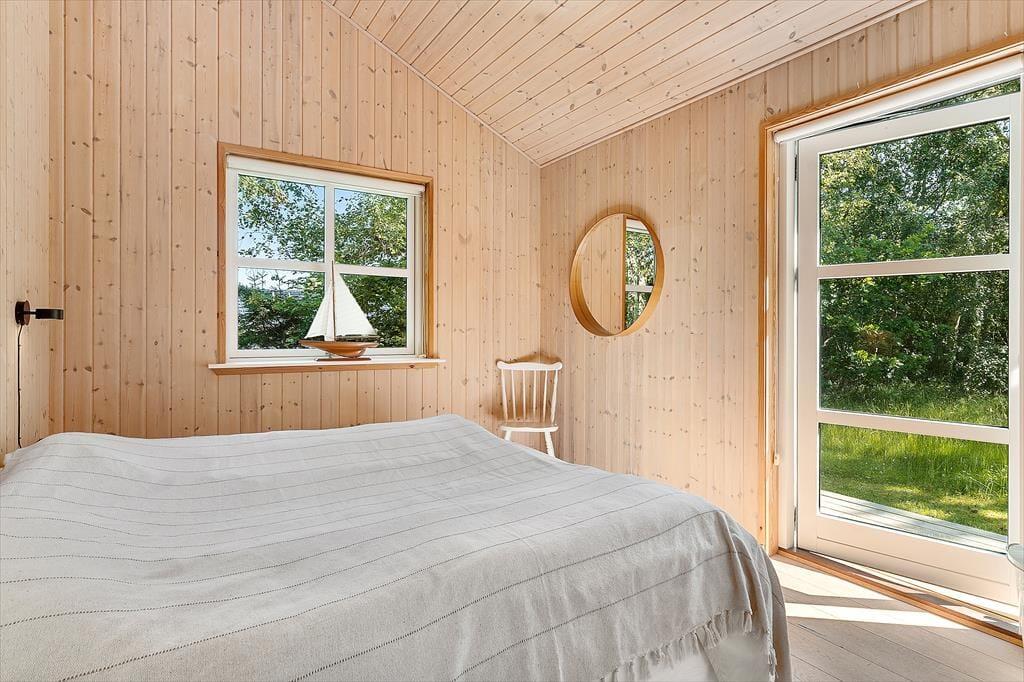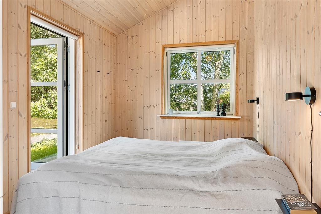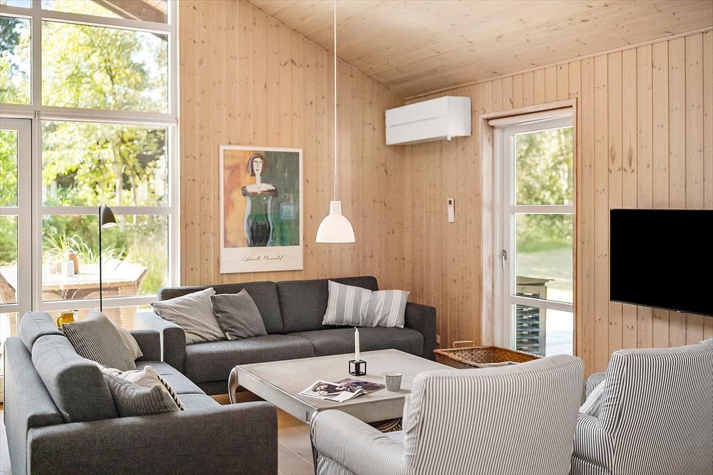 Indendørs møder du en dejlig og lys sommerhusstemning – præcis som man ønsker sig det, når ferien skal bruges på afslapning og kvalitetstid. Indretningen er hyggelig og smagfuld med lette farver og små personlige detaljer, der giver huset sjæl og varme. Loftet er ført til kip, hvilket giver en rummelig og luftig fornemmelse i opholdsrummet, og lysindfaldet gør, at det altid føles rart at være inden døre – også når det regner udenfor, og I har fundet brætspillene frem. Stuen ligger i åben forbindelse med køkkenet, så uanset om der skal laves morgenmad eller hygges med eftermiddagskaffe, kan hele familien være sammen om det. Sommerhuset har god plads til seks personer, og der er gode muligheder for at finde sig en hyggelig krog – måske med en bog eller lidt feriesløv strikning? Det er den slags feriestemning, der er let at falde ind i, når rammerne er så rare som her.