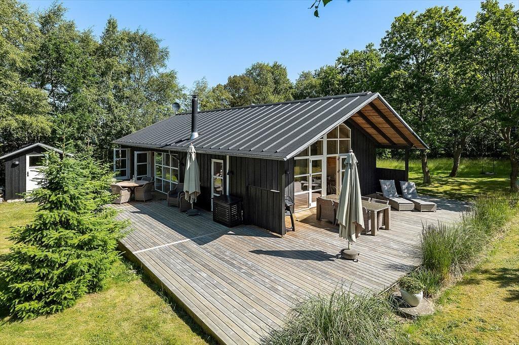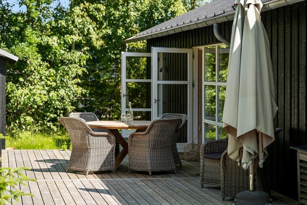 Udenfor venter der lige så rolige og behagelige omgivelser. Grunden er godt afskærmet, så du får masser af privatliv, og her er god plads til både afslapning og leg. Når solen skinner, er det oplagt at rykke ud i havemøblerne med en kop kaffe, en god bog eller bare lukke øjnene og lytte til fuglene. Grillen kan tændes op om aftenen, og på de lune sommeraftener er det ren balsam for sjælen at sidde under åben himmel og nyde stilheden. Der er desuden mulighed for parkering på nabogrunden (nr. 43), hvilket gør det ekstra nemt, hvis flere familier følges ad, eller der kommer gæster på besøg. I det hele taget er der tænkt i praktiske løsninger, der gør ferien mere afslappet og bekvem – men altid med fokus på den gode sommerhusstemning.