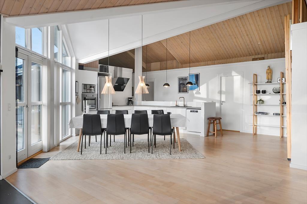 Inden døre mødes du af en lys og venlig stemning, hvor rummene er indrettet med fokus på komfort og hygge. Det moderne udtryk går igen i materialer og farvevalg, som giver sommerhuset et let og indbydende præg. Her er god plads til at være sammen – både når der skal laves mad, spises lange feriemåltider og slappes af efter en dag i det fri. Forestil dig rolige morgener med kaffe i hånden, mens dagslyset strømmer ind ad vinduerne, og aftener hvor I samles til kortspil, film eller gode samtaler. Sommerhuset indbyder til nærvær og feriero, uanset om tempoet er højt med leg og grin eller lavt med tæpper, bøger og stille stunder. At kunne tage hunden med gør det endnu lettere at føle sig hjemme fra første øjeblik.