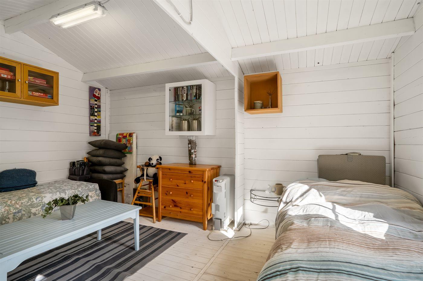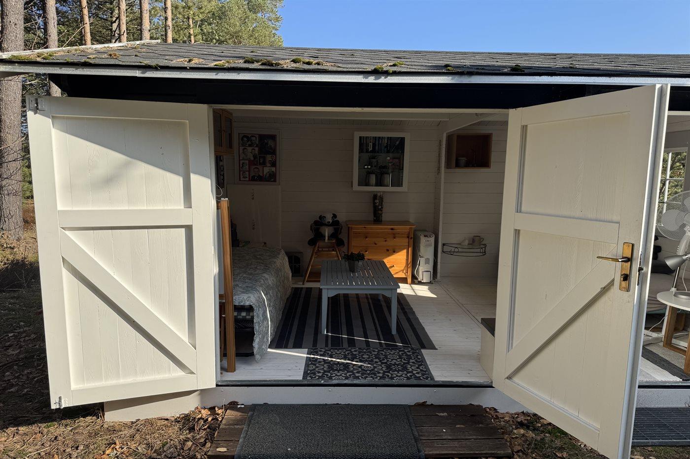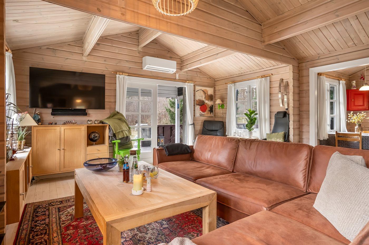 Hyggeligt bjælkesommerhus med anneks – på en stor og ugenert naturgrund.