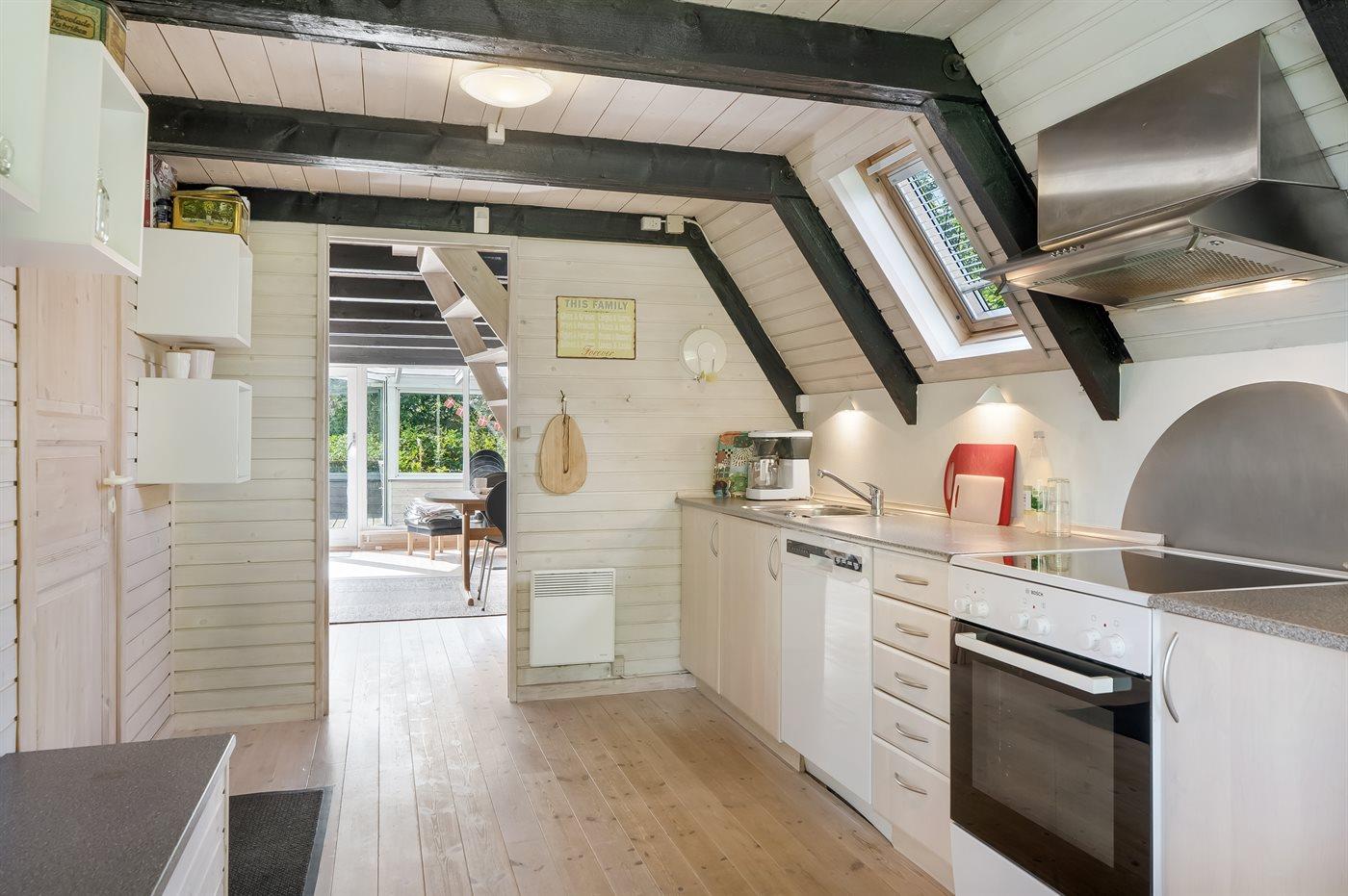 Køkkenet er udstyret med 1 køleskab. Der er 4 keramiske kogeplader, varmluftovn, mikrobølgeovn samt opvaskemaskine.
