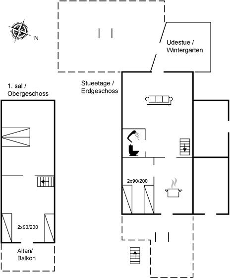 Der er i alt 3 soveværelser. Sovepladserne fordeler sig på: 2 sovepladser i dobbeltseng. 4 sovepladser i enkeltsenge. 2 sovepladser i køjeseng. 2 af disse sovepladser befinder sig i et anneks. Derudover er der 1 stk. barneseng.